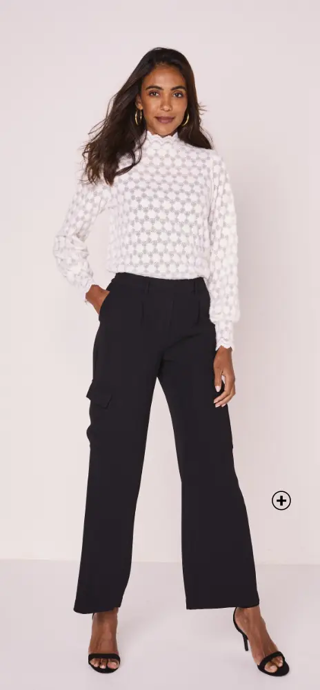 Une fois le modèle idéal trouvé, il est temps de choisir avec quoi le porter. Pour sublimer votre pantalon large, optez pour des hauts près du corps. Cela permet de structurer la silhouette et d'apporter une belle harmonie entre le volume du bas et la finesse du haut. Vous pouvez jouer avec différents styles : un top uni pour un look minimaliste, une chemise élégante, une blouse à imprimés, ou même une marinière pour une touche casual chic. Et pourquoi ne pas essayer un pull léger pour les journées plus fraîches ? L'essentiel est de créer l'effet qui vous ressemble, tout en restant tendance et confortable.