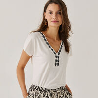 Chemisier manches courtes papillon, crépon imprimé fleuri