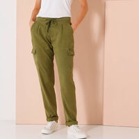 Pantalon large stretch, taille élastiquée