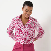 Chemisier col rond imprimé citrons, manches longues blousantes