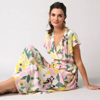 Robe cache-coeur imprimée, crépon