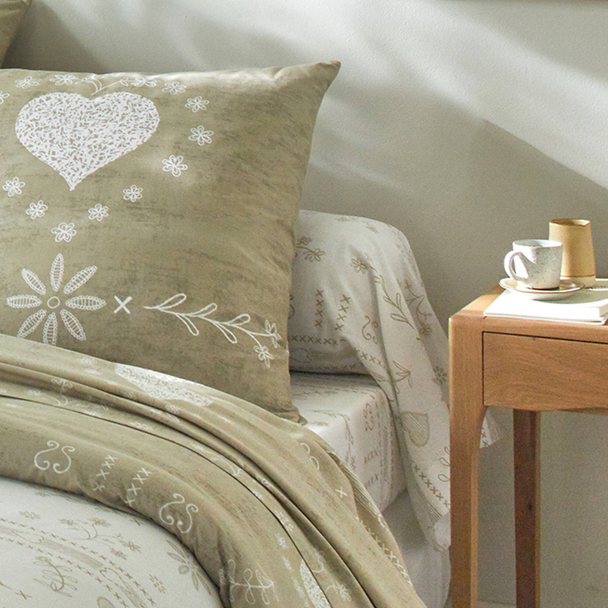 Linge de lit Anceny imprimé coeur - coton (beige)