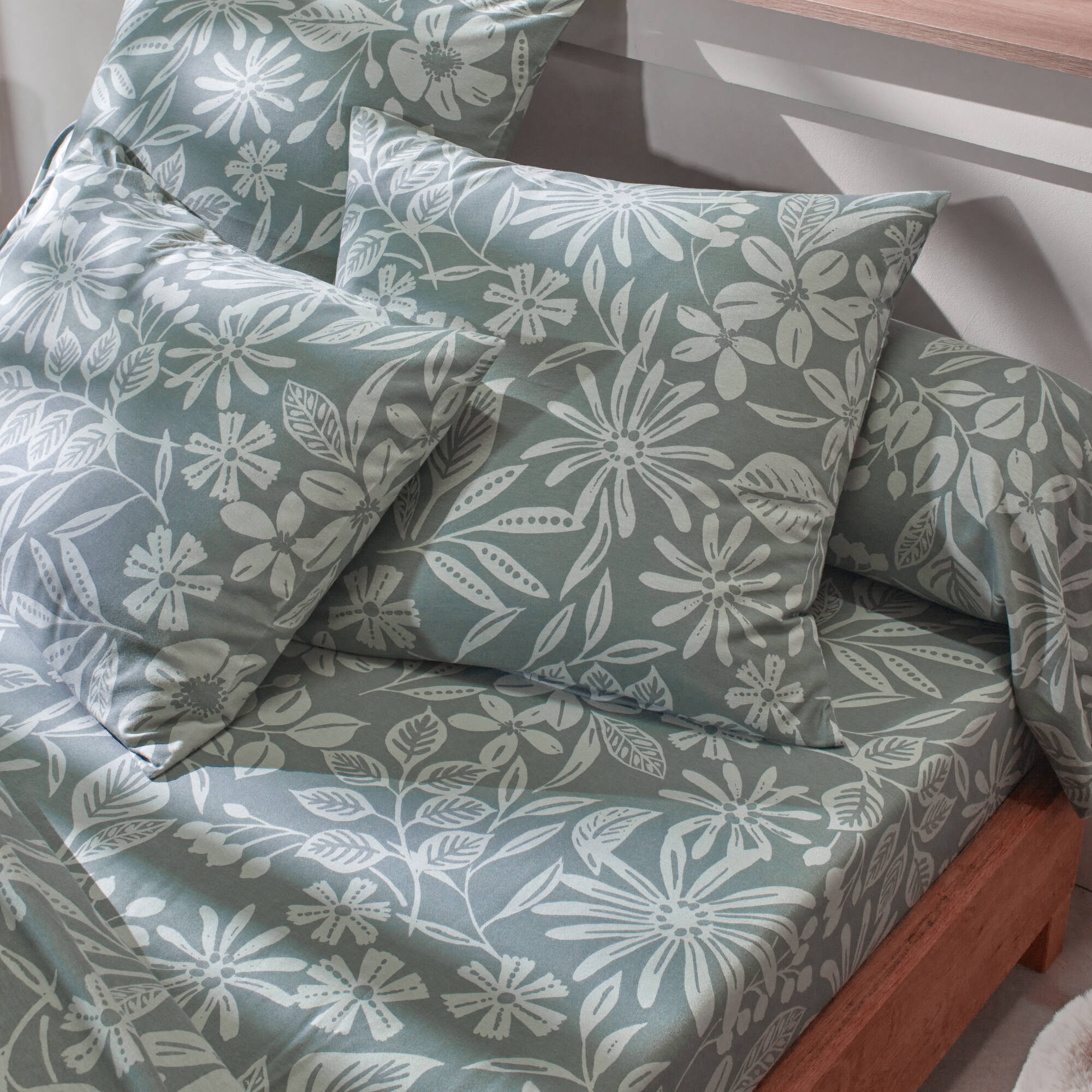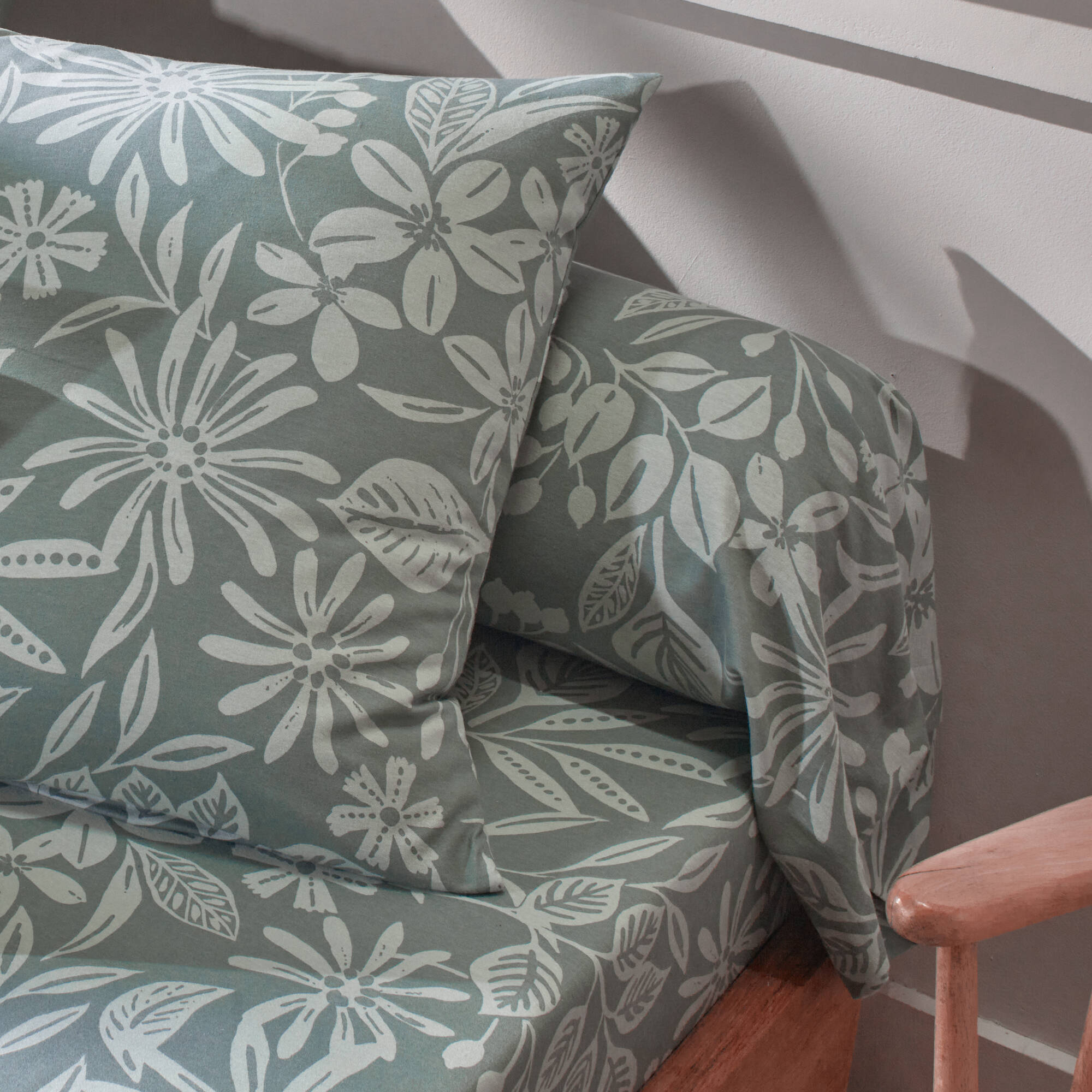 Linge de lit Céline en flanelle imprimé floral (eucalyptus)