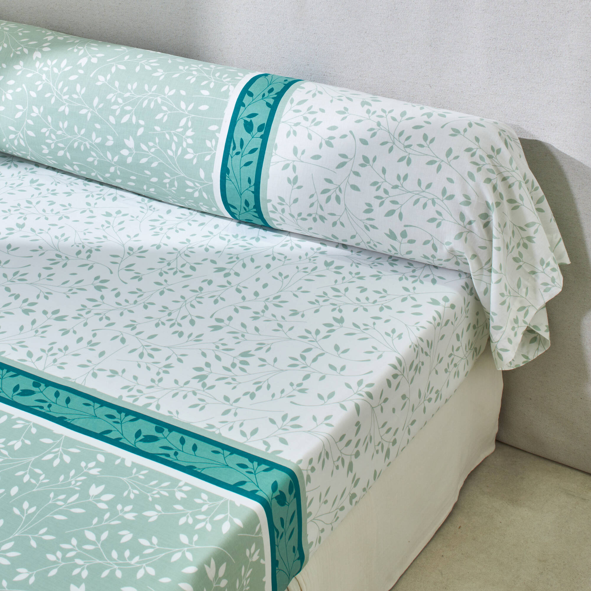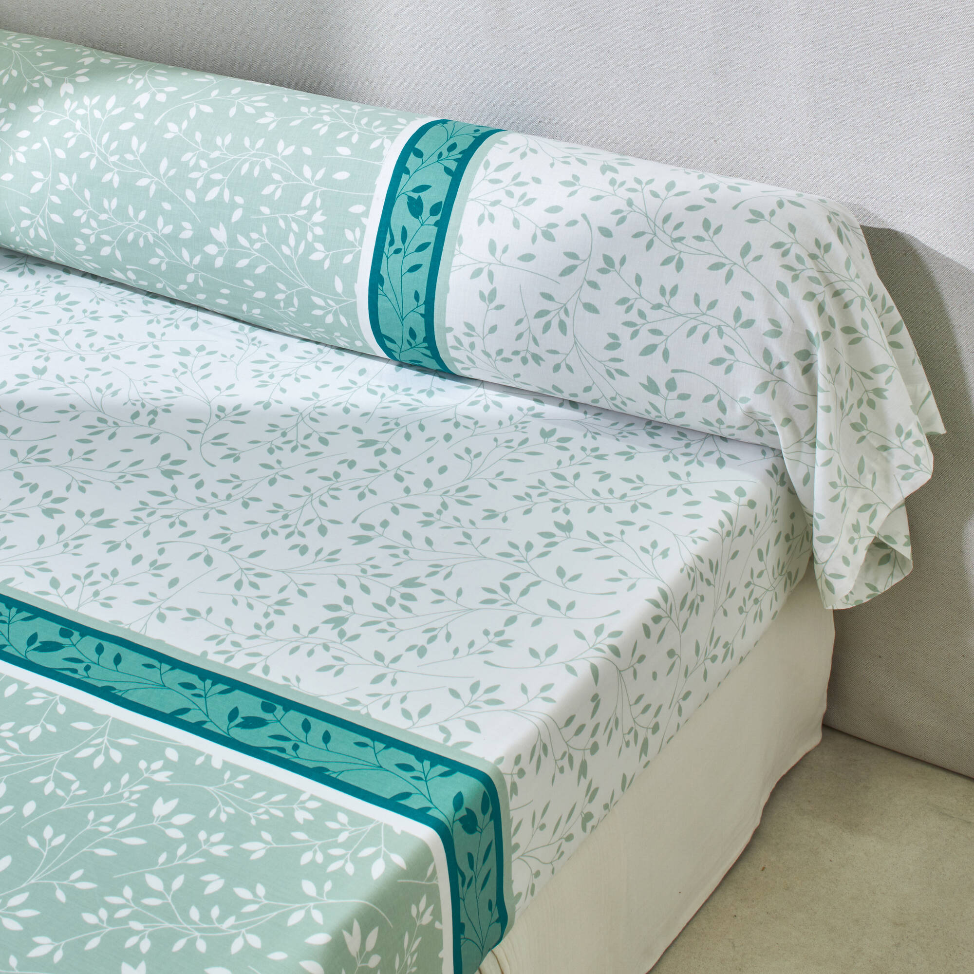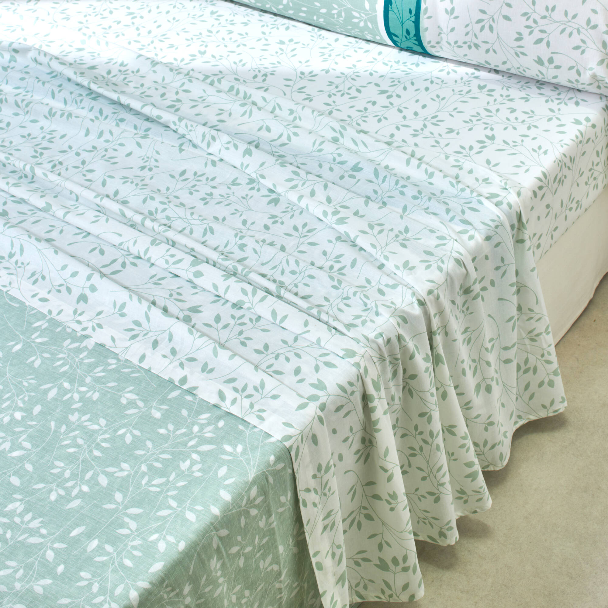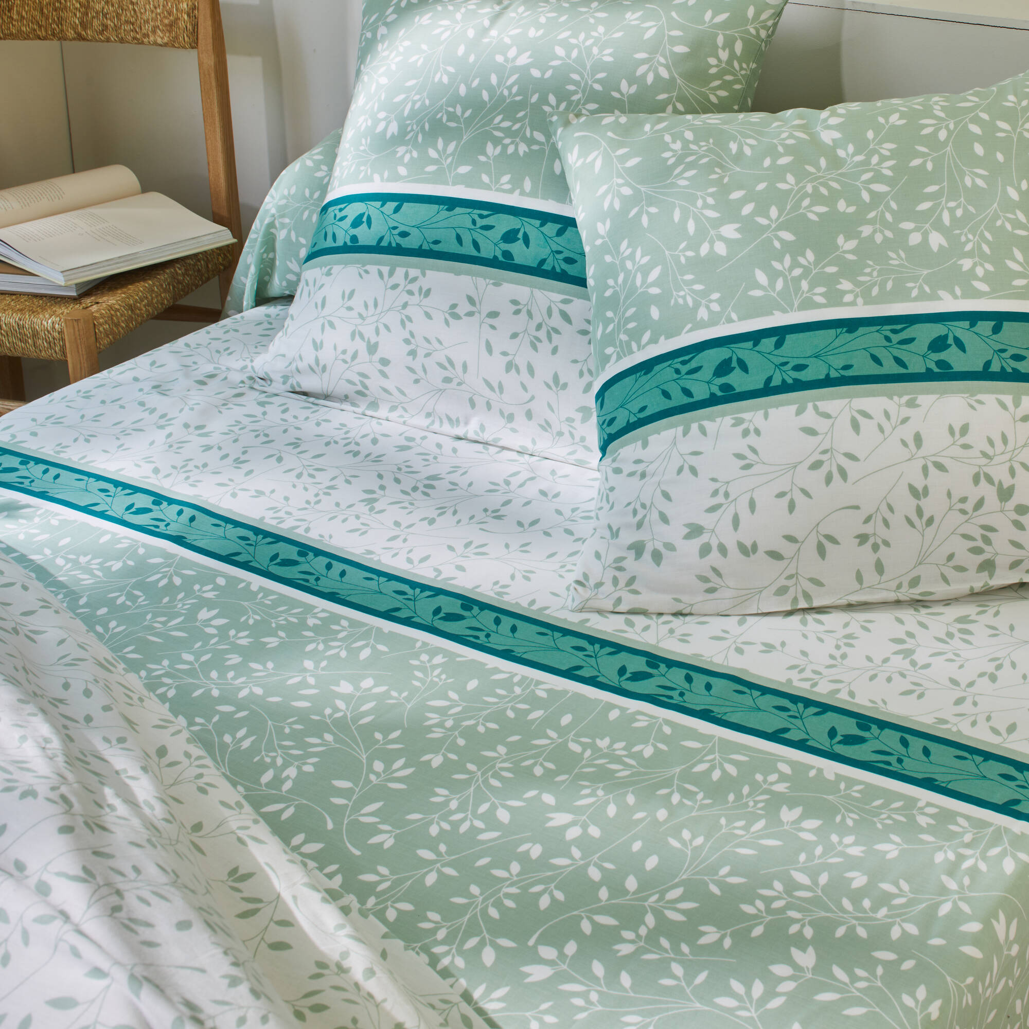 Linge de lit Constance en coton imprimé feuilles (amande)