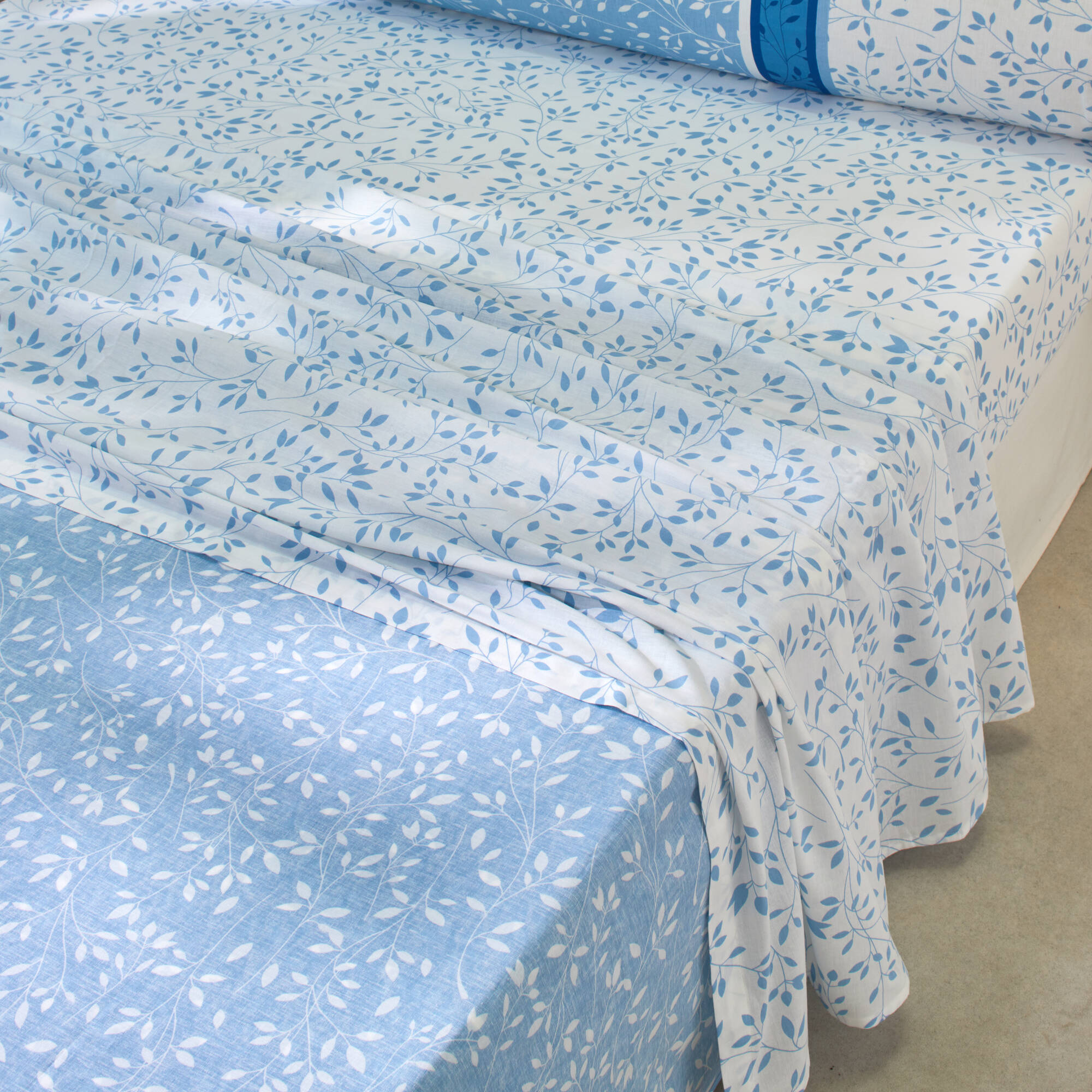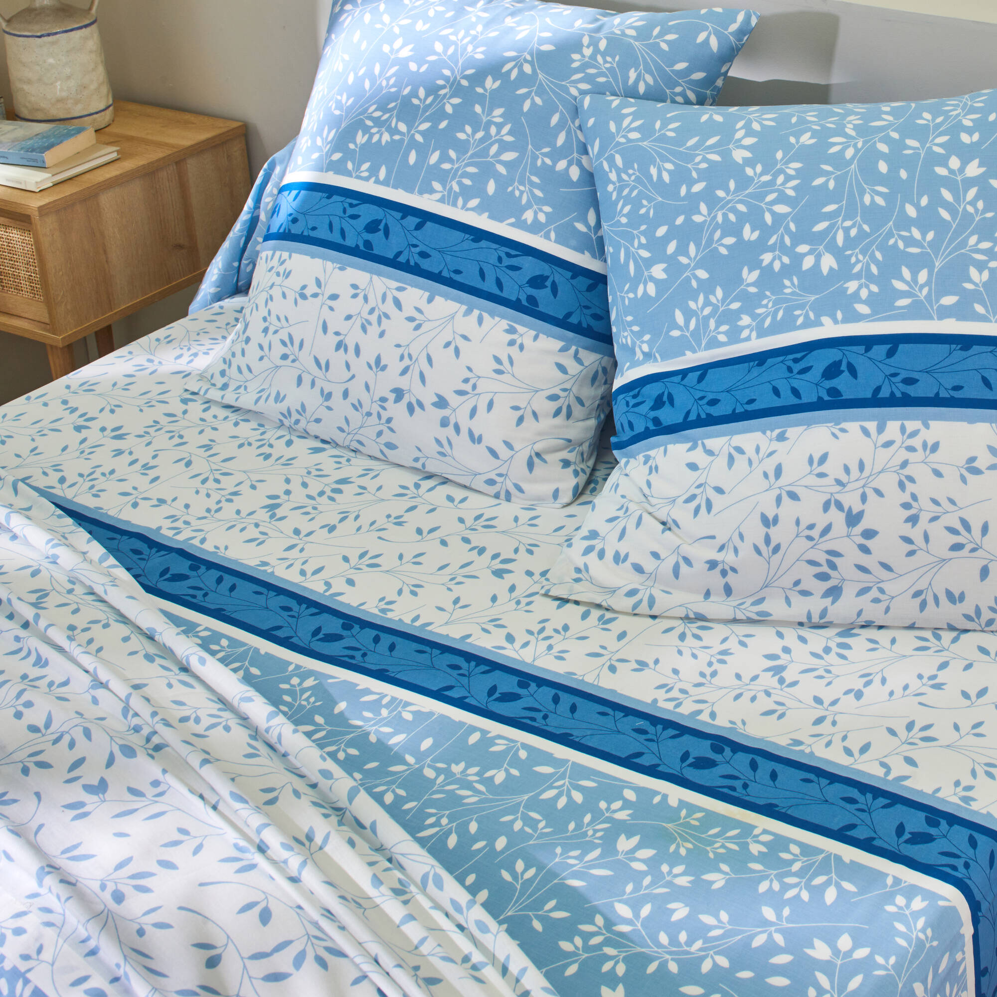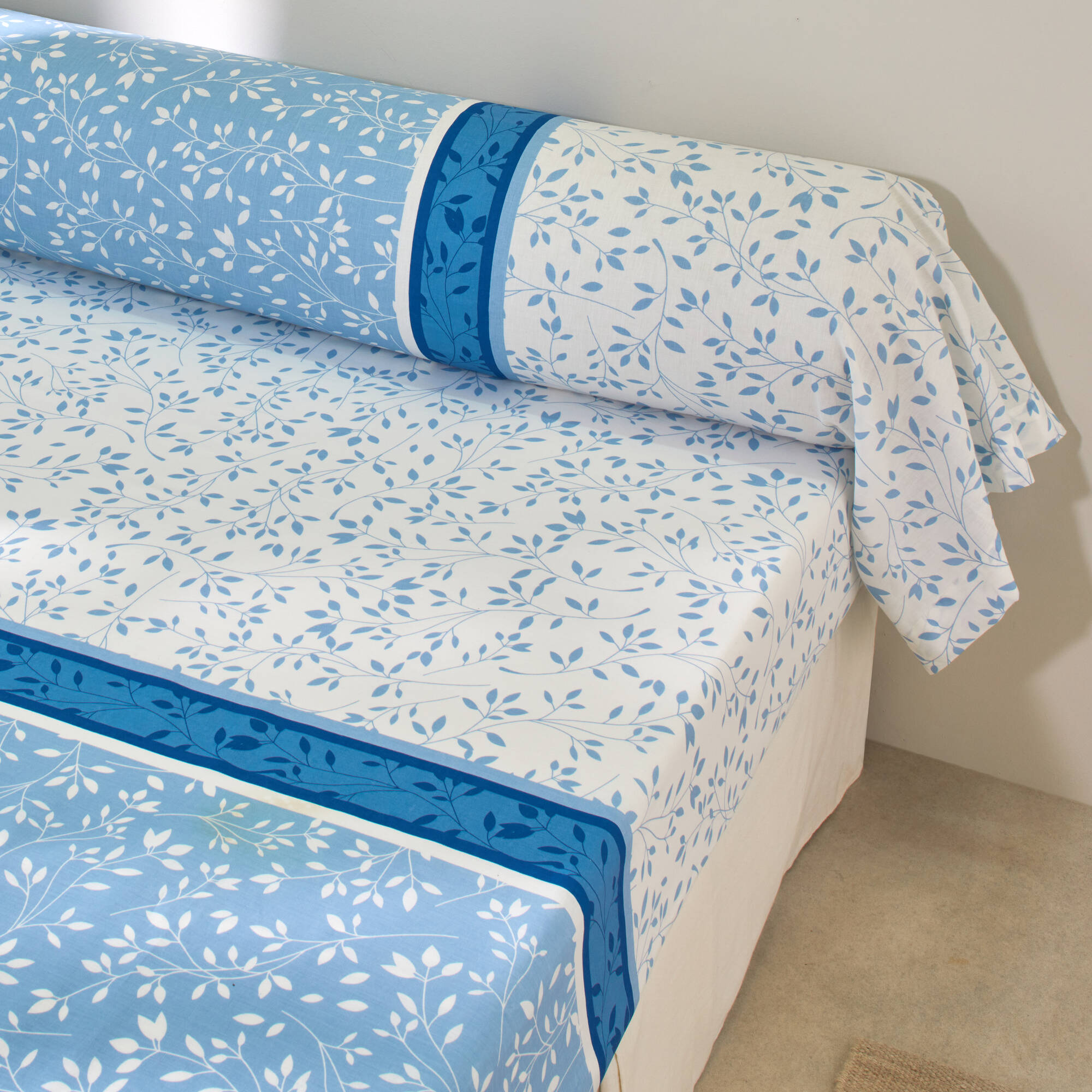Linge de lit Constance en coton imprimé feuilles (bleu)
