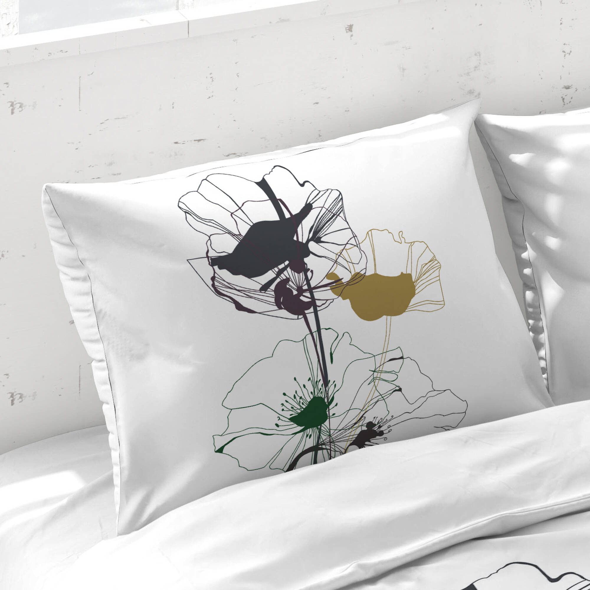 Linge de lit Coquelicot en coton imprimé (blanc)