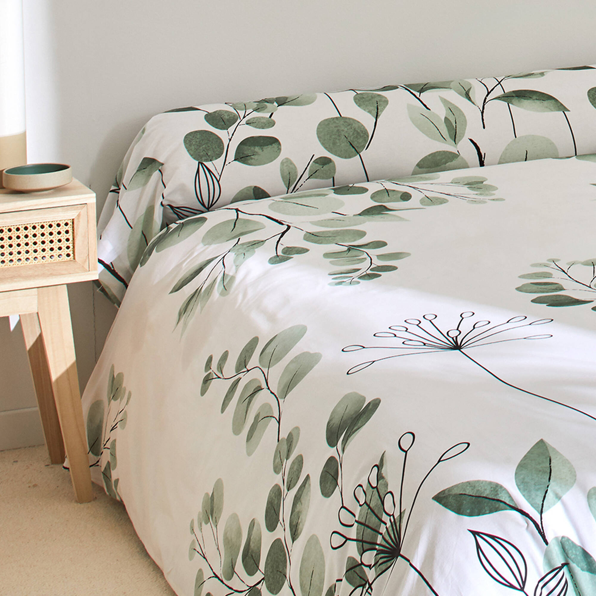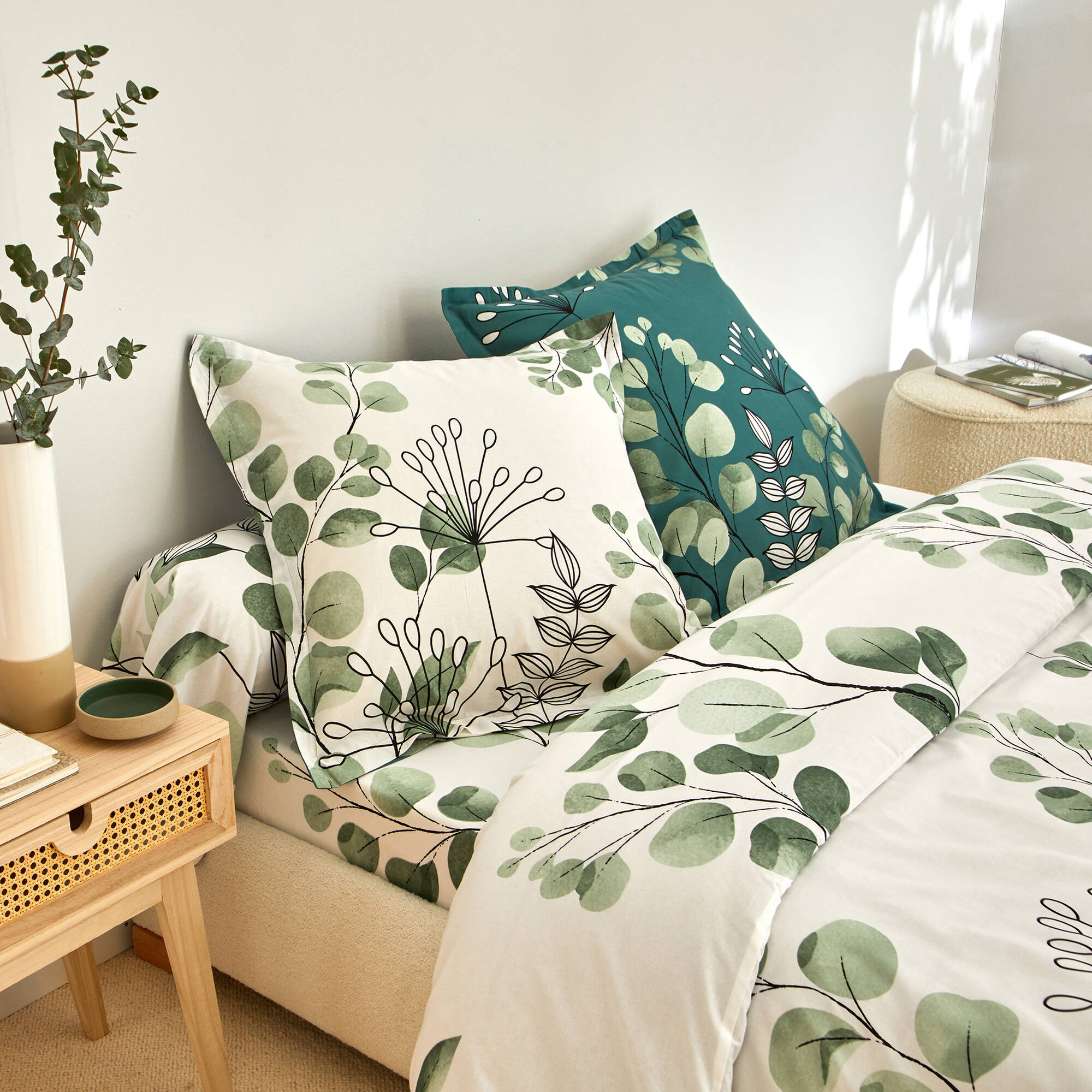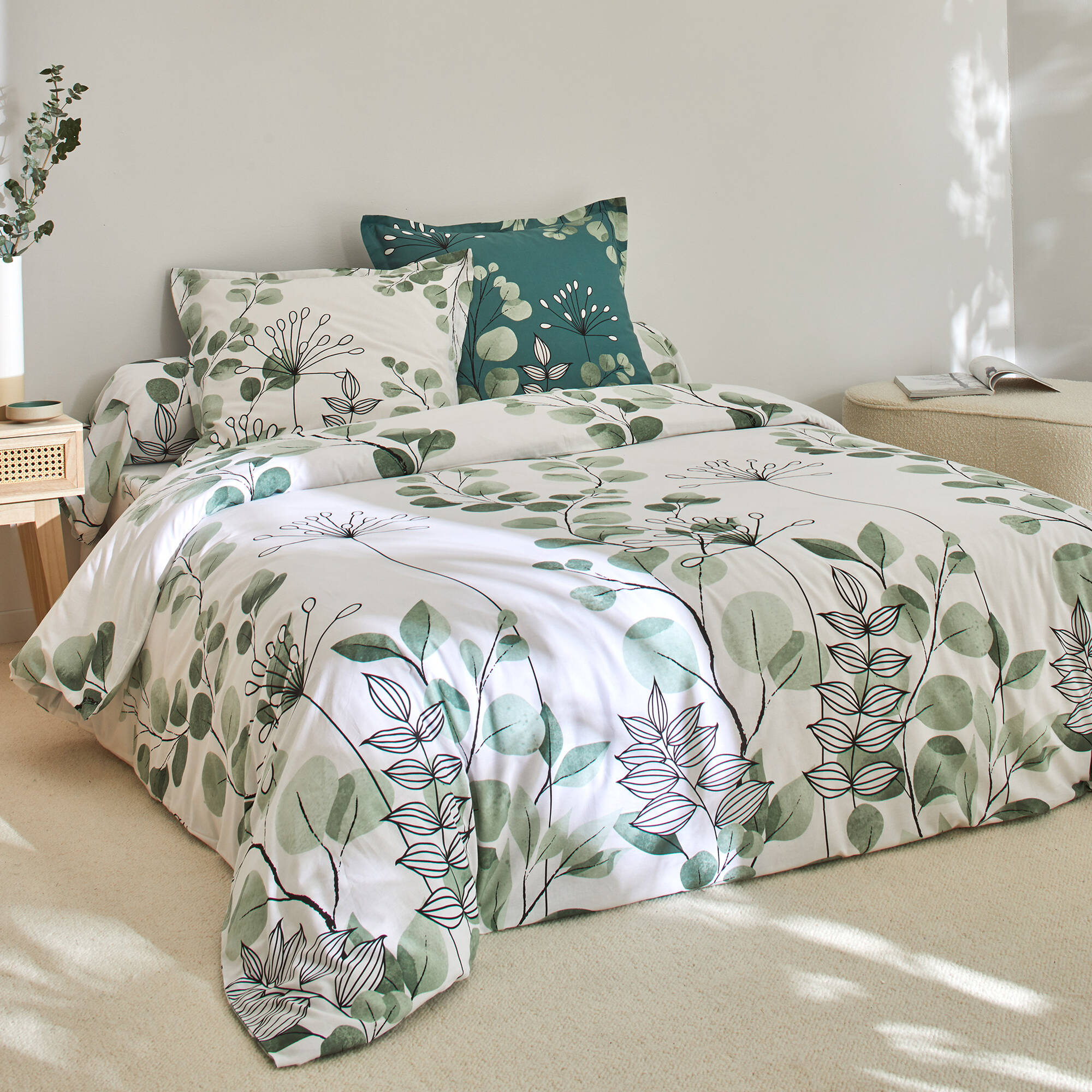 Linge de lit Danae en coton imprimé (vert d'eau)