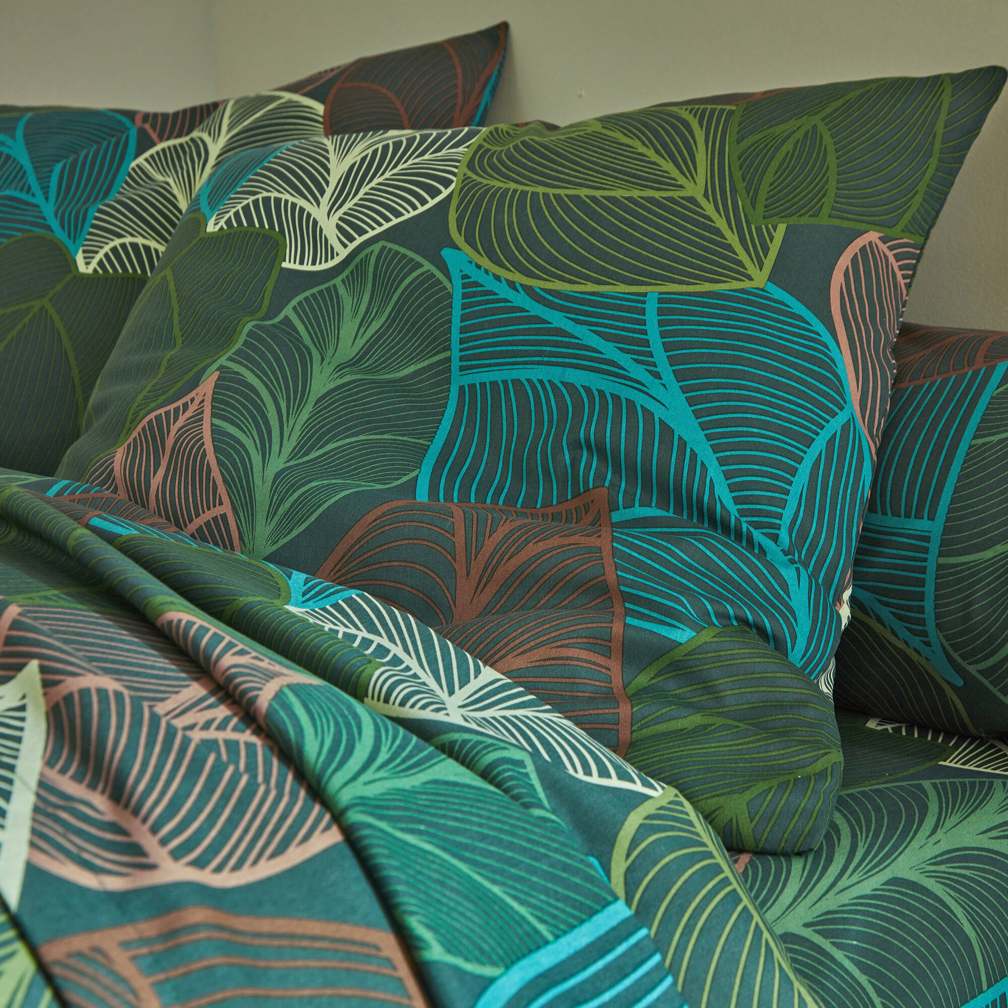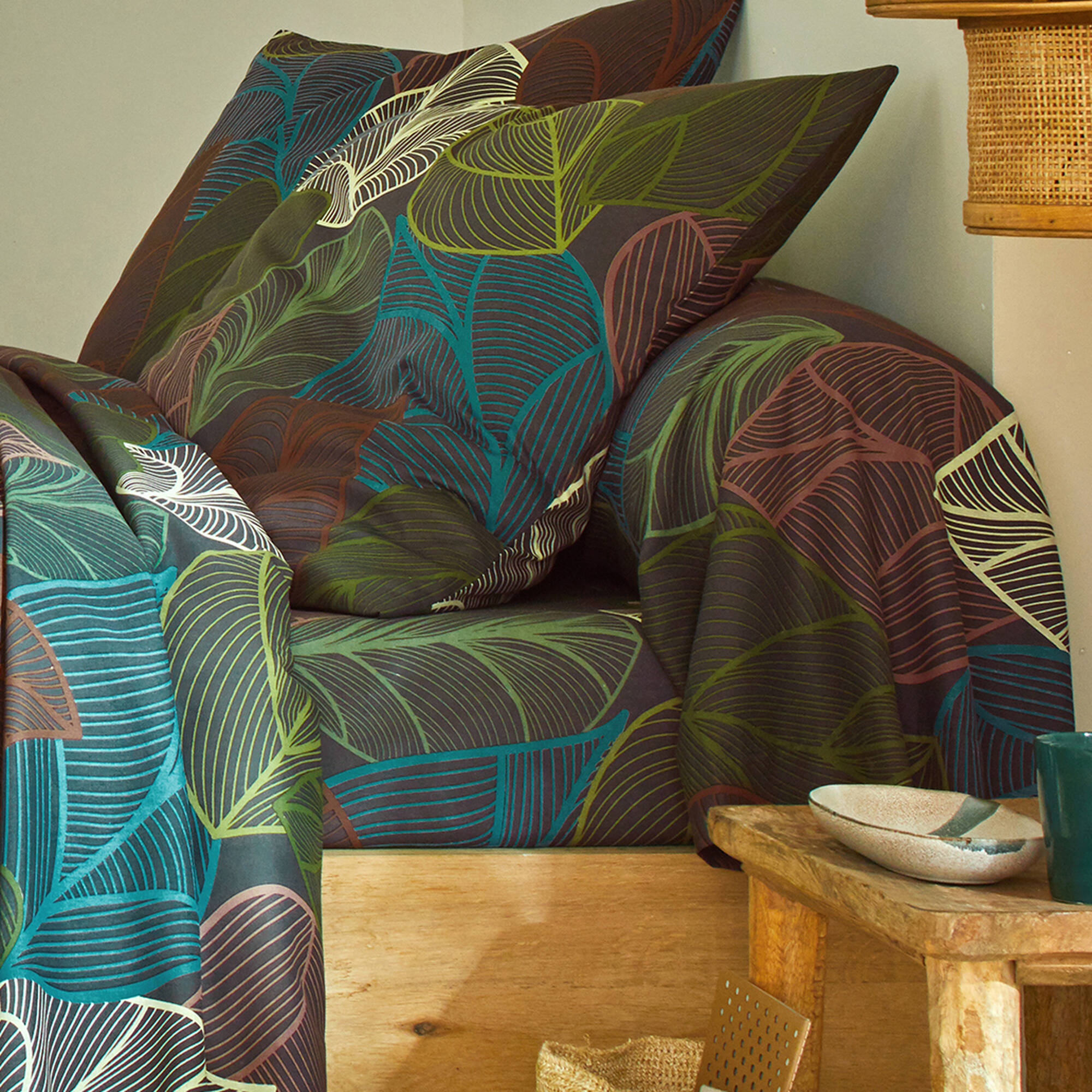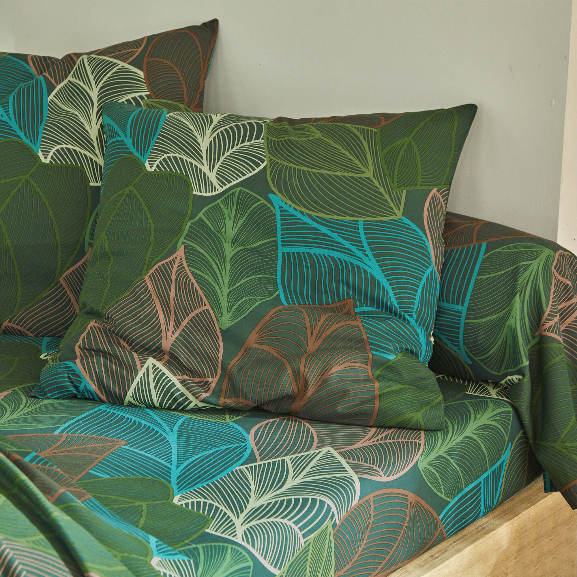 Linge de lit Elsa en polycoton à motifs feuilles (vert)