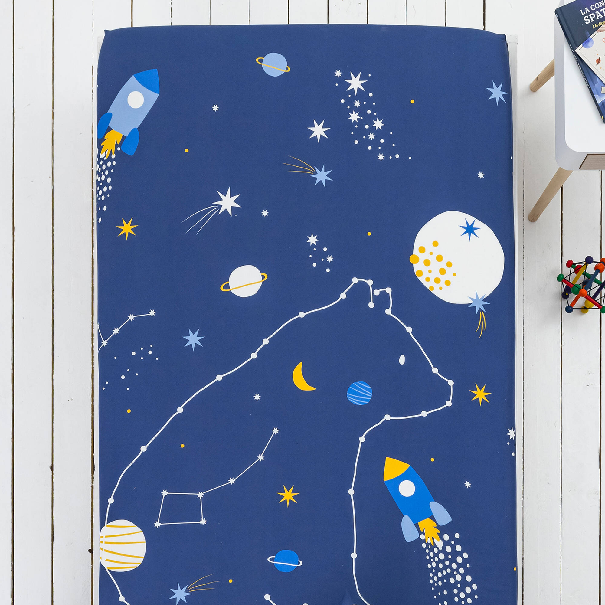 Linge de lit enfant imprimé Voie lactée - coton (marine)