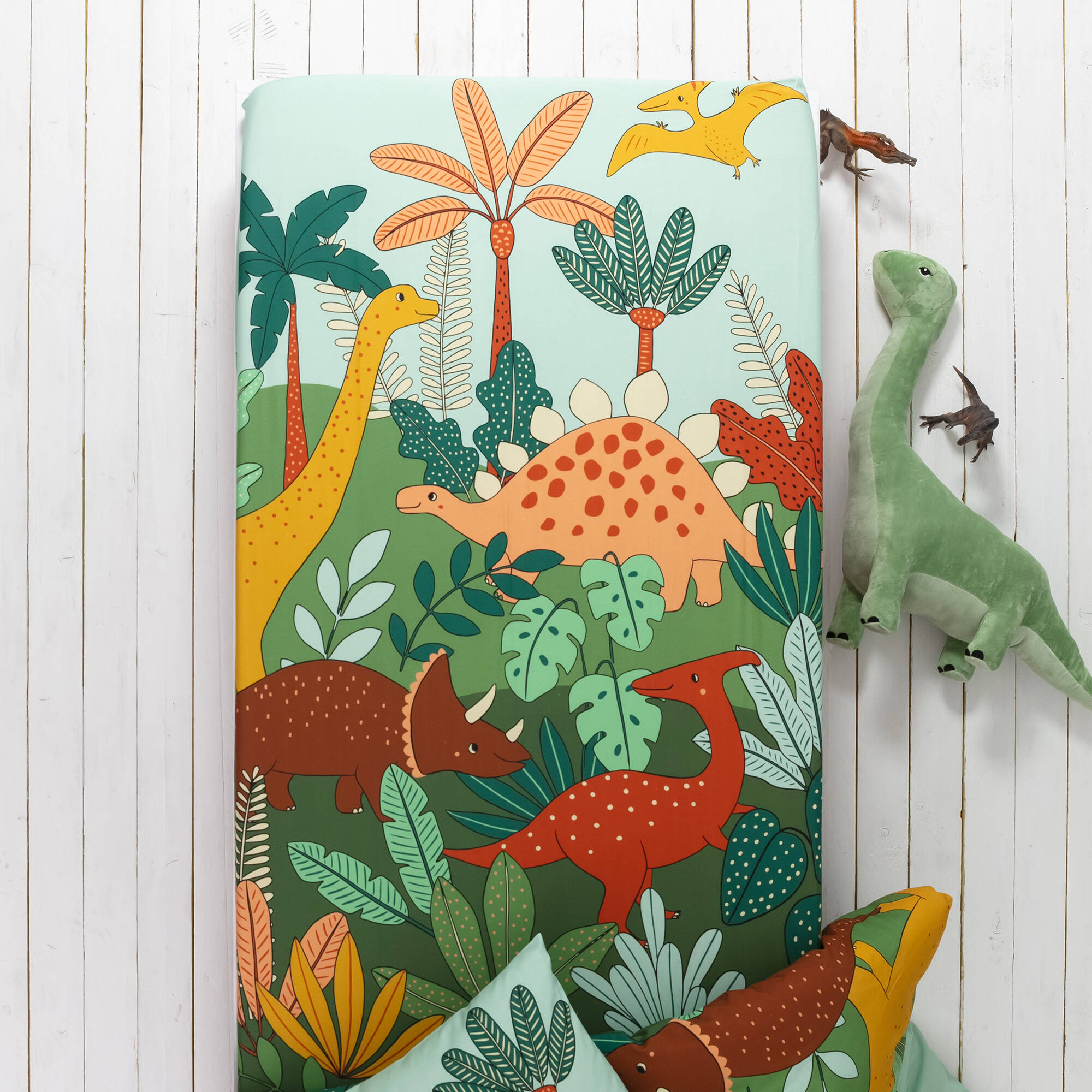 Linge de lit enfant Jurassi coton - Imprimé dinosaure  (vert)