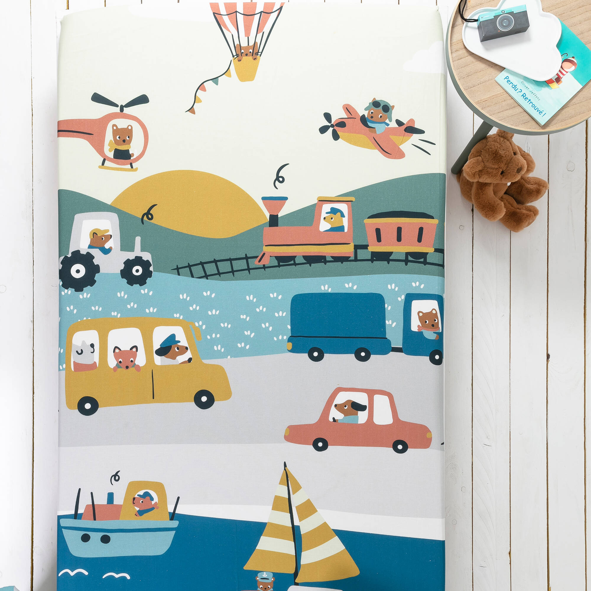 Linge de lit enfant Trafic imprimé voitures - coton  (beige)