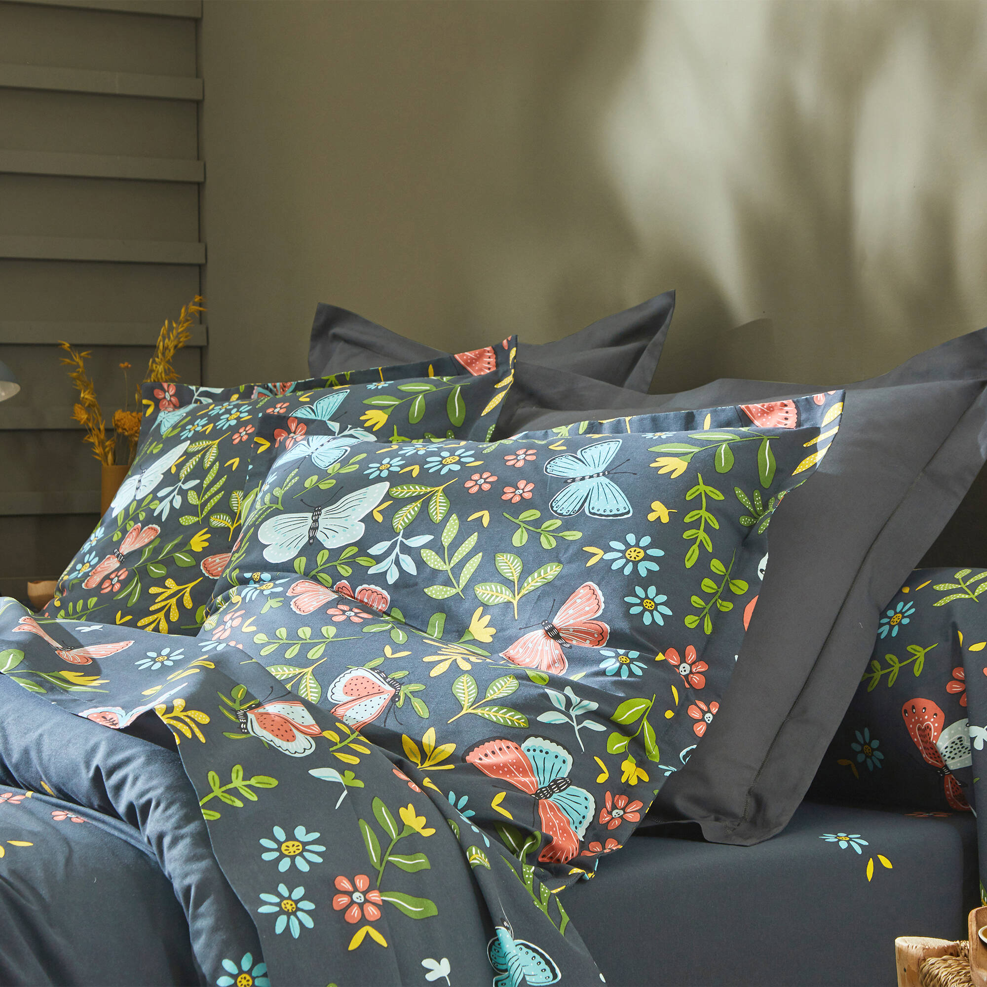 Linge de lit Envolée en coton à motifs papillons