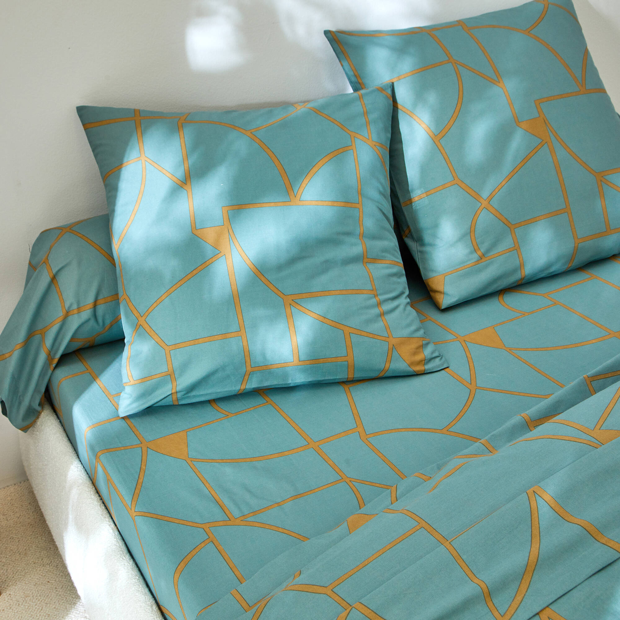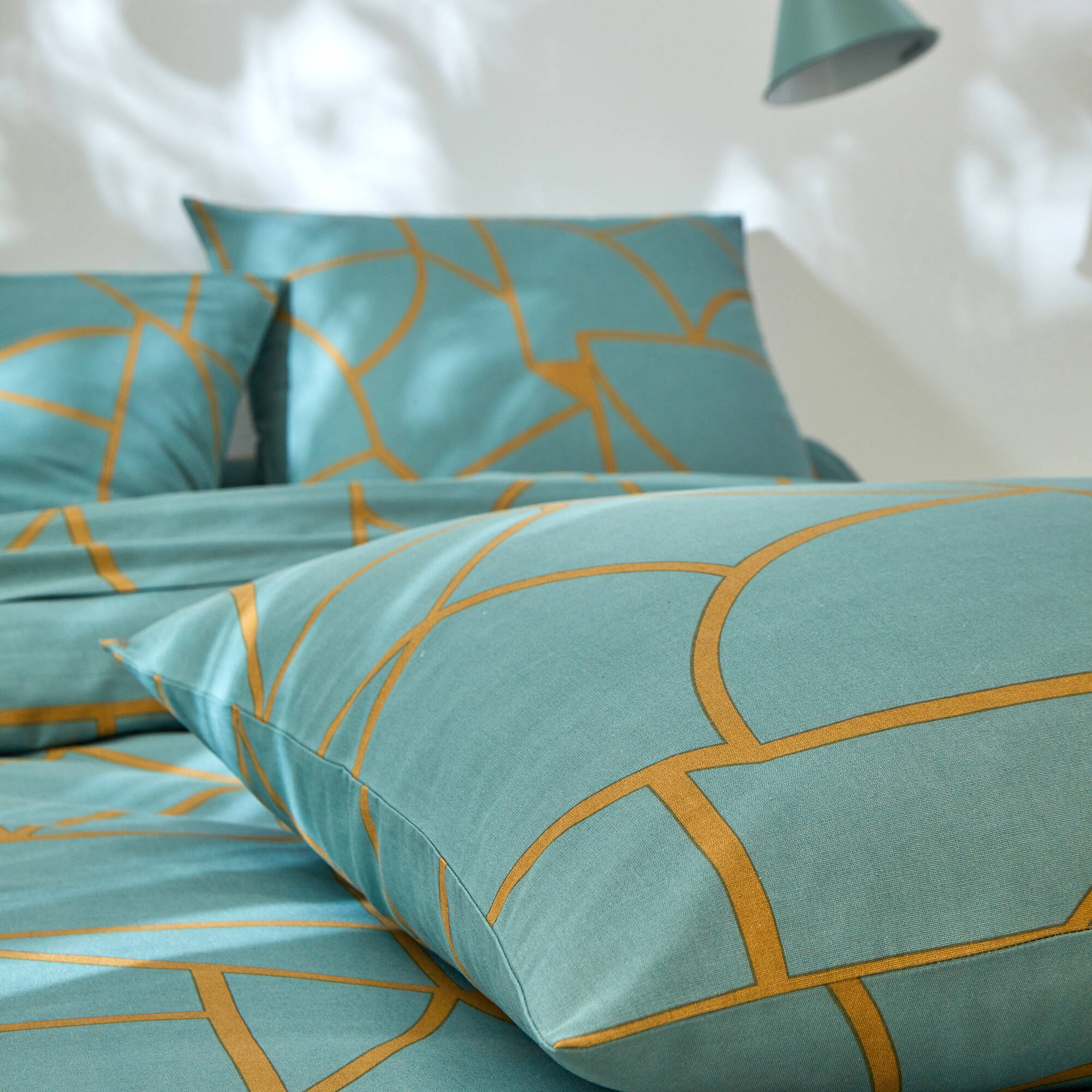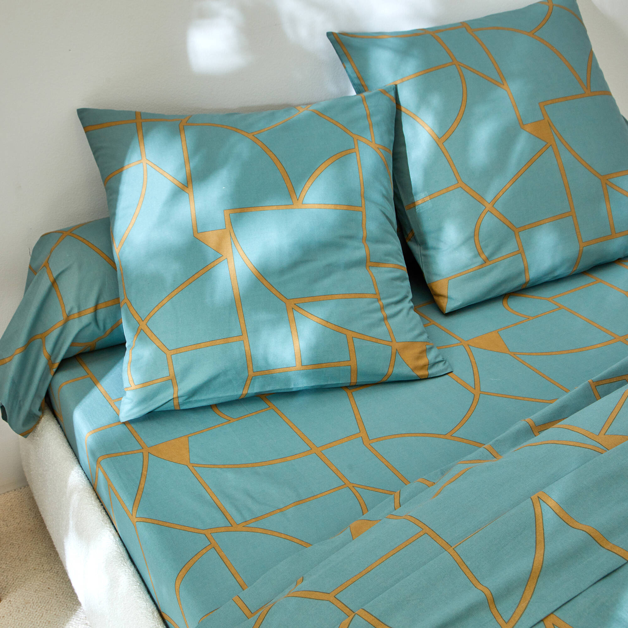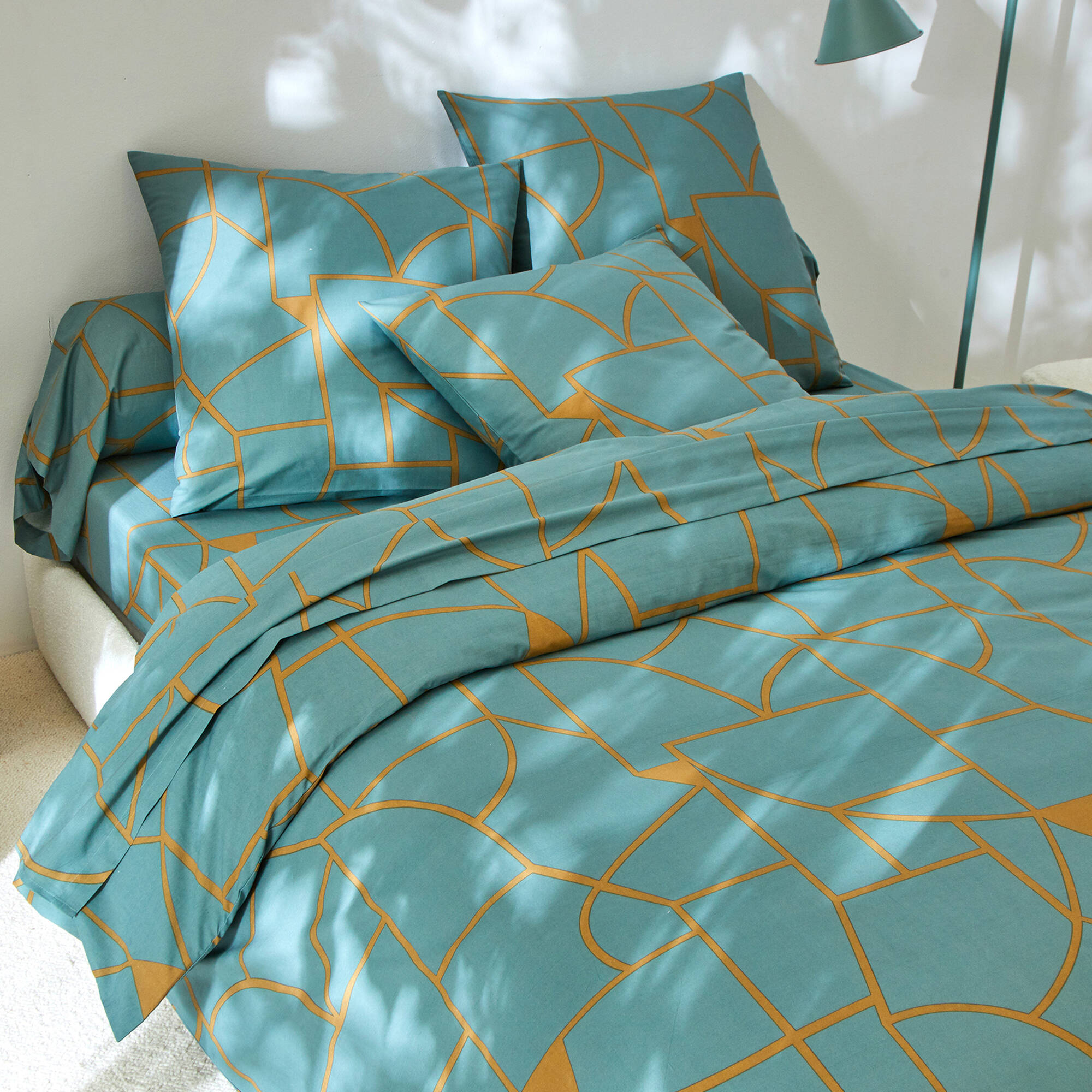 Linge de lit Geoffroy en coton à motifs graphiques (eucalyptus)