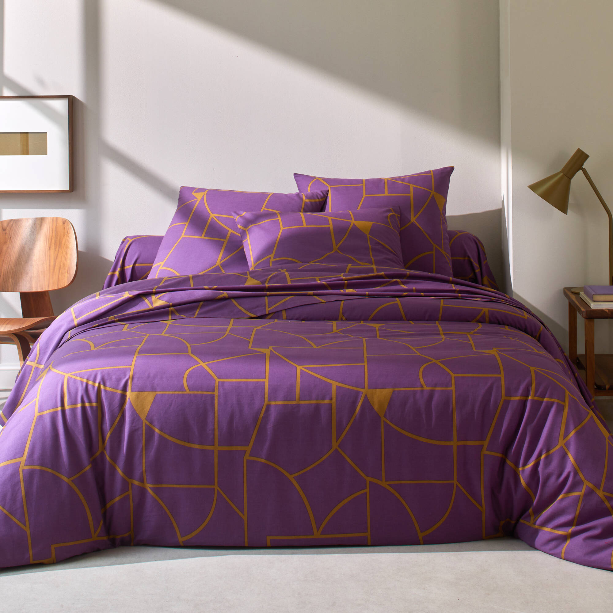 Linge de lit Geoffroy en coton à motifs graphiques (figue)