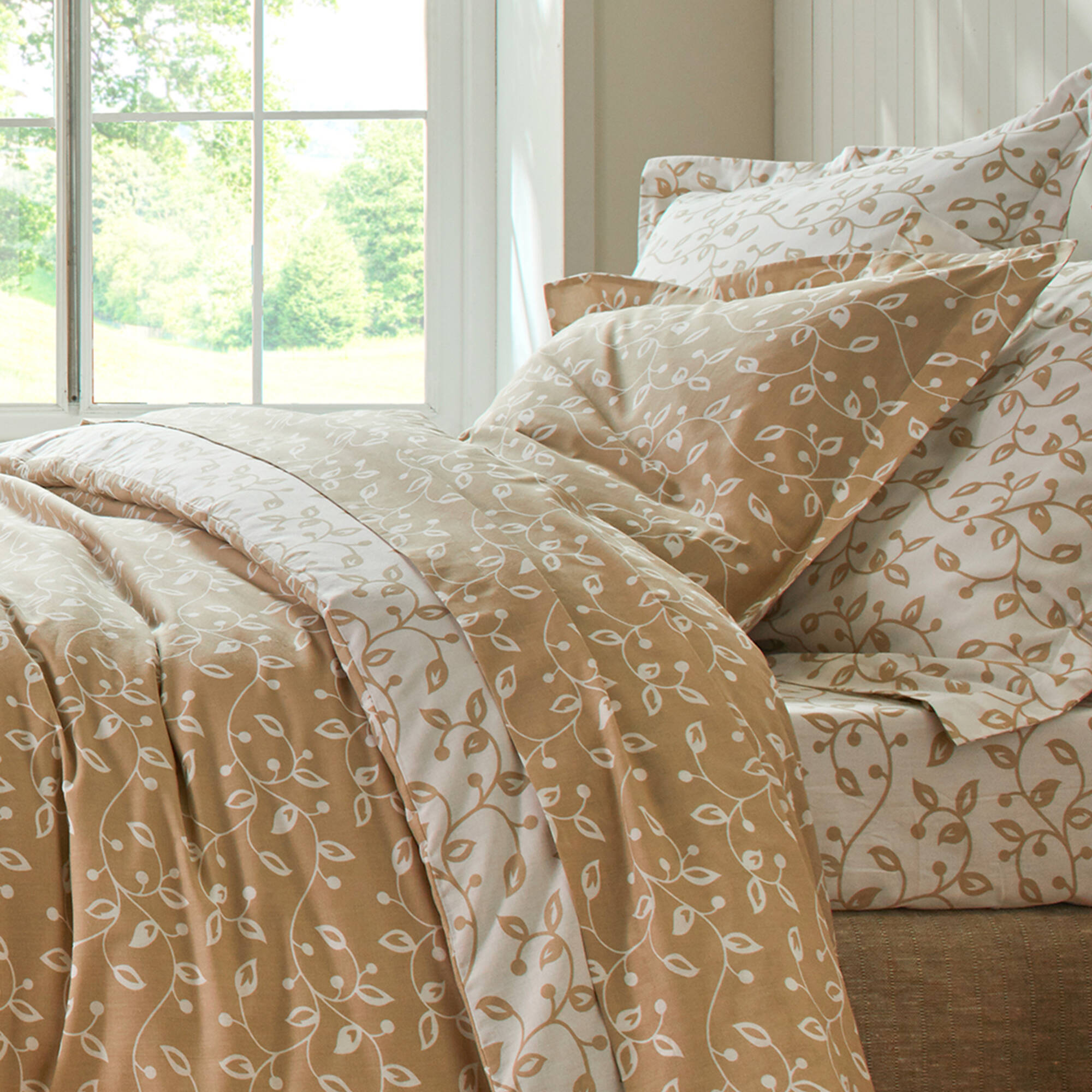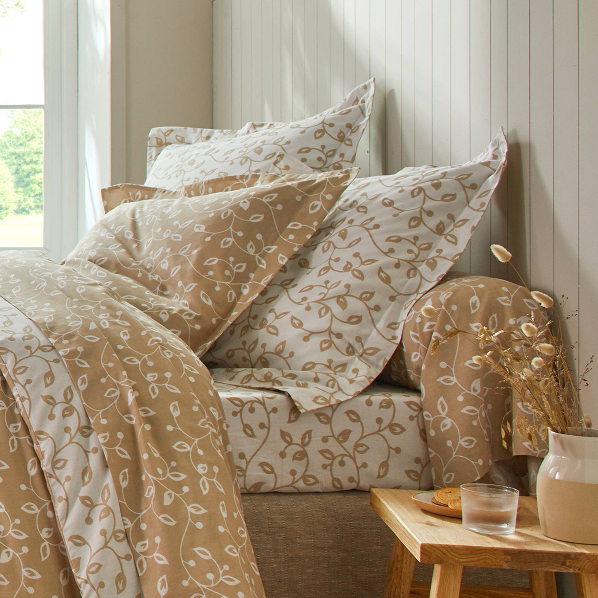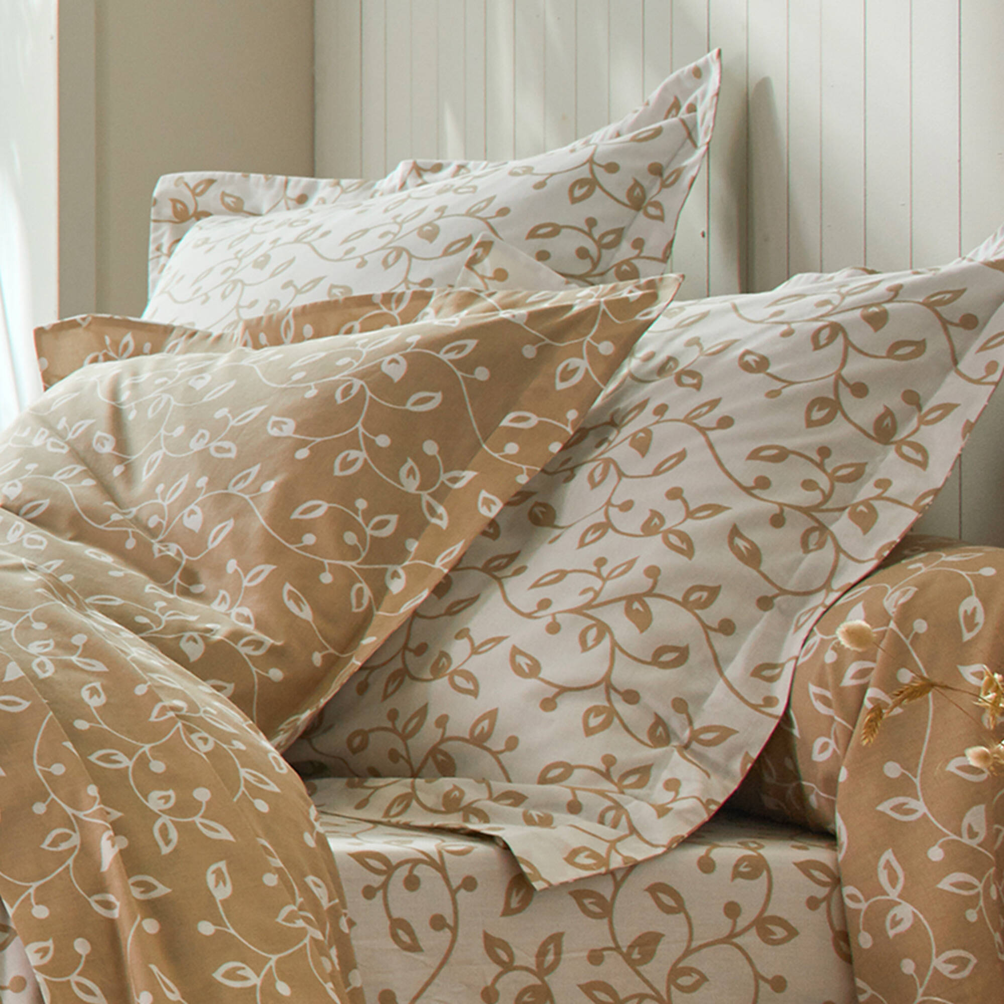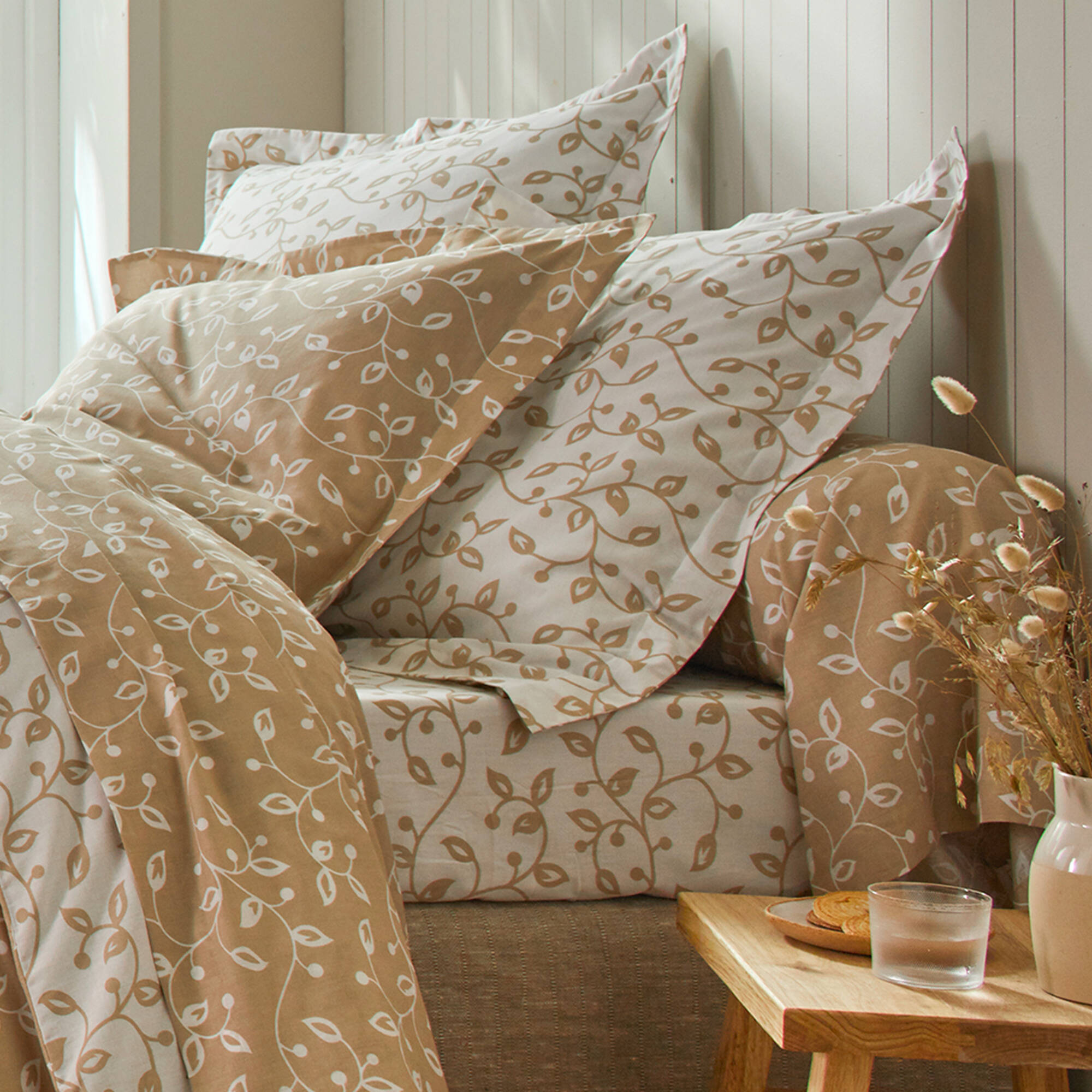 Linge de lit Héritage en coton à motifs volutes (blanc / beige)