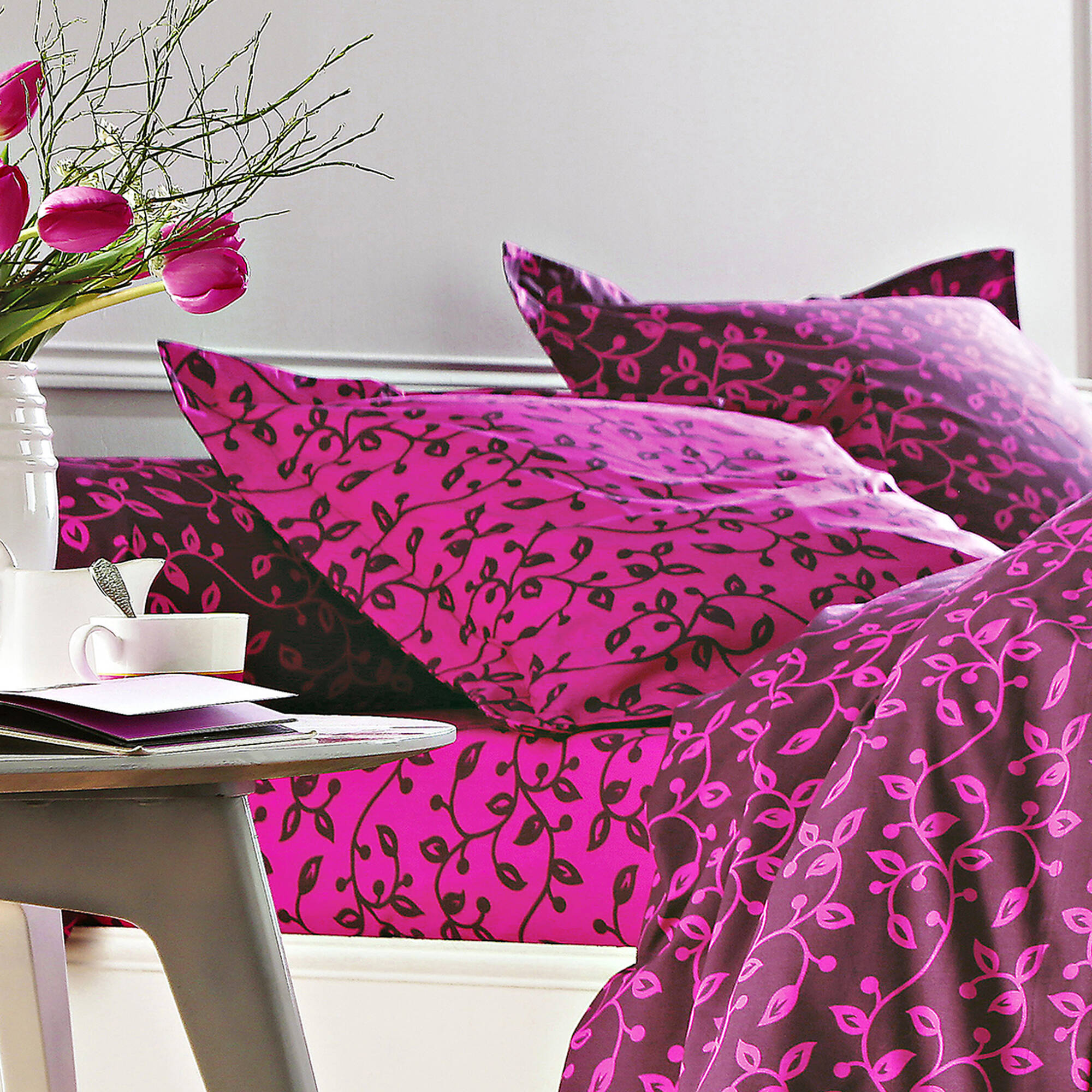 Linge de lit Héritage flanelle à motifs volutes (fuchsia / prune)