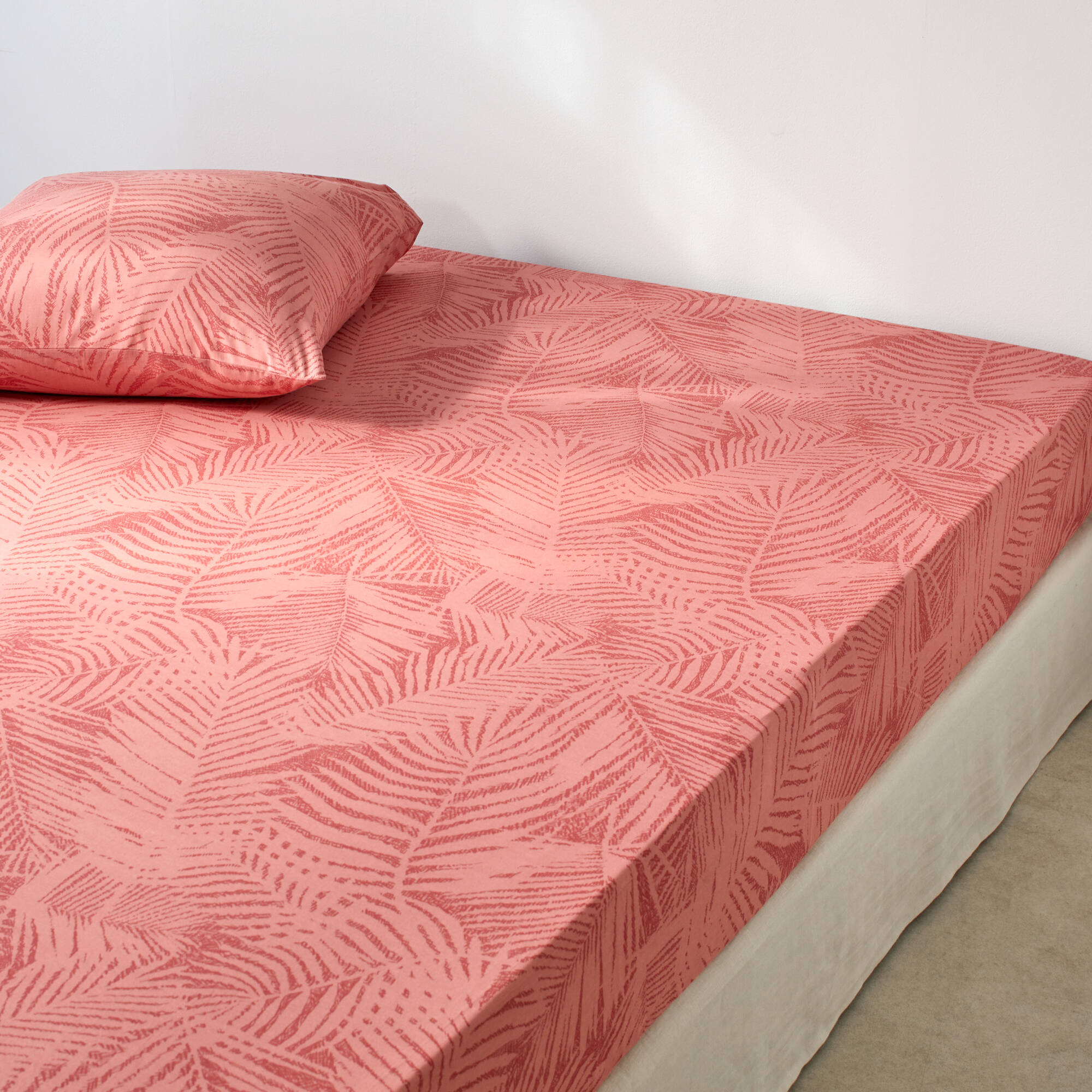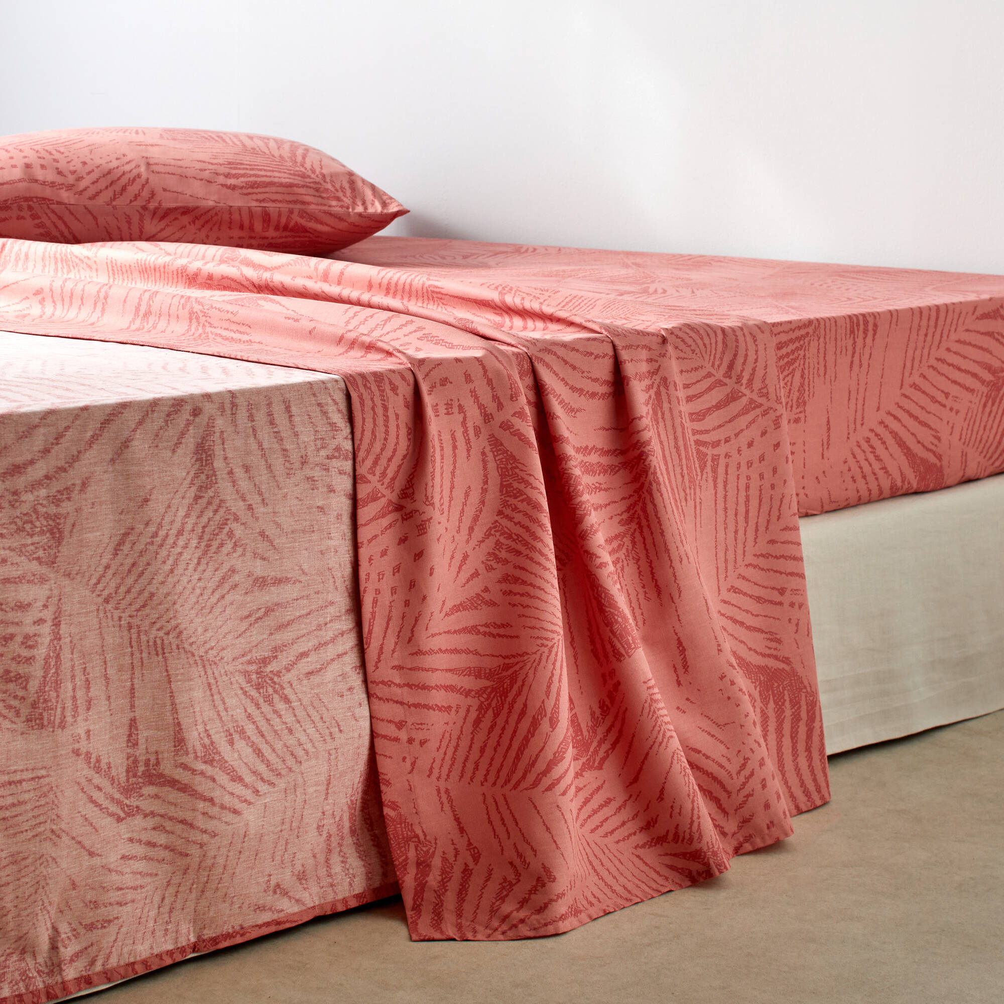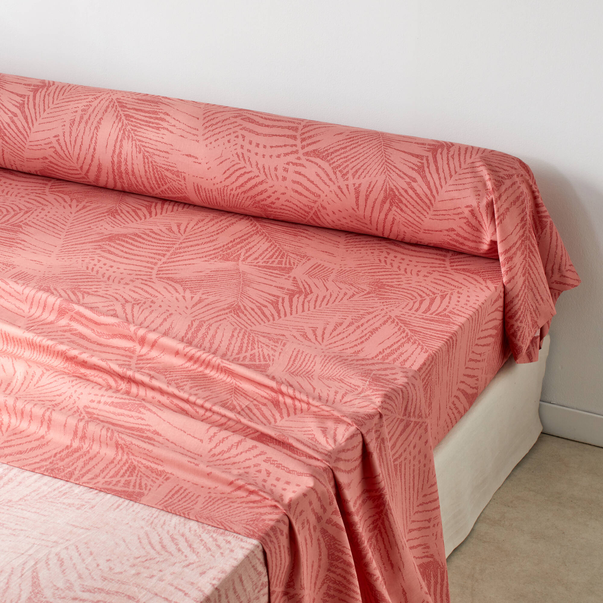 Linge de lit imprimé Marie coton (bois de rose)