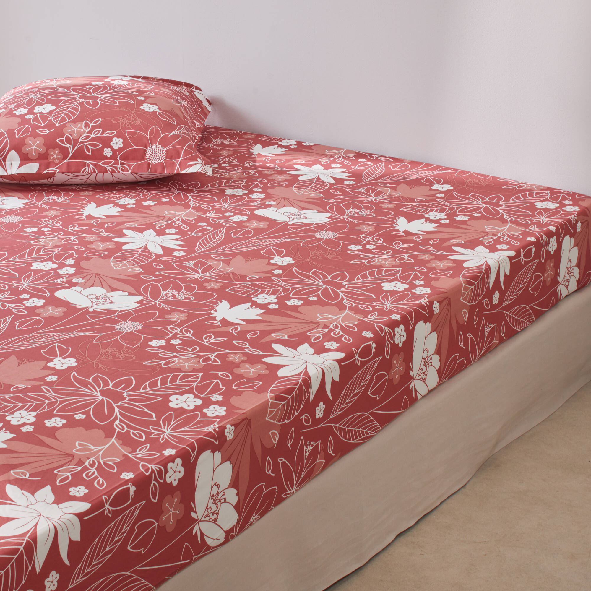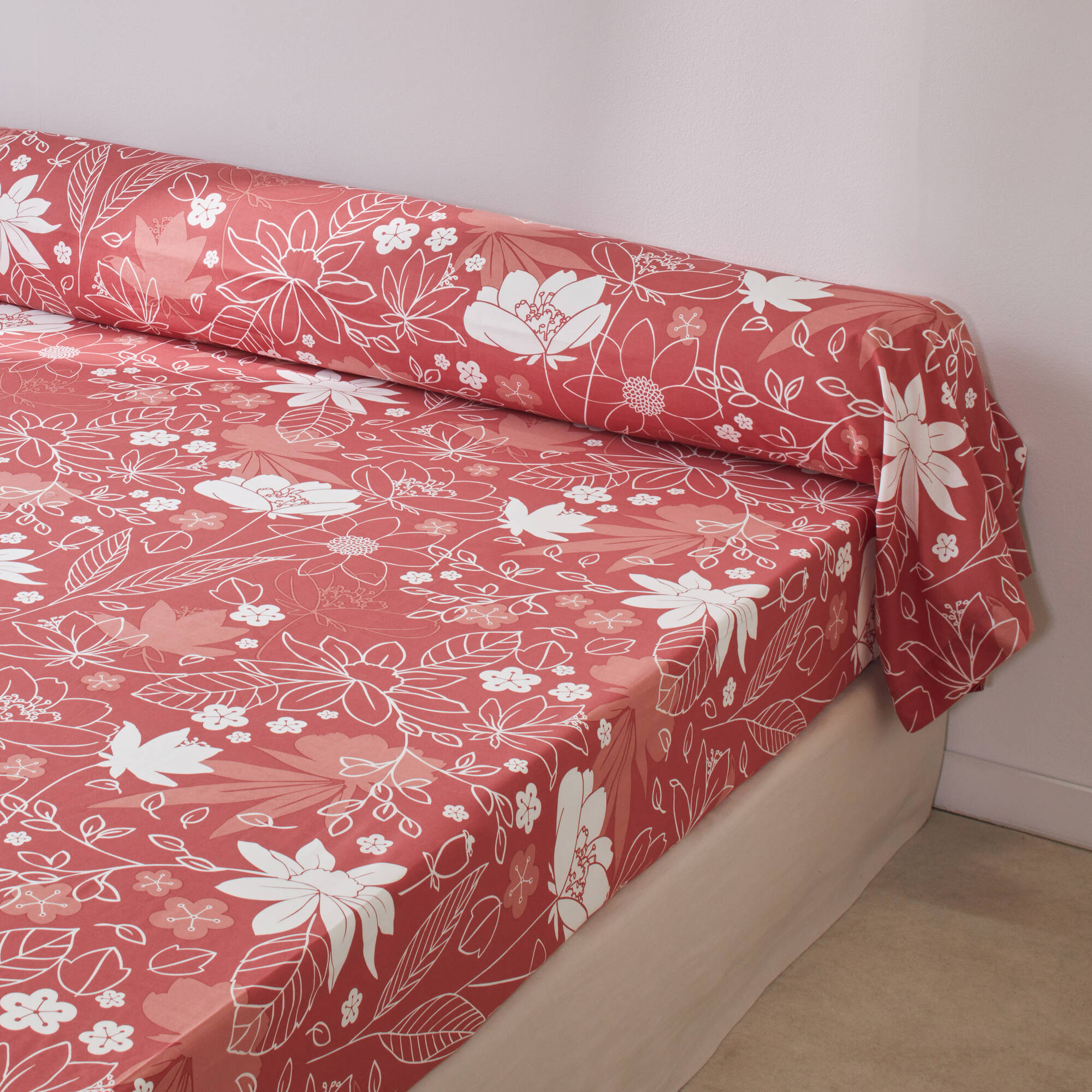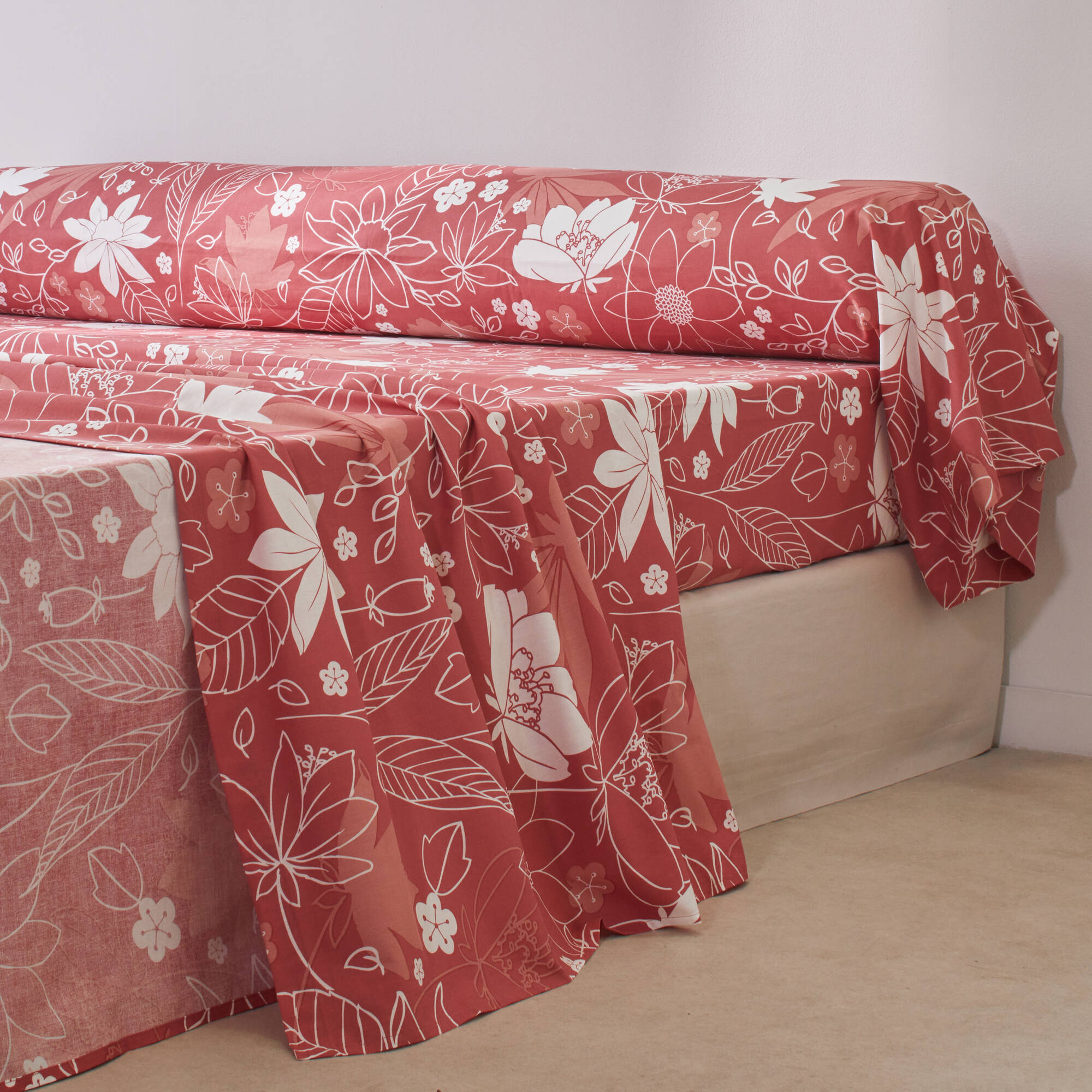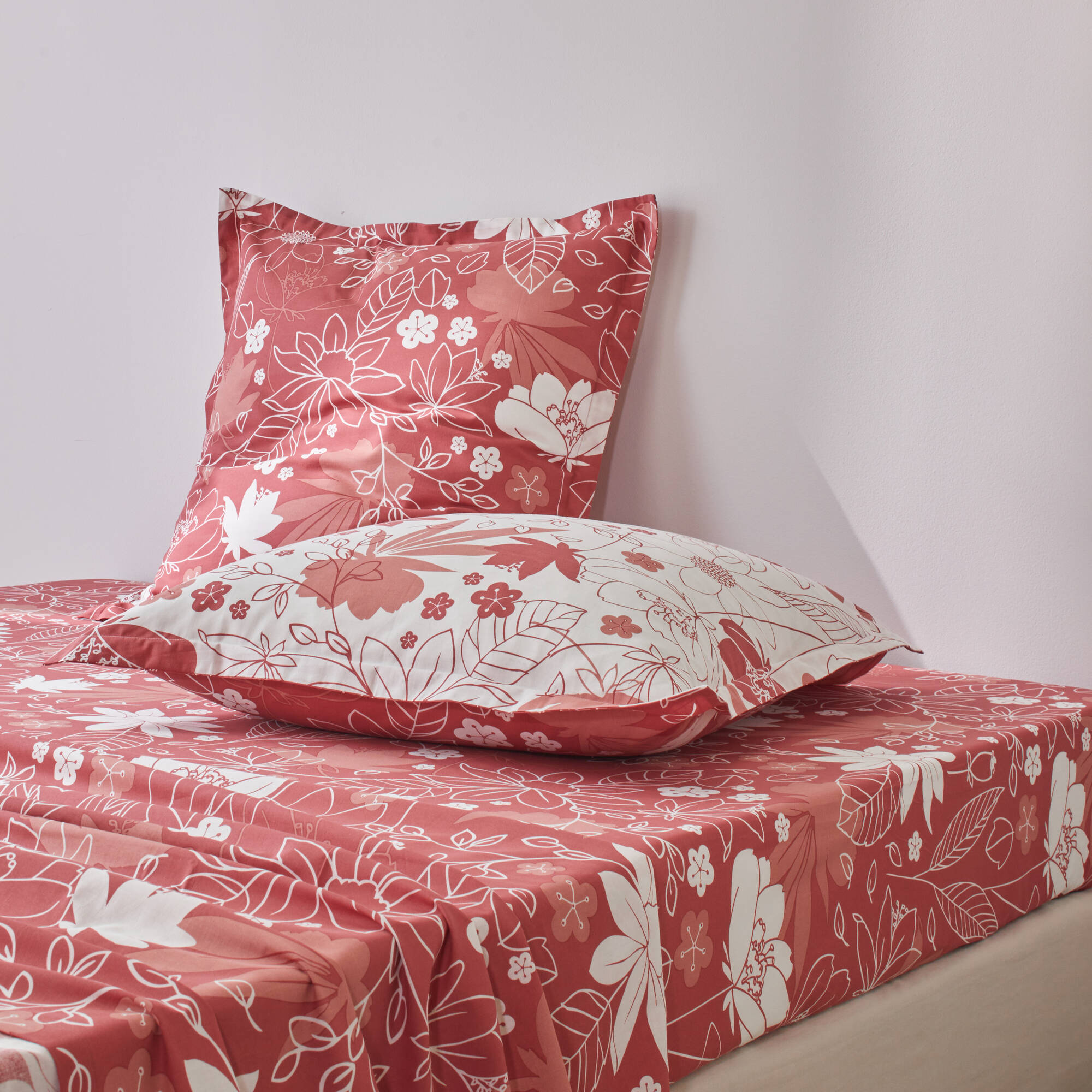 Linge de lit imprimé Pénélope coton (bois de rose)