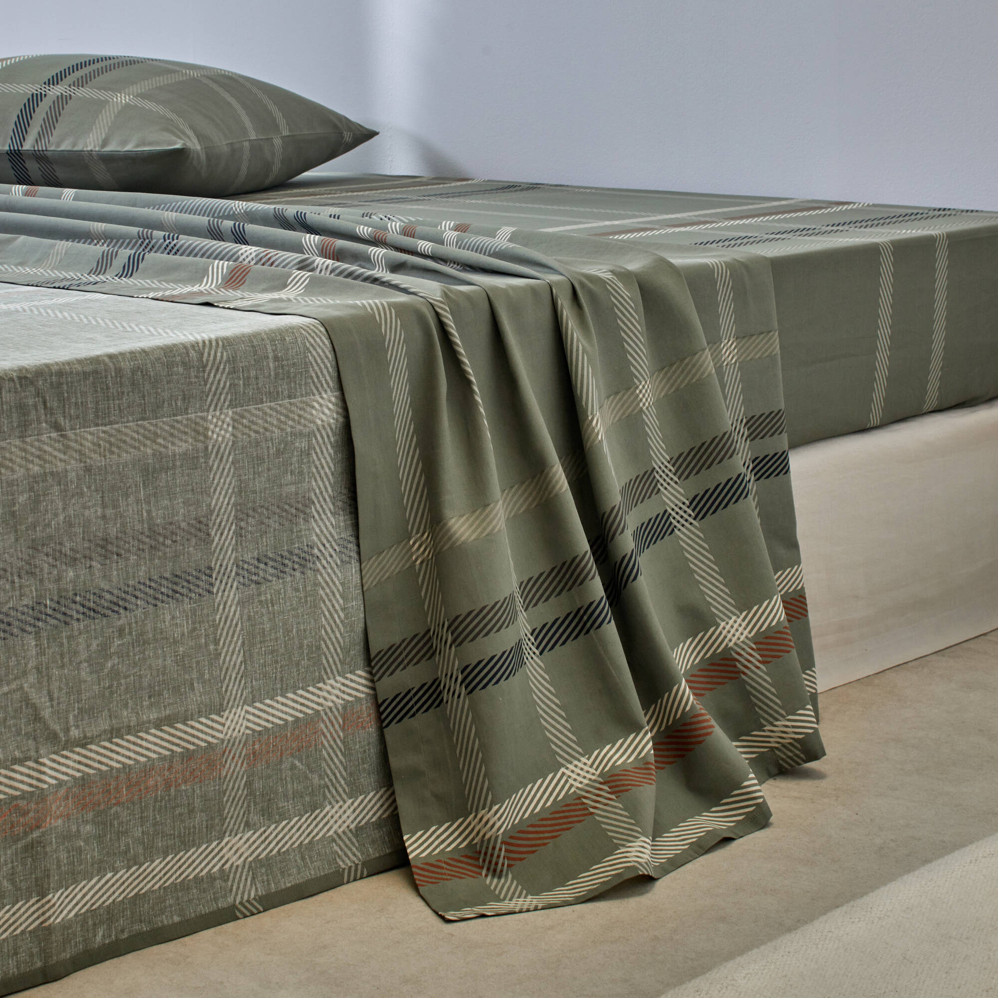 Linge de lit Karl imprimé écossais, en flanelle  (vert)
