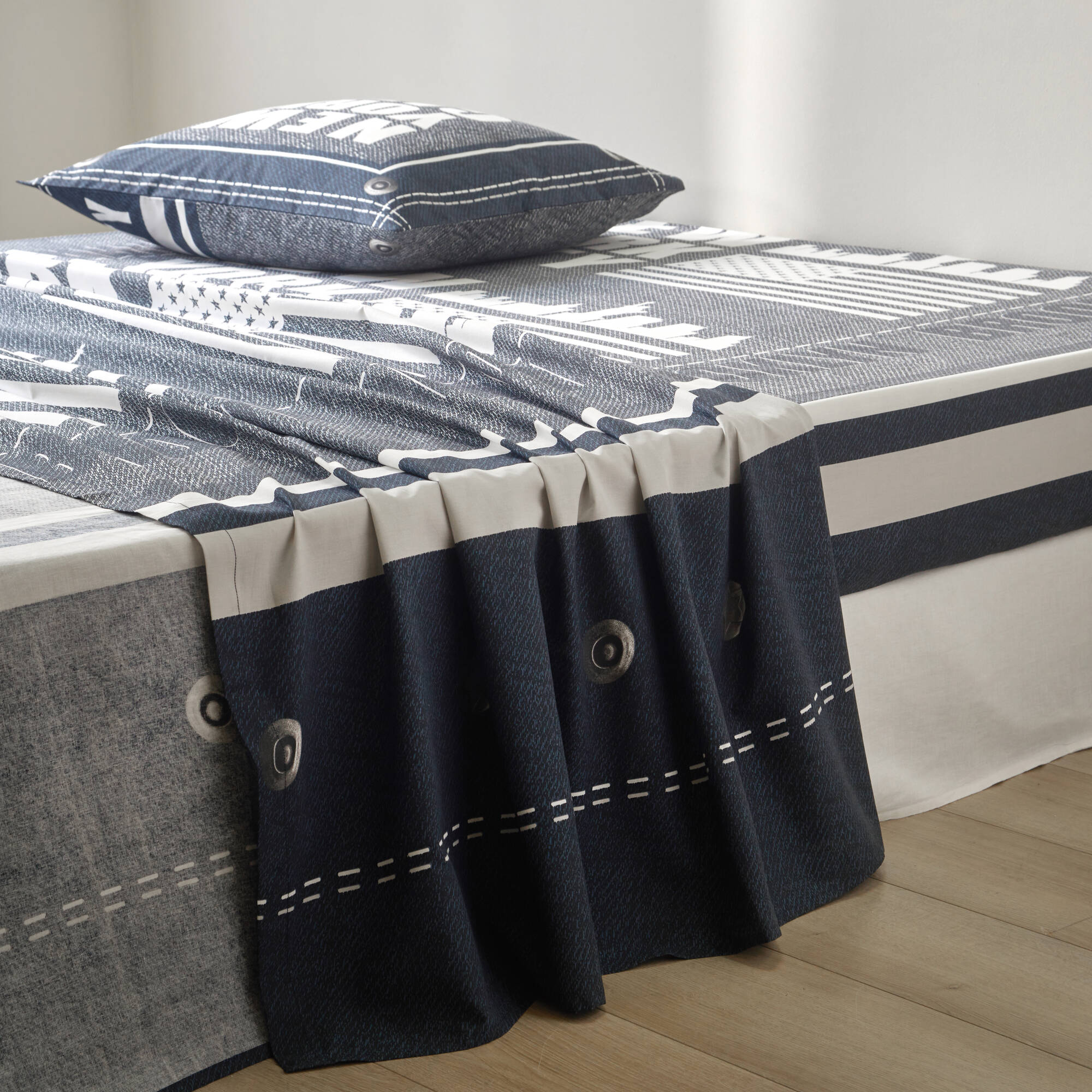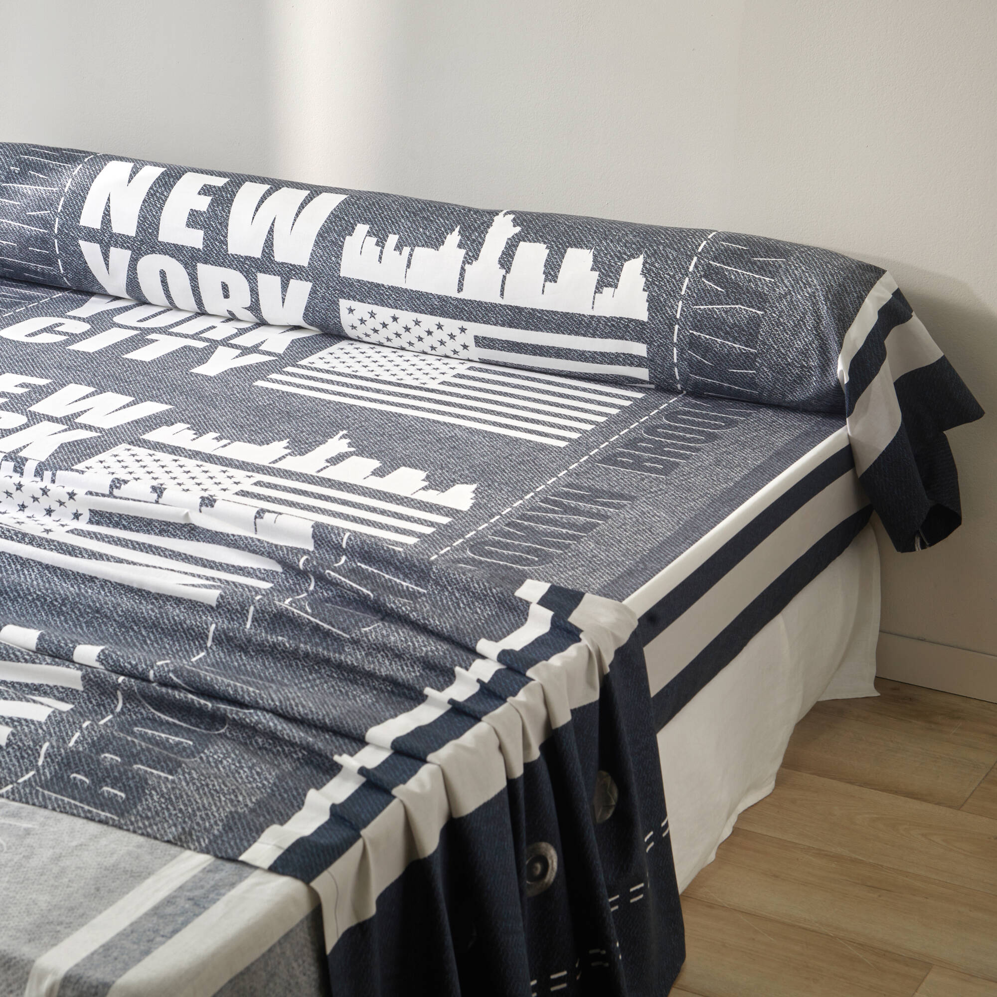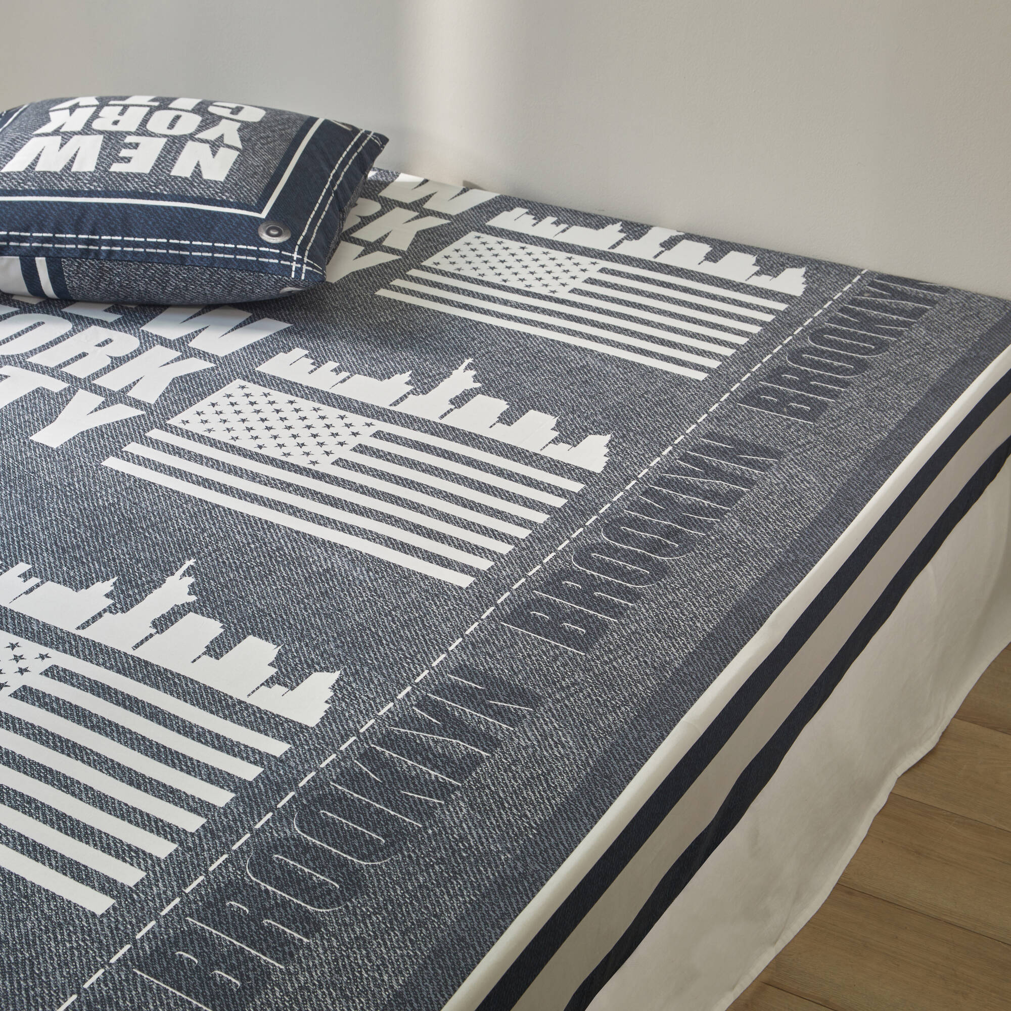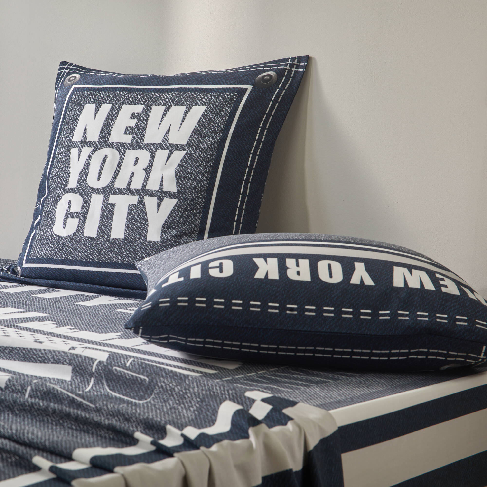 Linge de lit Manhattan en polycoton imprimé New-York (bleu marine)