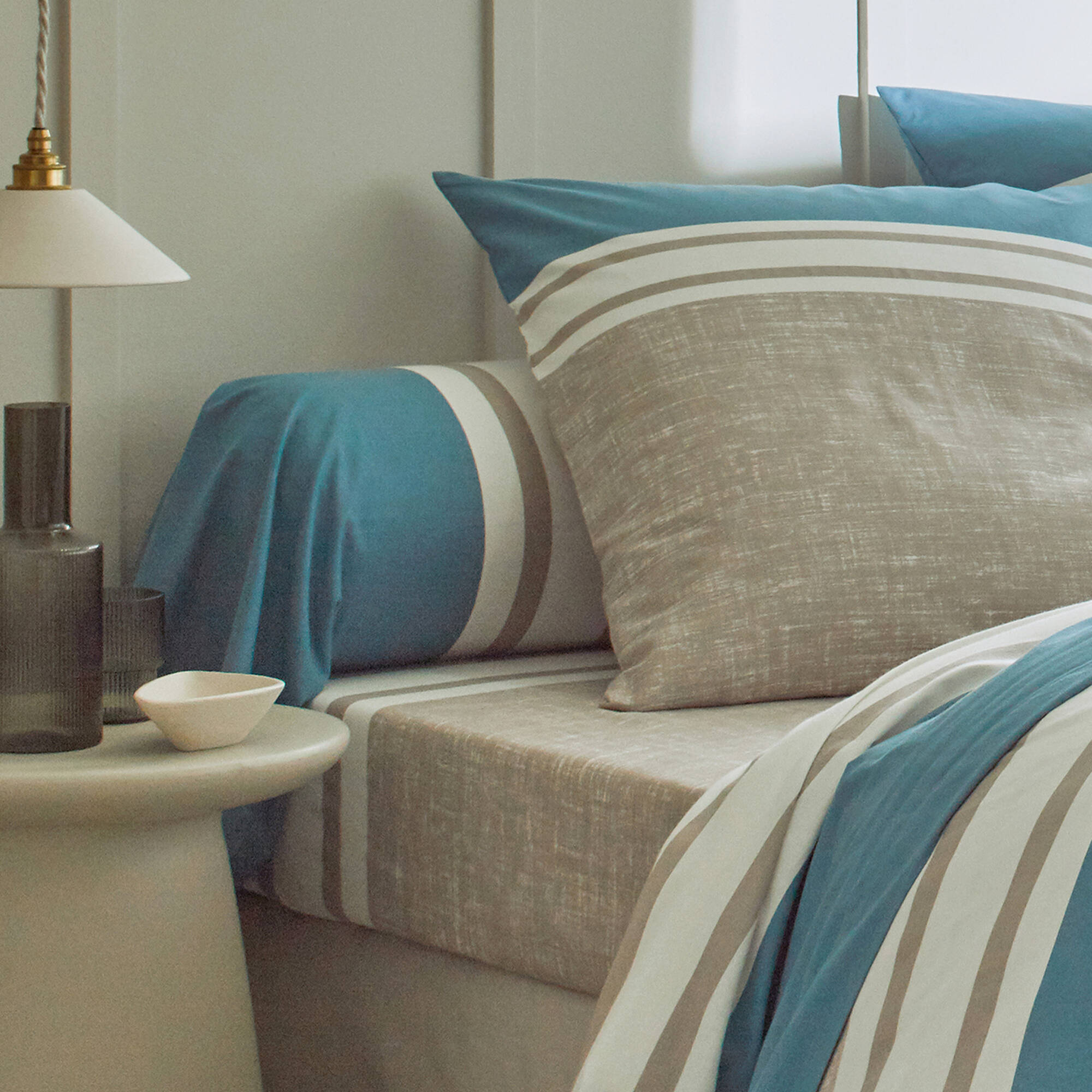 Linge de lit Nathalie coton (bleu grisé / beige)