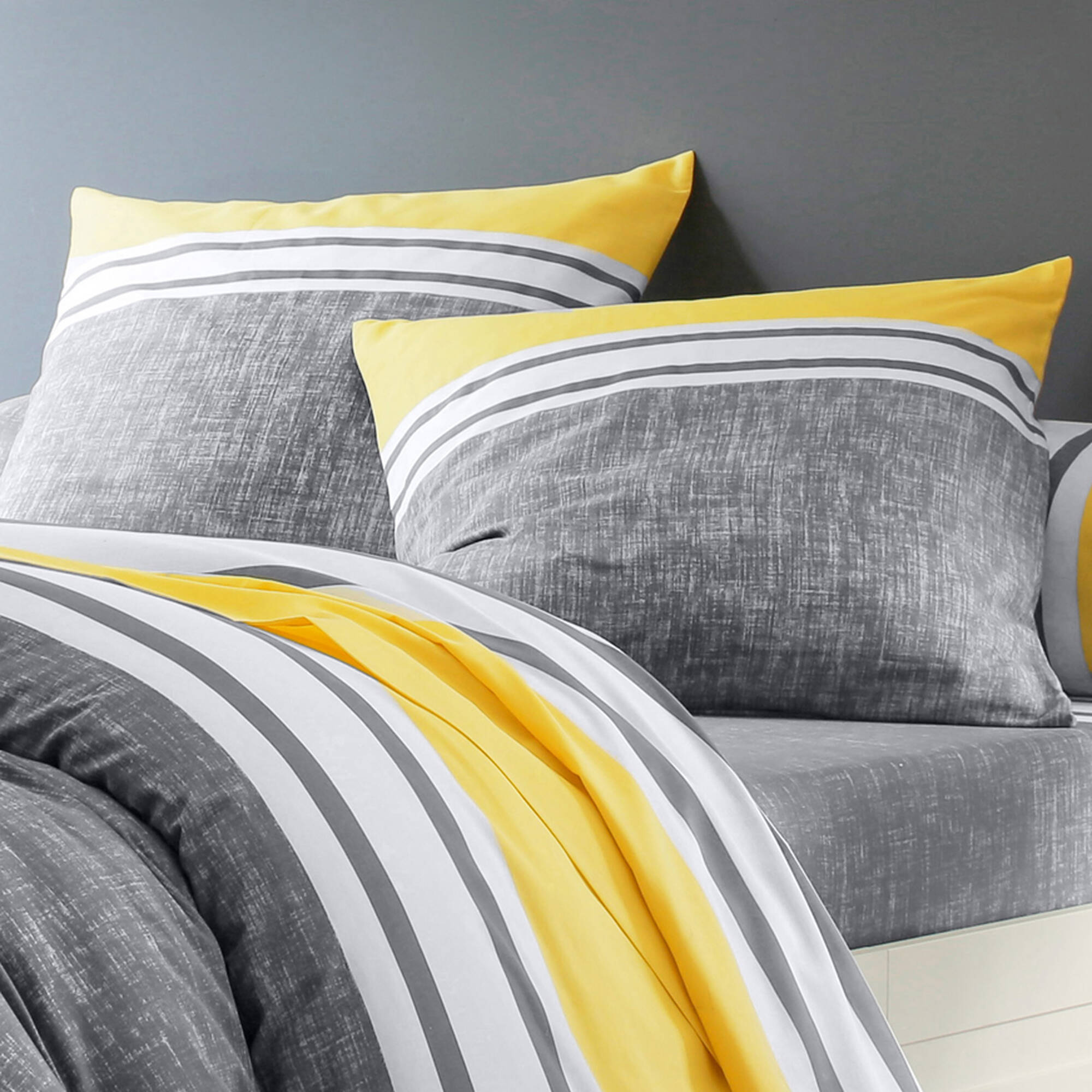 Linge de lit Nathalie coton (gris / jaune)
