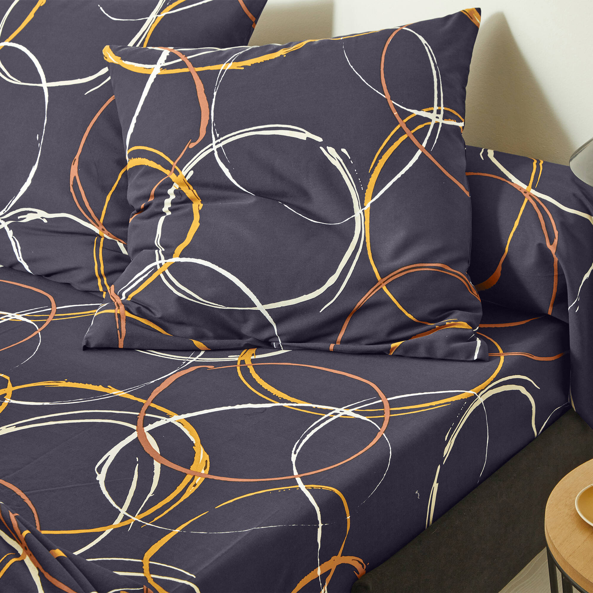 Linge de lit Noémie en polyester-coton imprimé cercles (anthracite)