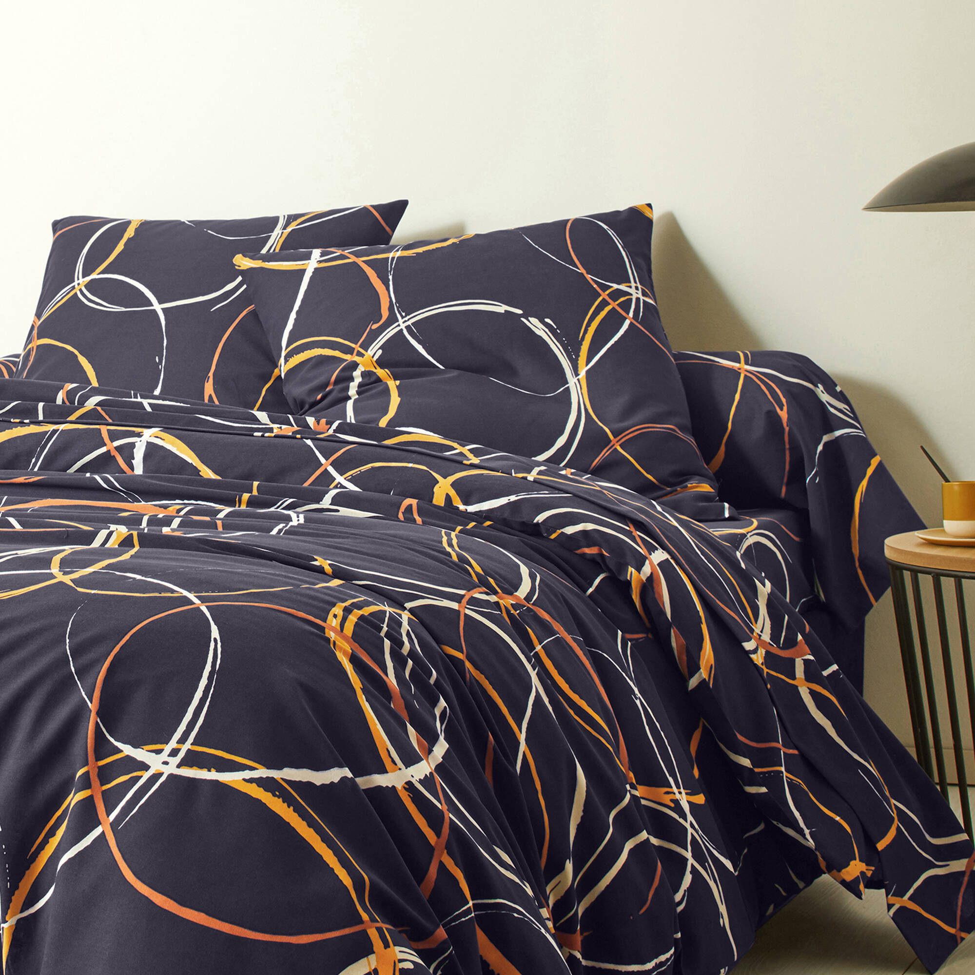 Linge de lit Noémie en polyester-coton imprimé cercles