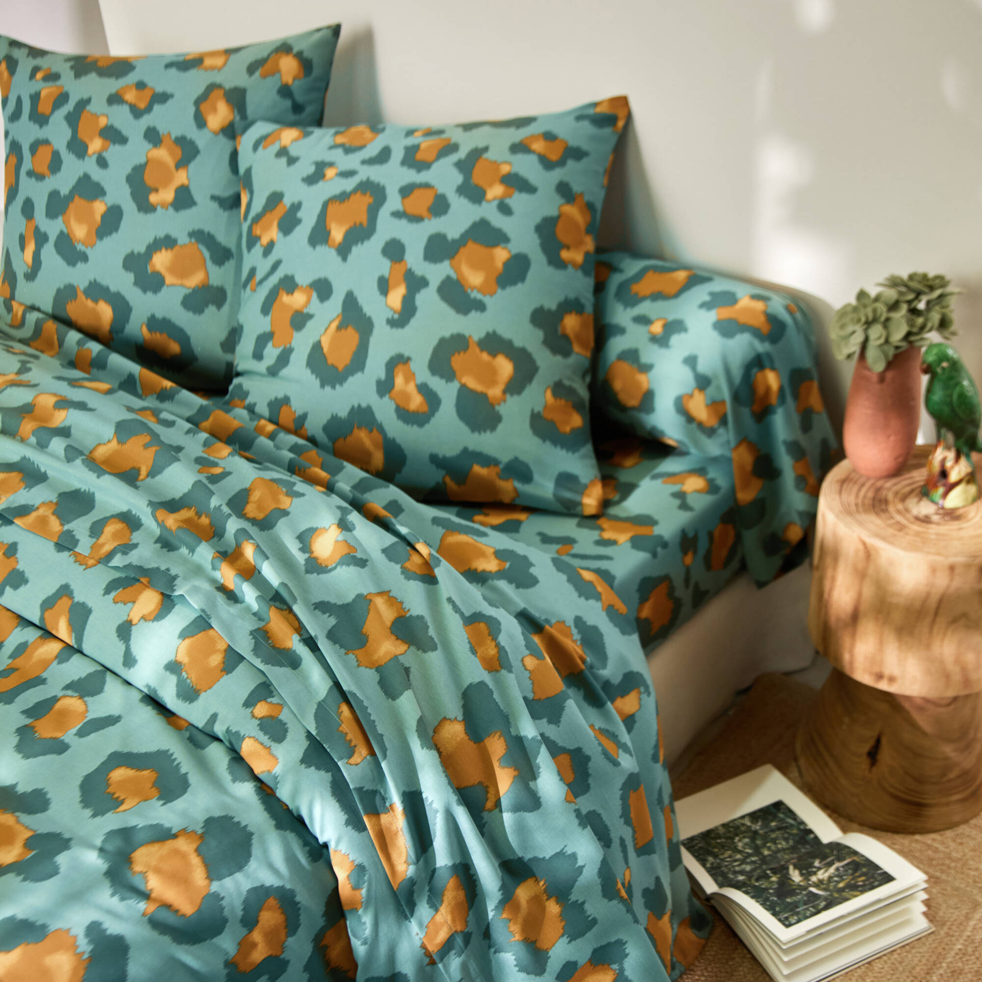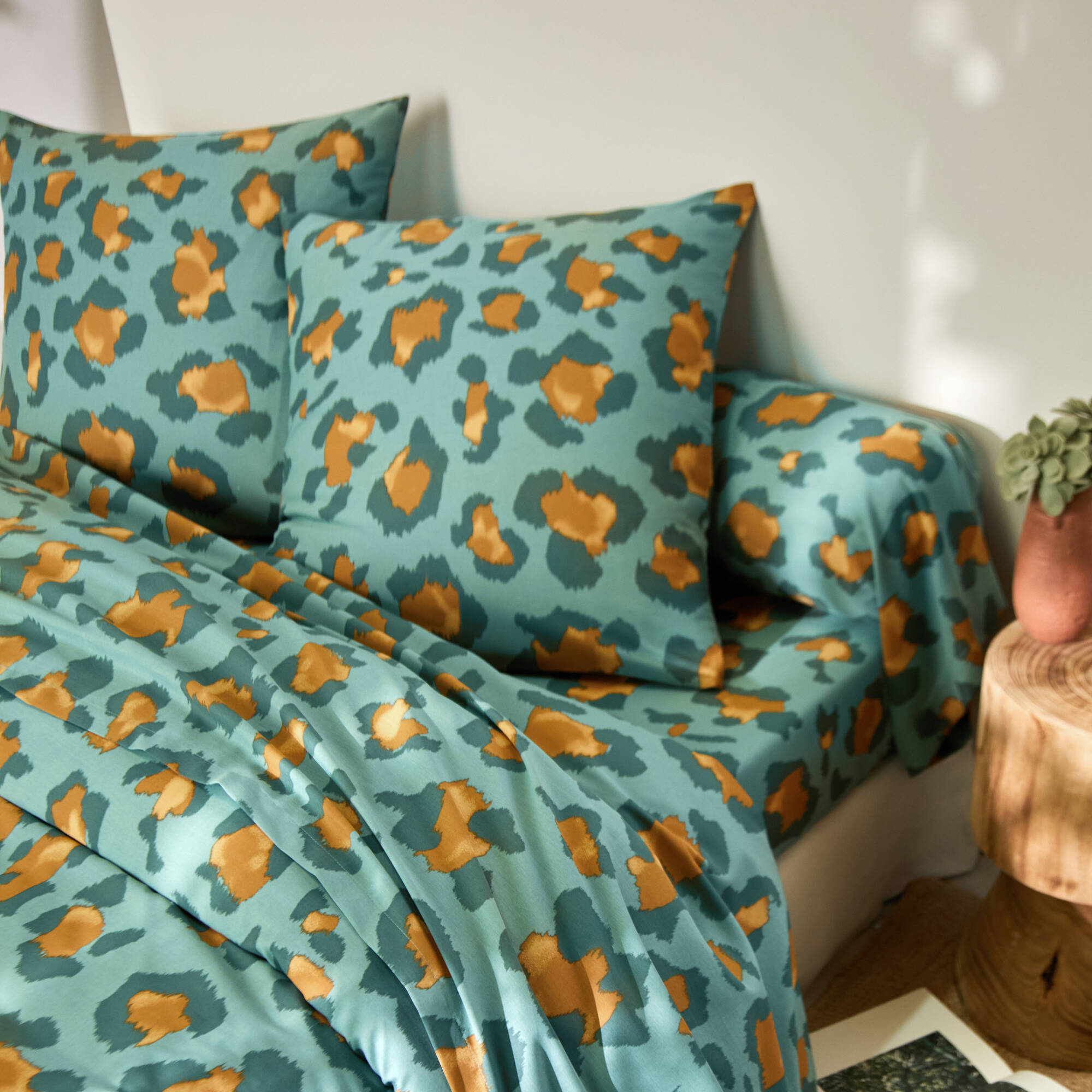 Linge de lit Pedro en polycoton imprimé peau de bête (vert)