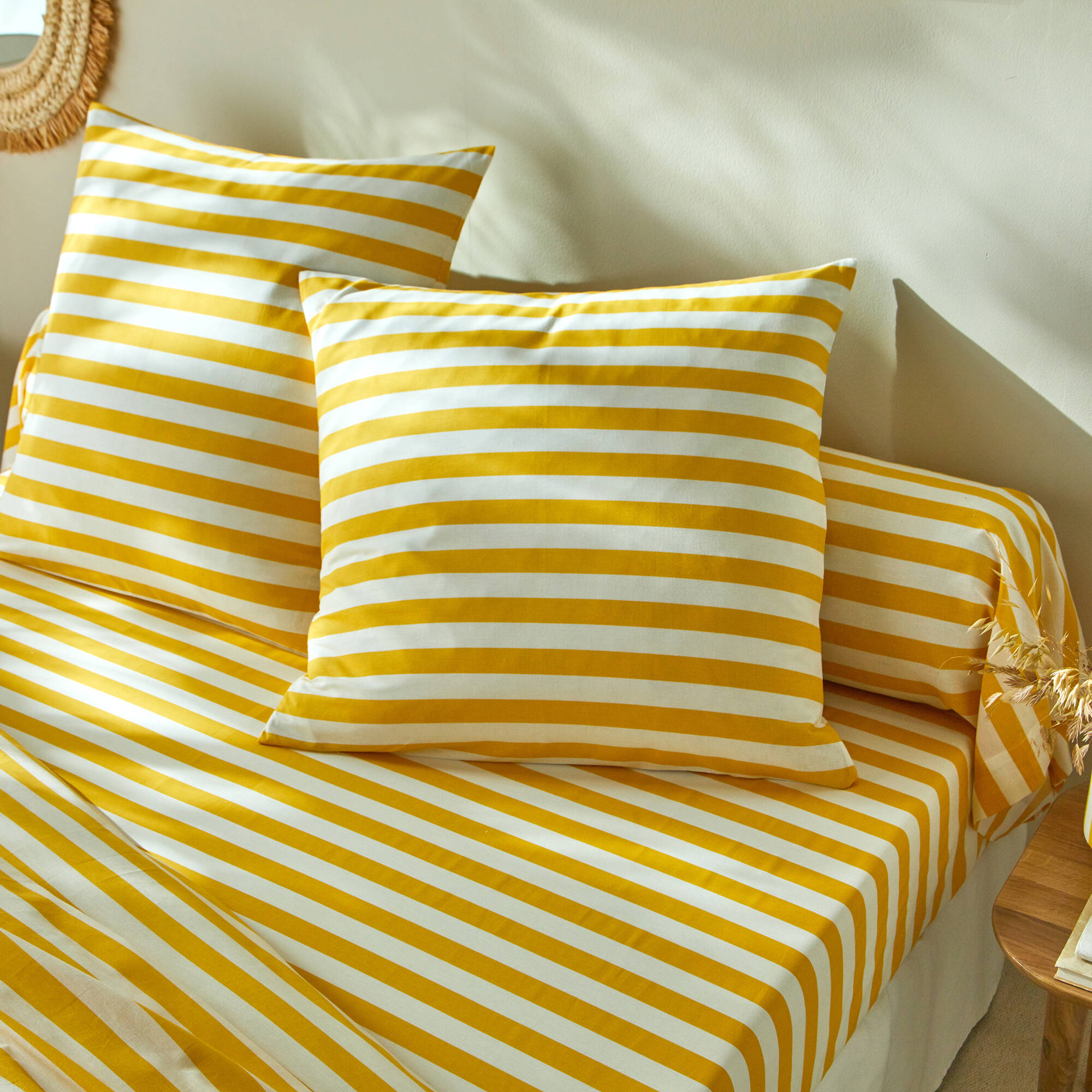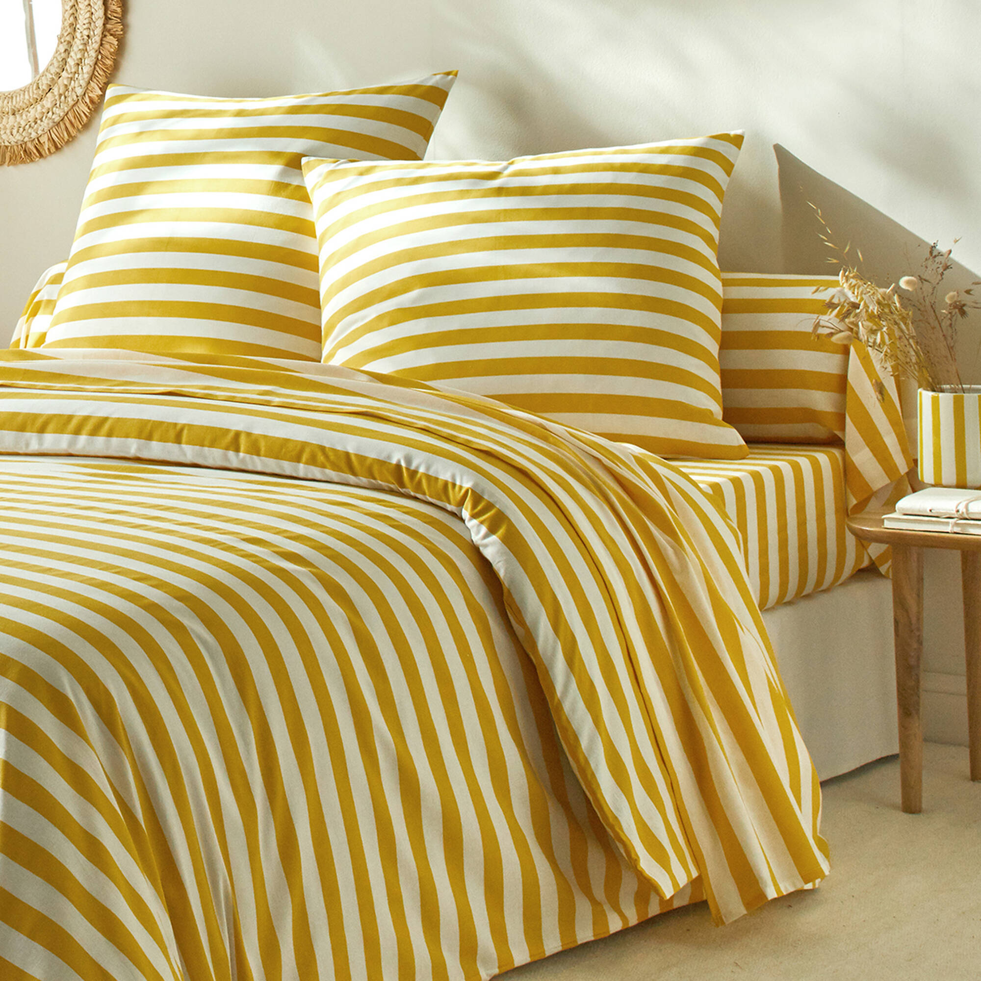 Linge de lit Romy rayé - en coton (jaune)