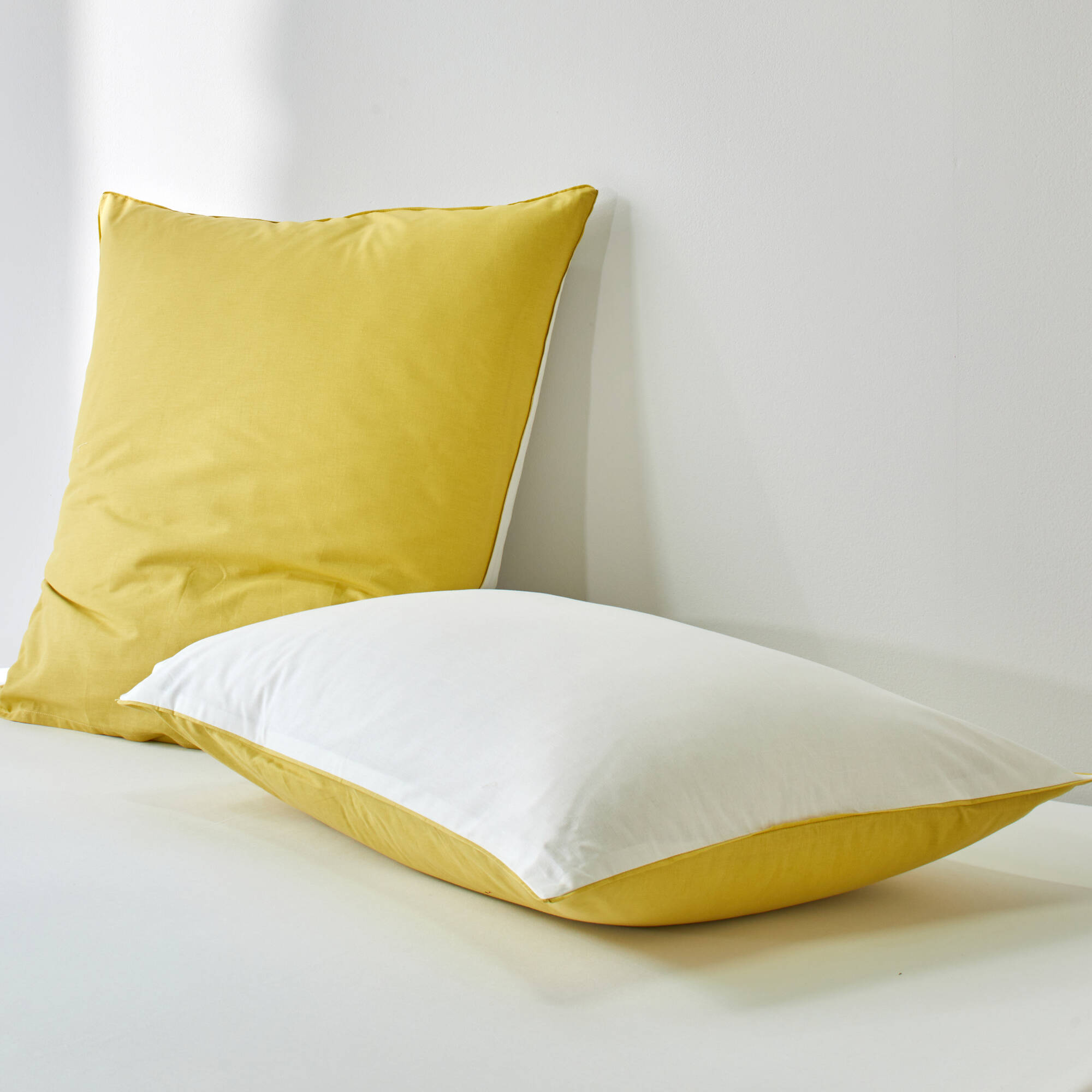 Linge de lit uni bicolore coton (blanc / jaune verveine)