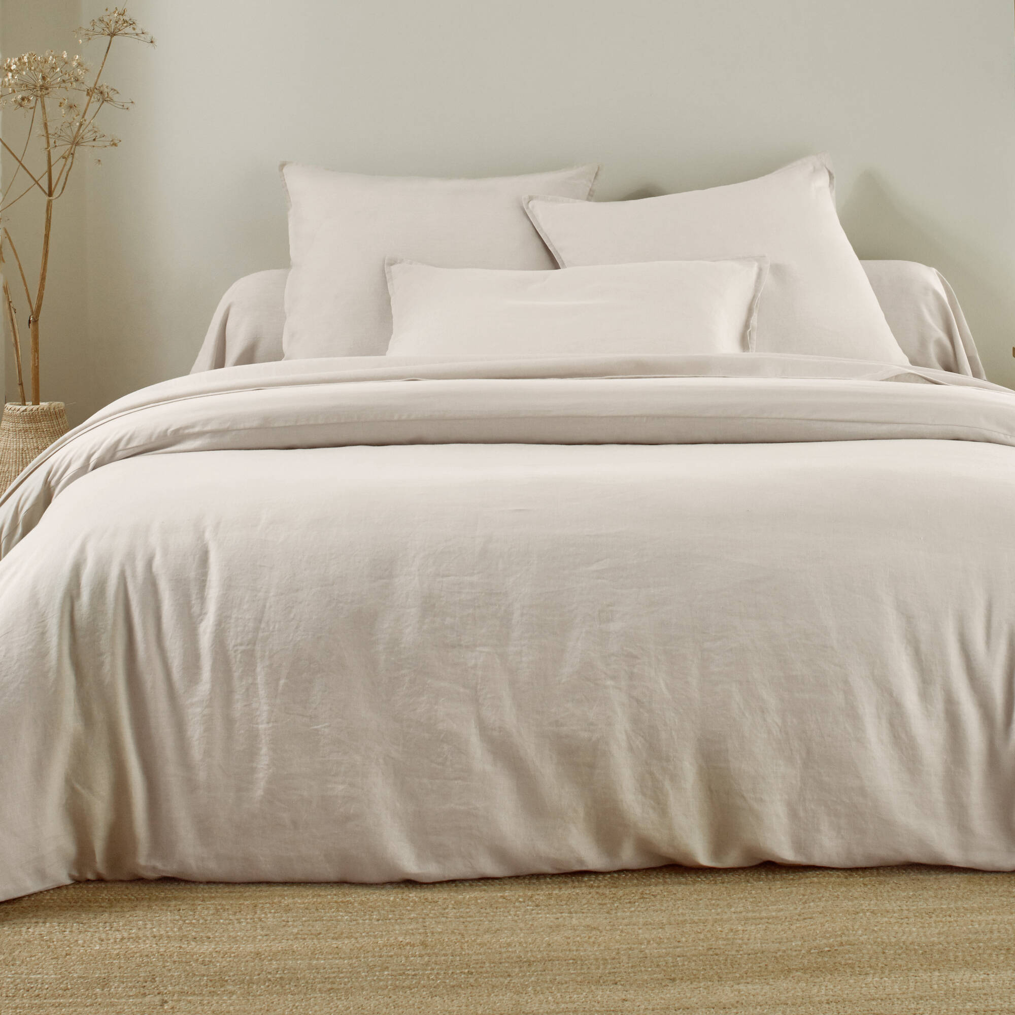 Linge de lit uni biface lin lavé / coton lavé  (sable)