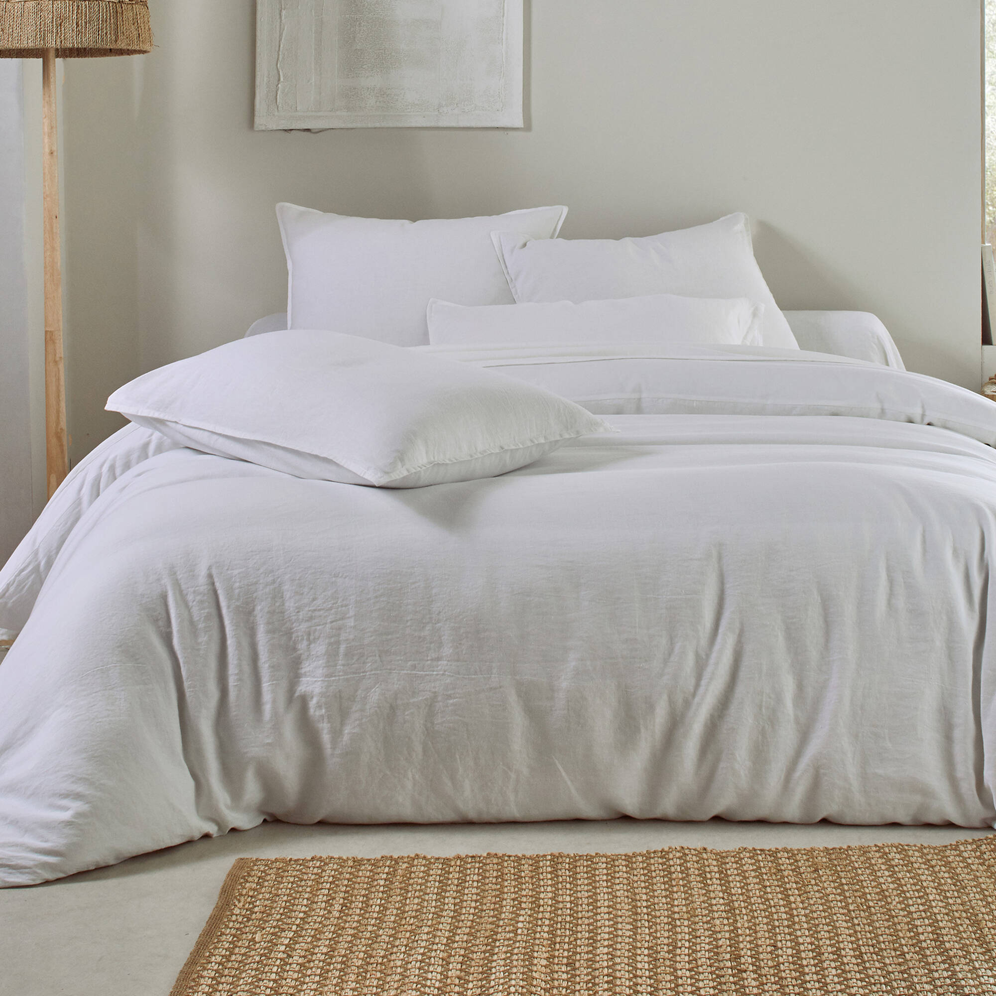 Linge de lit uni biface lin lavé / coton lavé  (blanc)