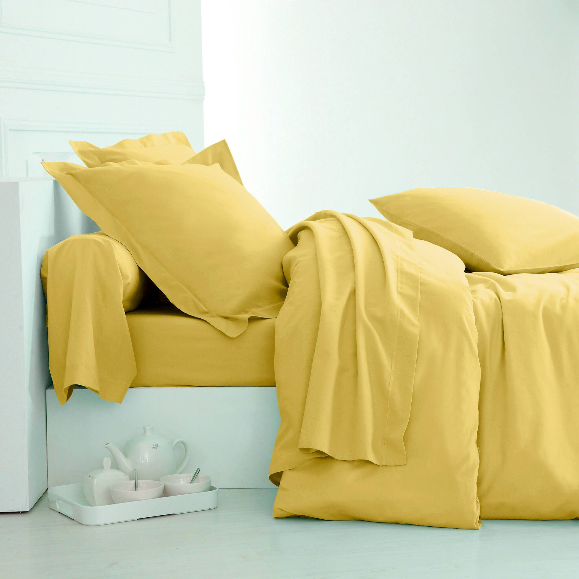 Linge de lit uni coton (jaune verveine)