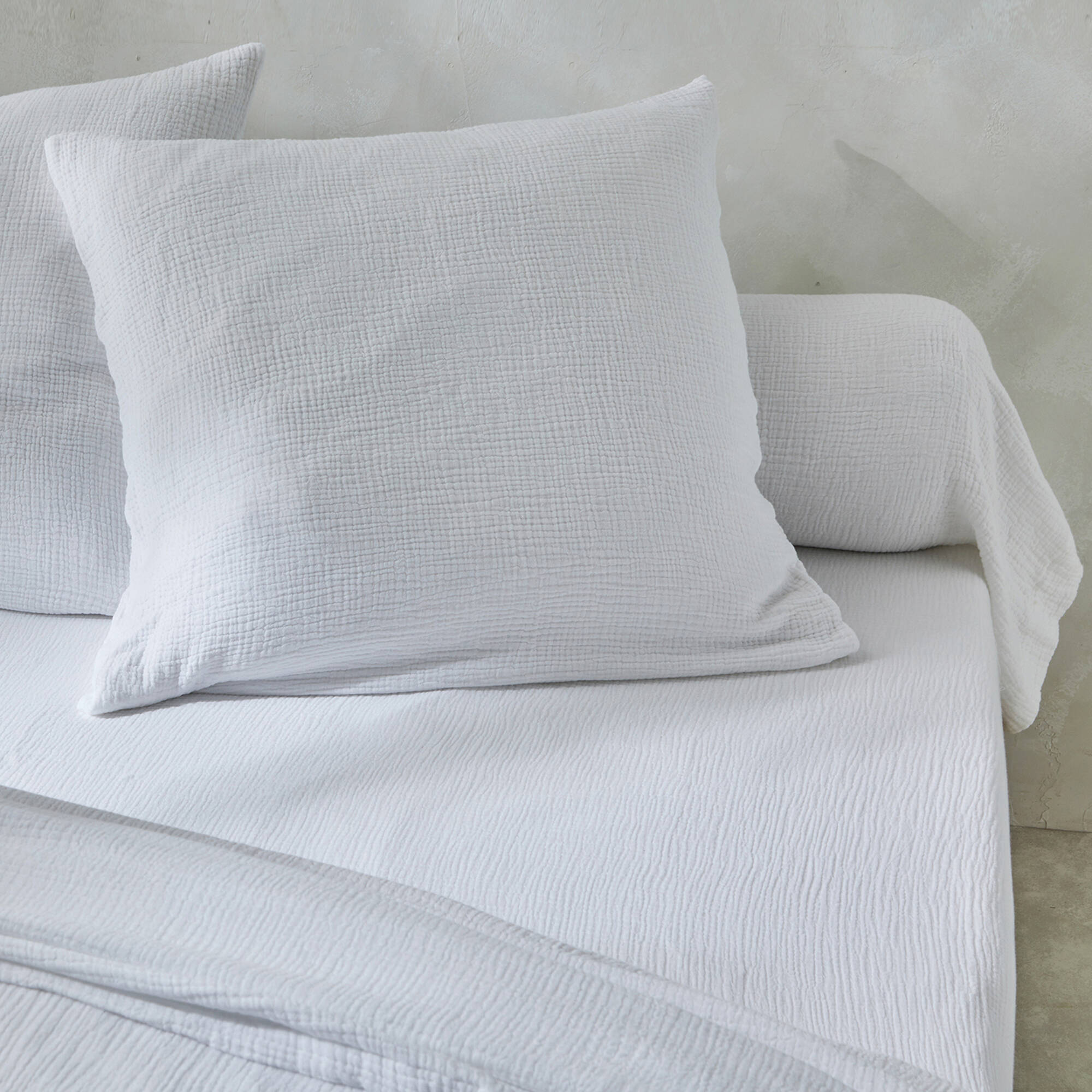 Linge de lit uni en triple gaze de coton (blanc)
