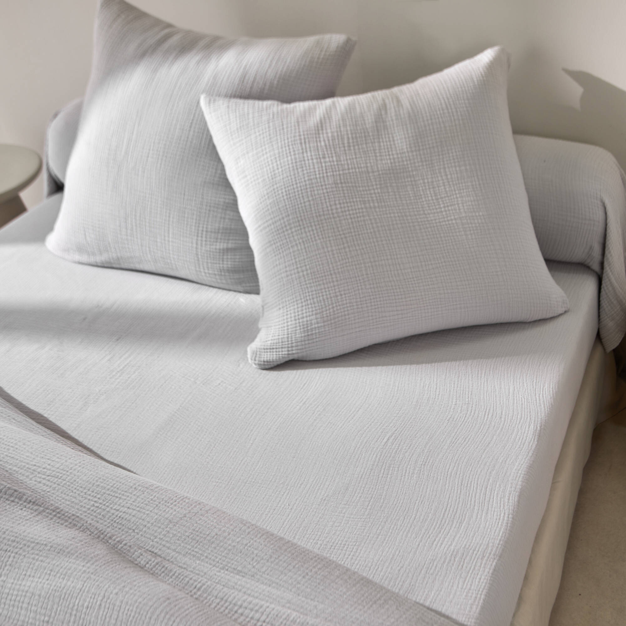 Linge de lit uni en triple gaze de coton (gris perle)