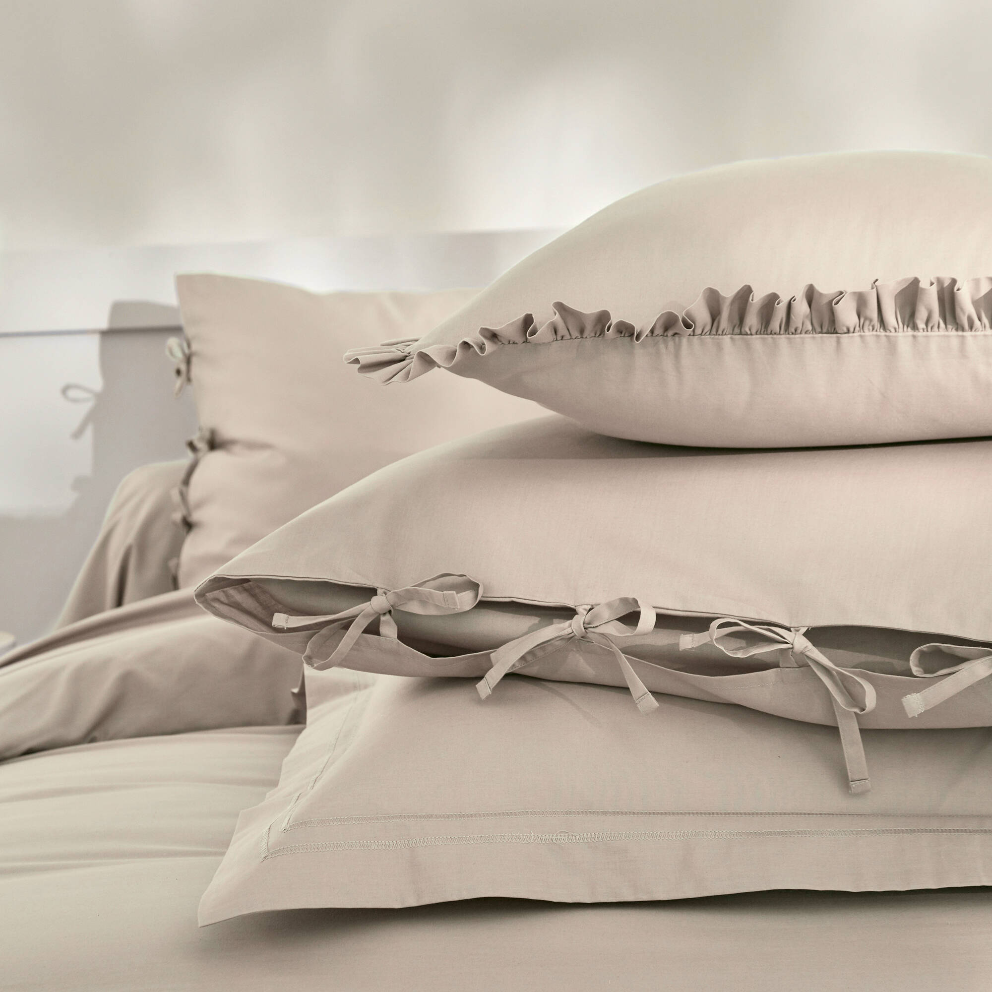 Linge de lit uni percale (sable)
