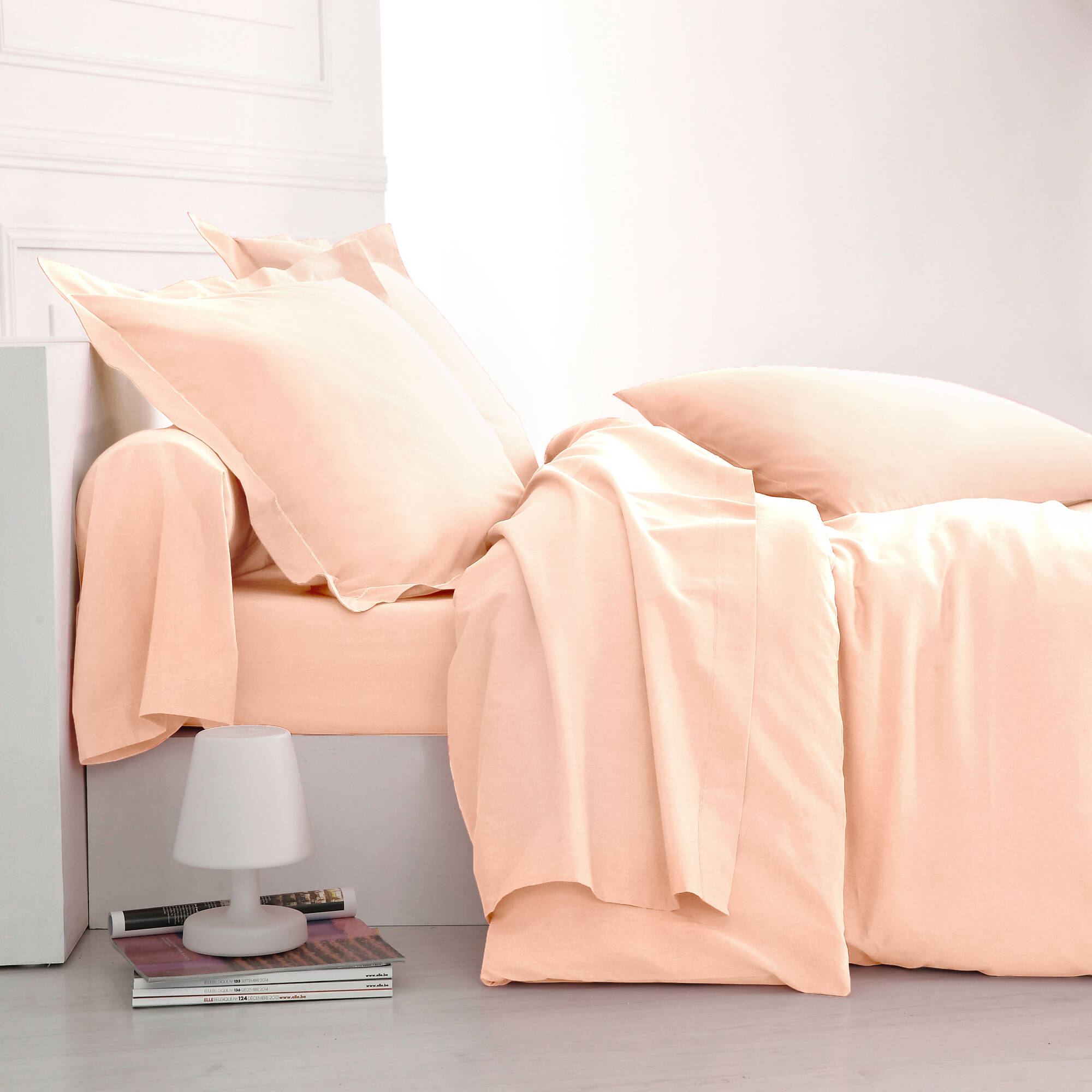 Linge de lit uni polyester-coton Colombine (rose poudré)
