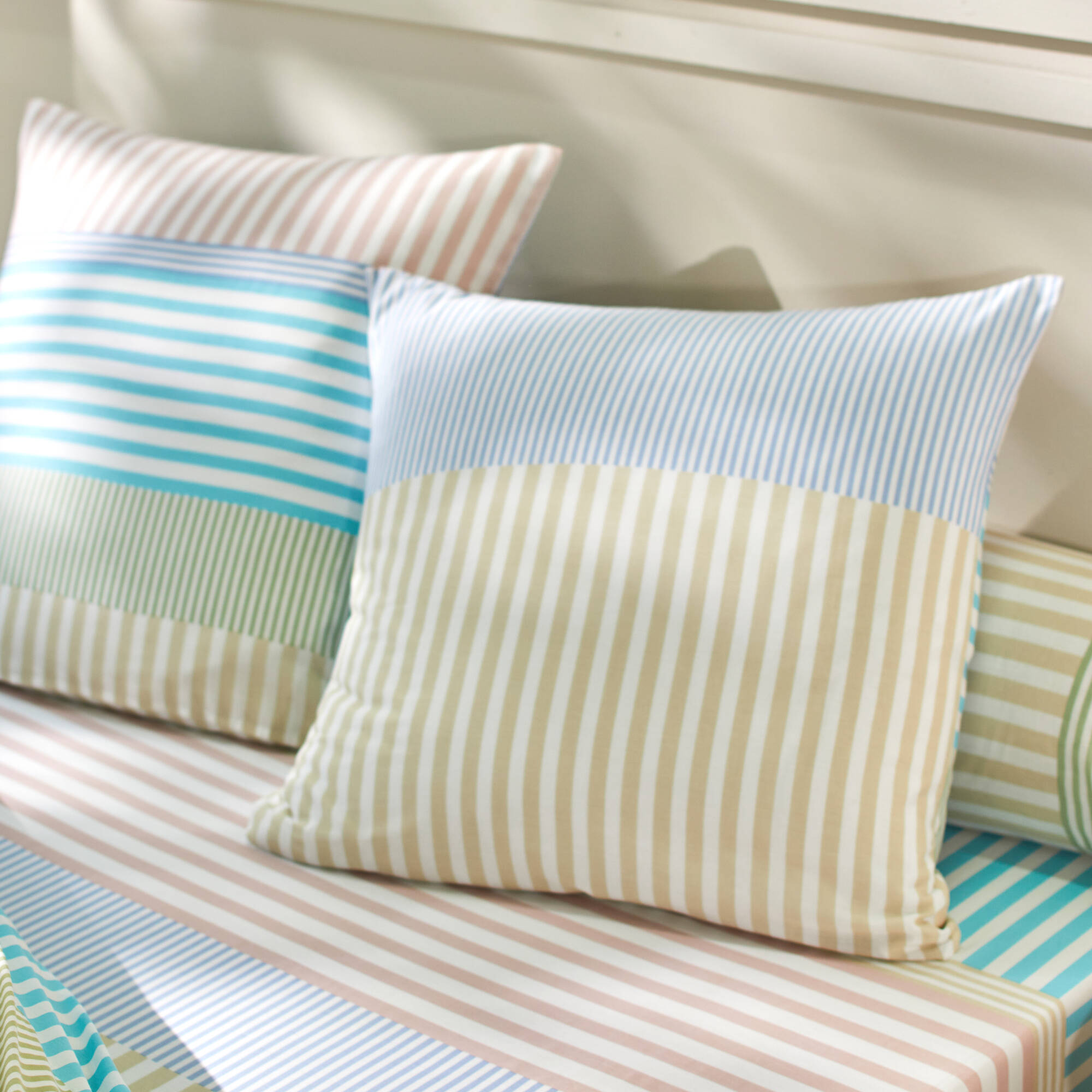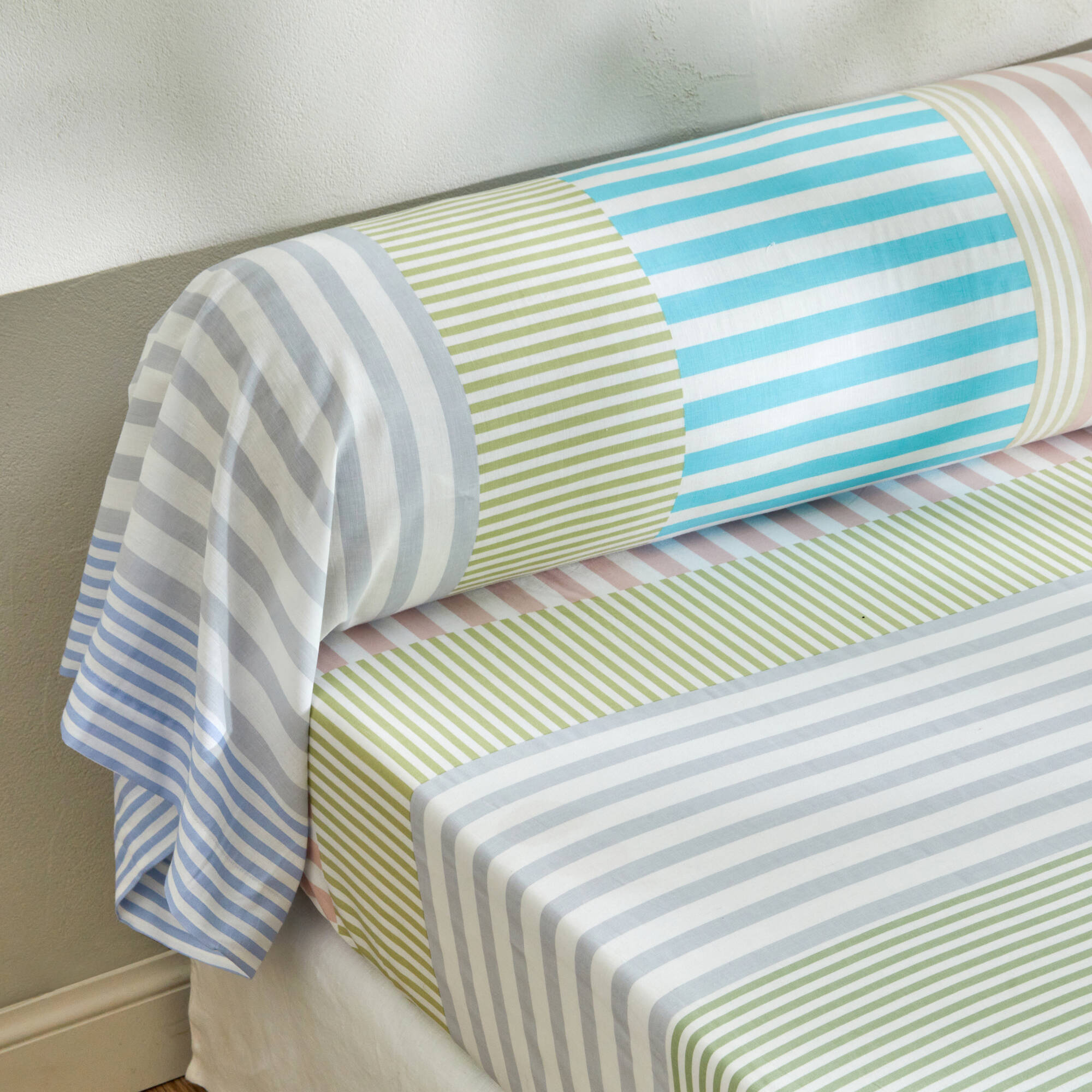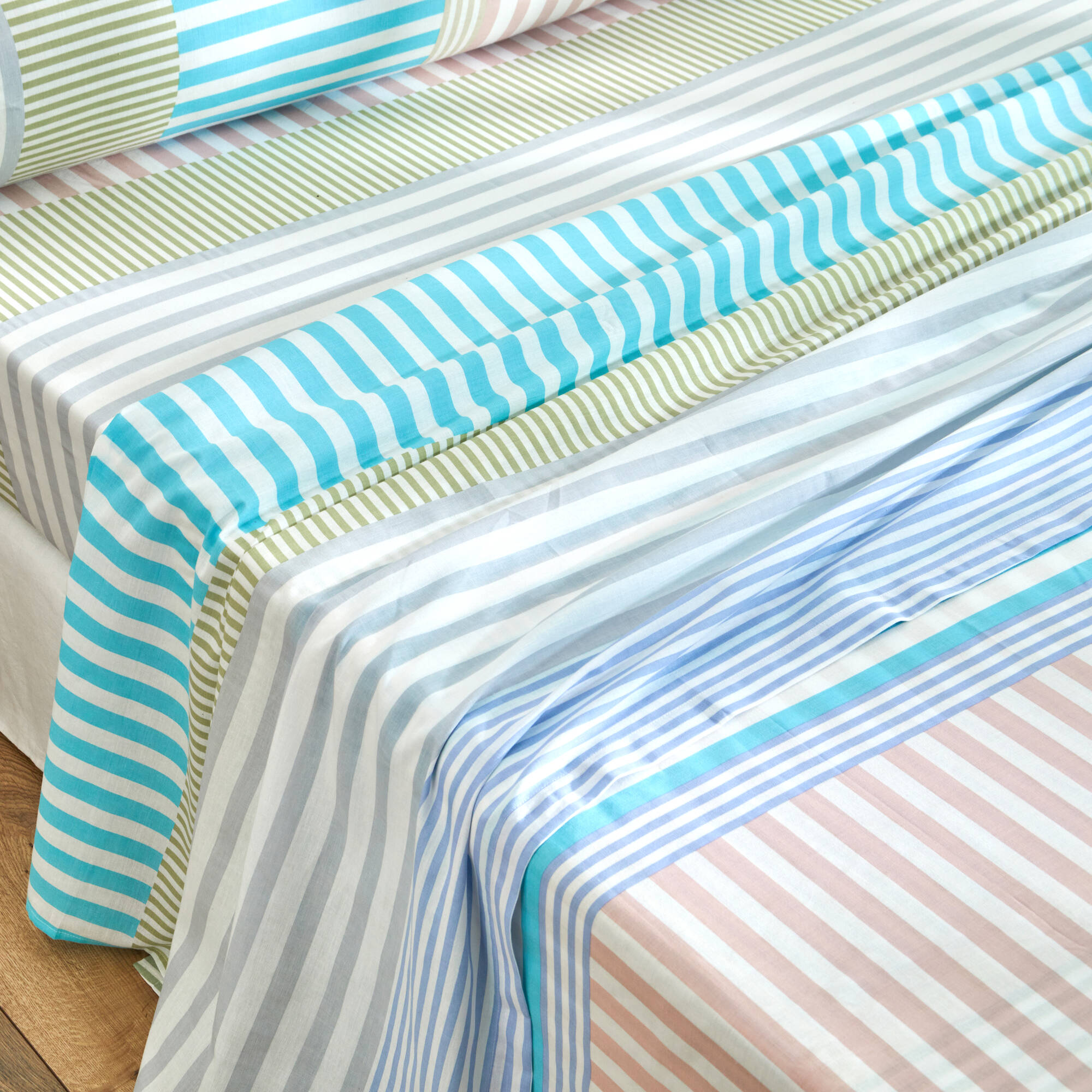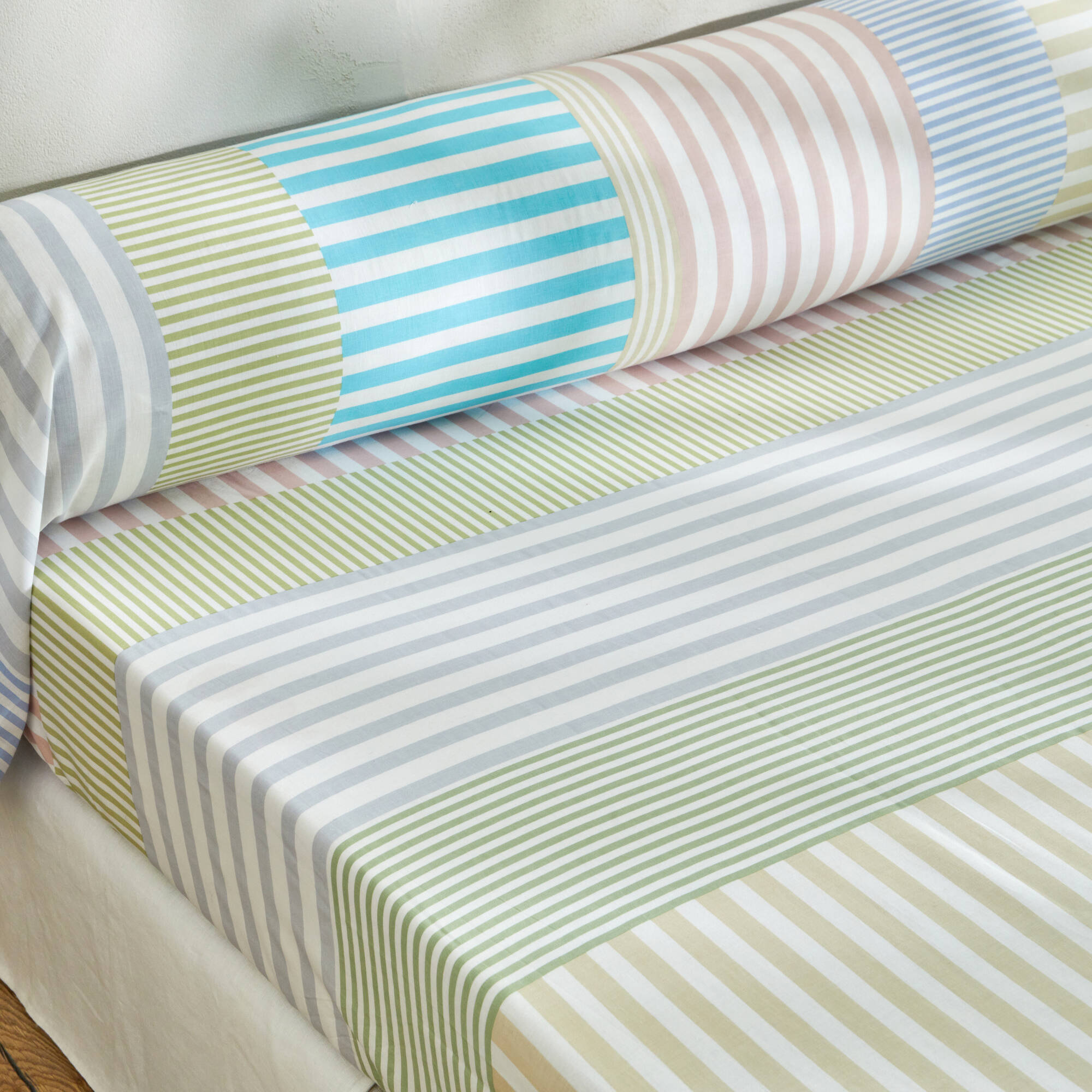 Bedlinnen Ada in katoen met strepenprint (amandel groen / wit)