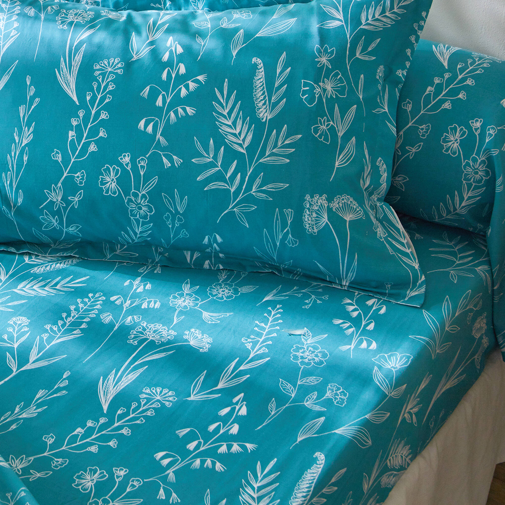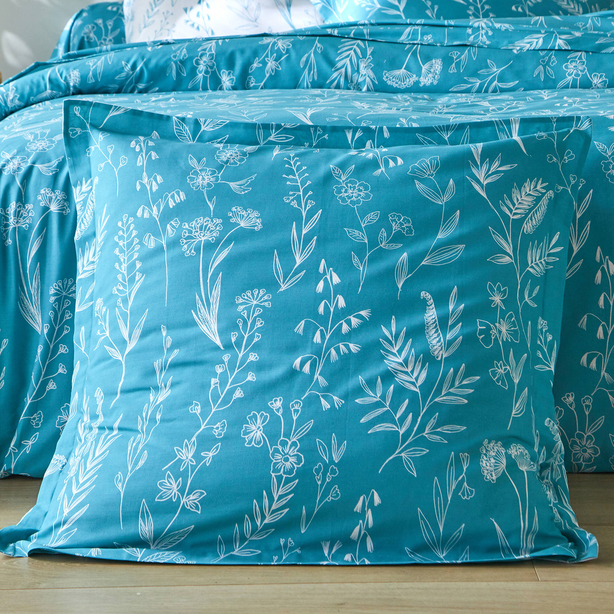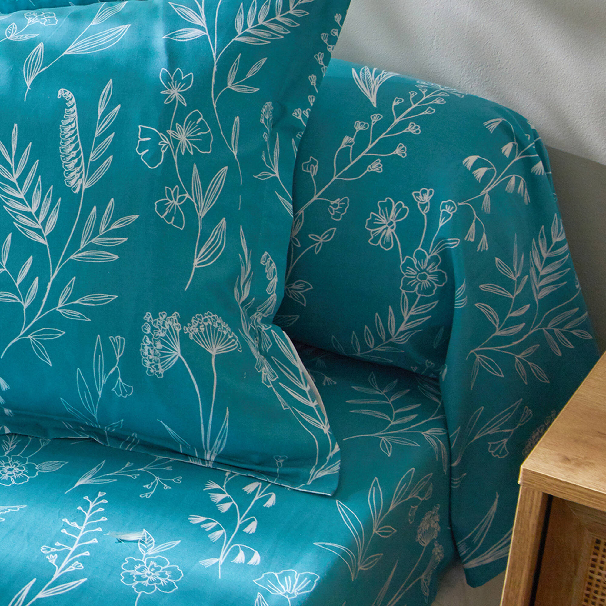 Bedlinnen Alessia in katoen met bloemenprint (blauw)