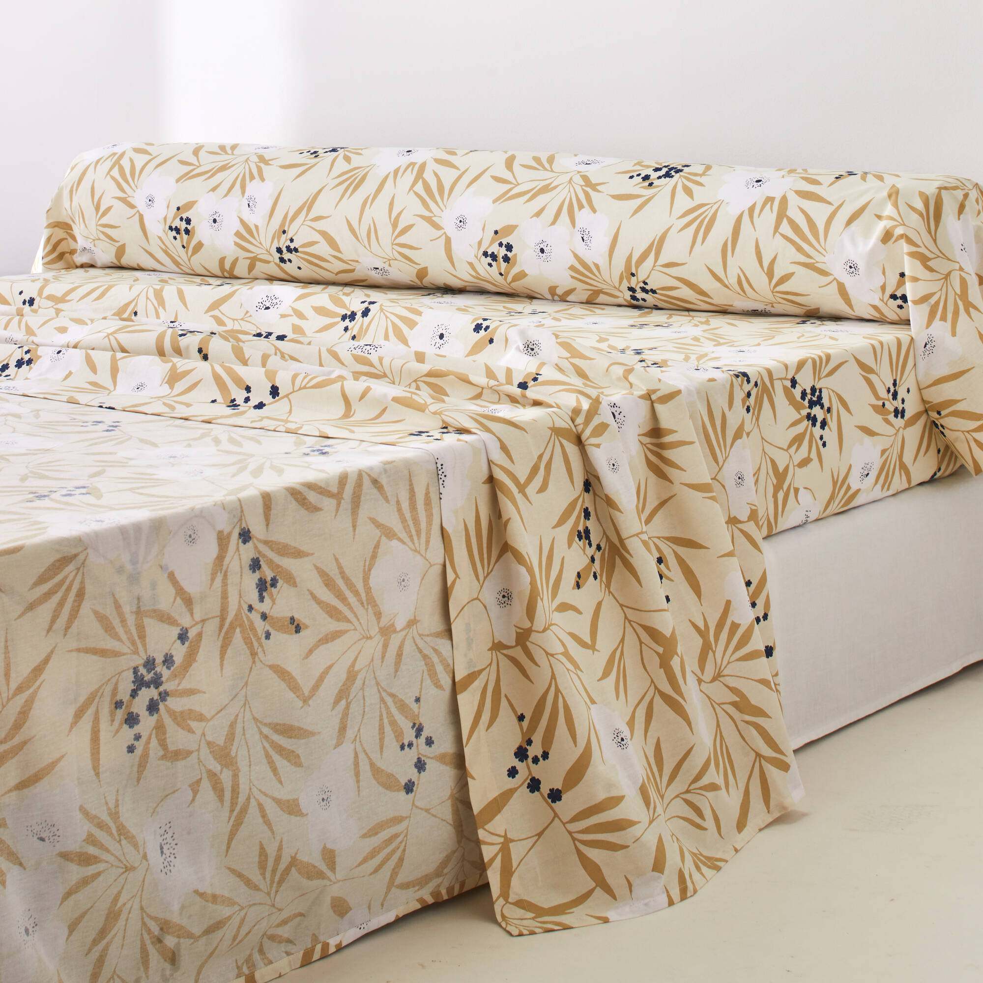 Bedlinnen Anna, in bedrukt katoen (beige)