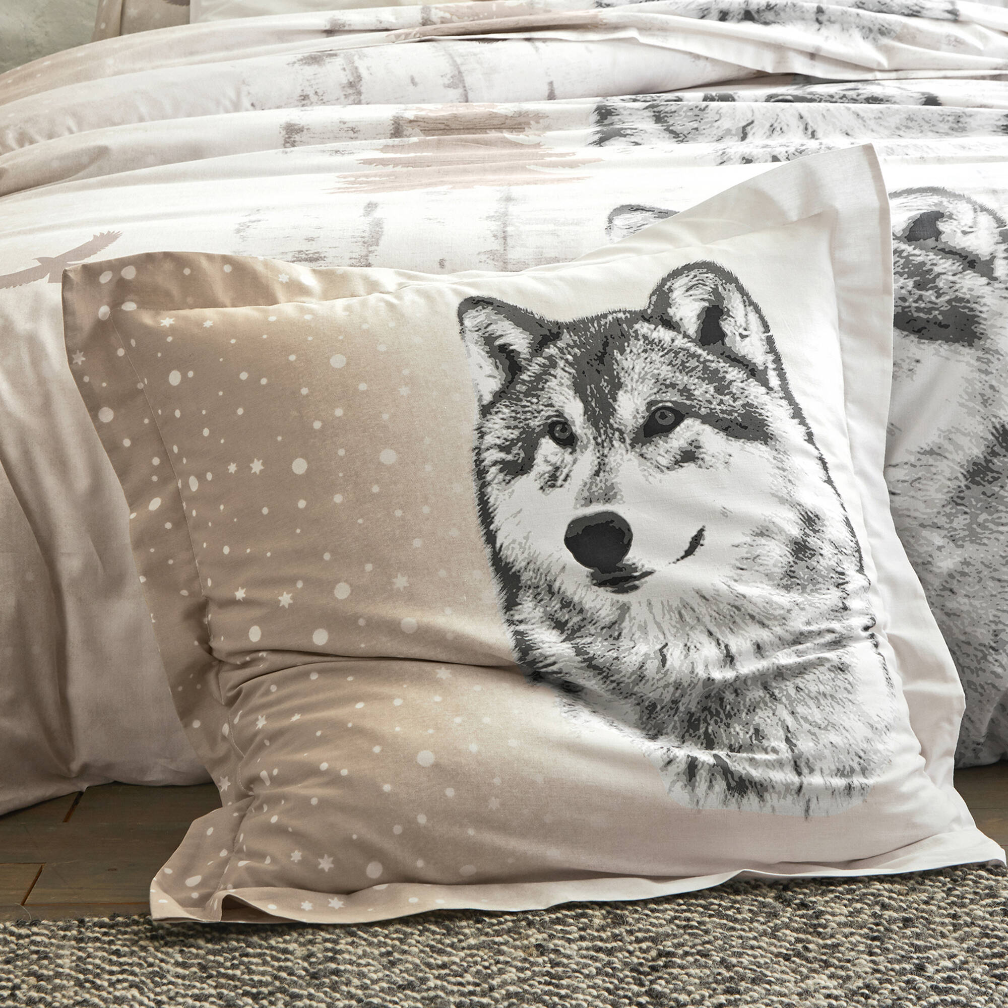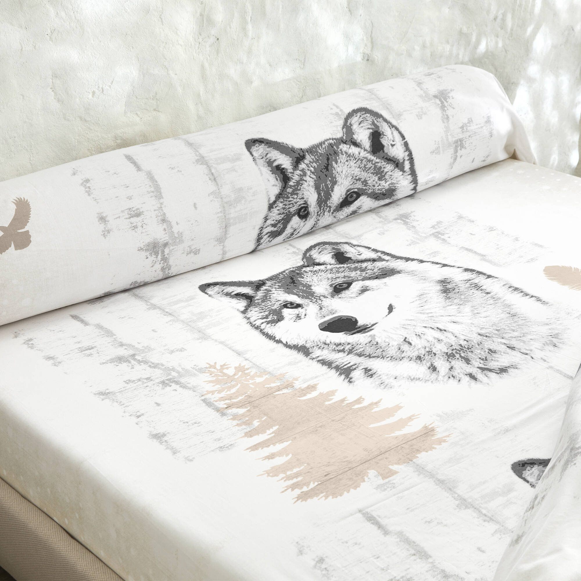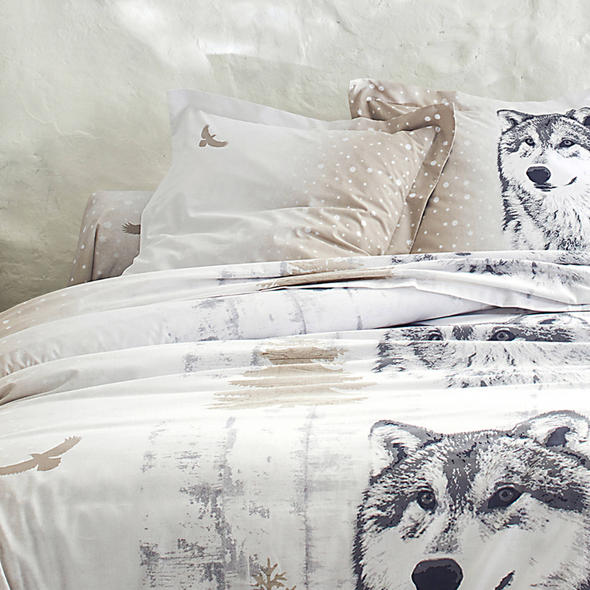Bedlinnen Artic in katoen met hond-wolf print (taupe)
