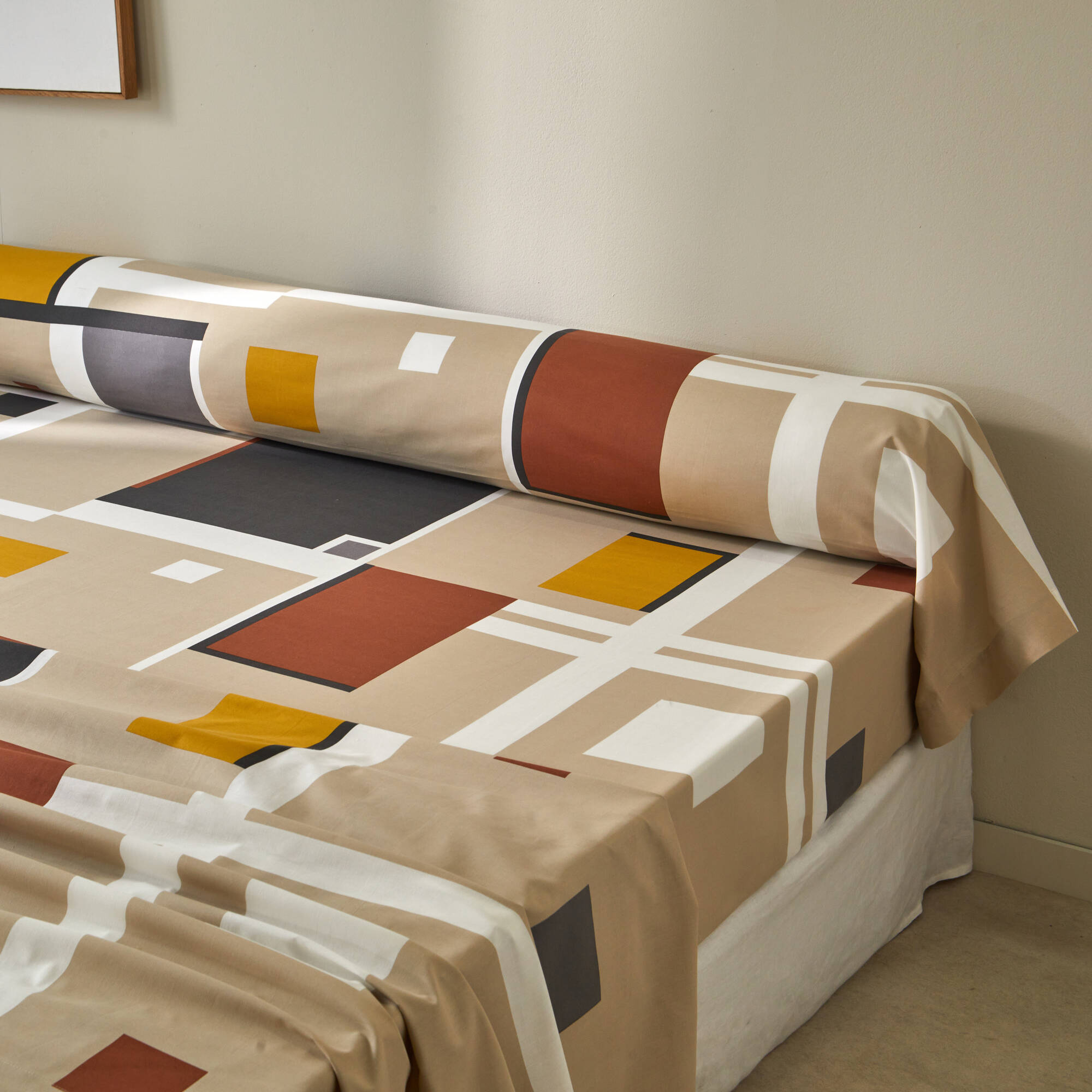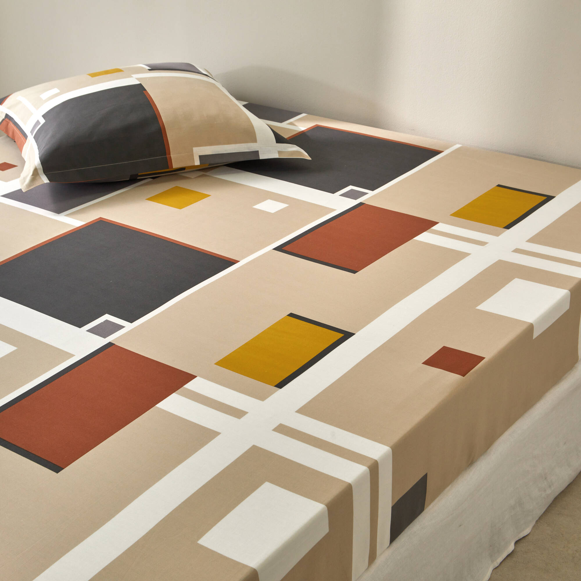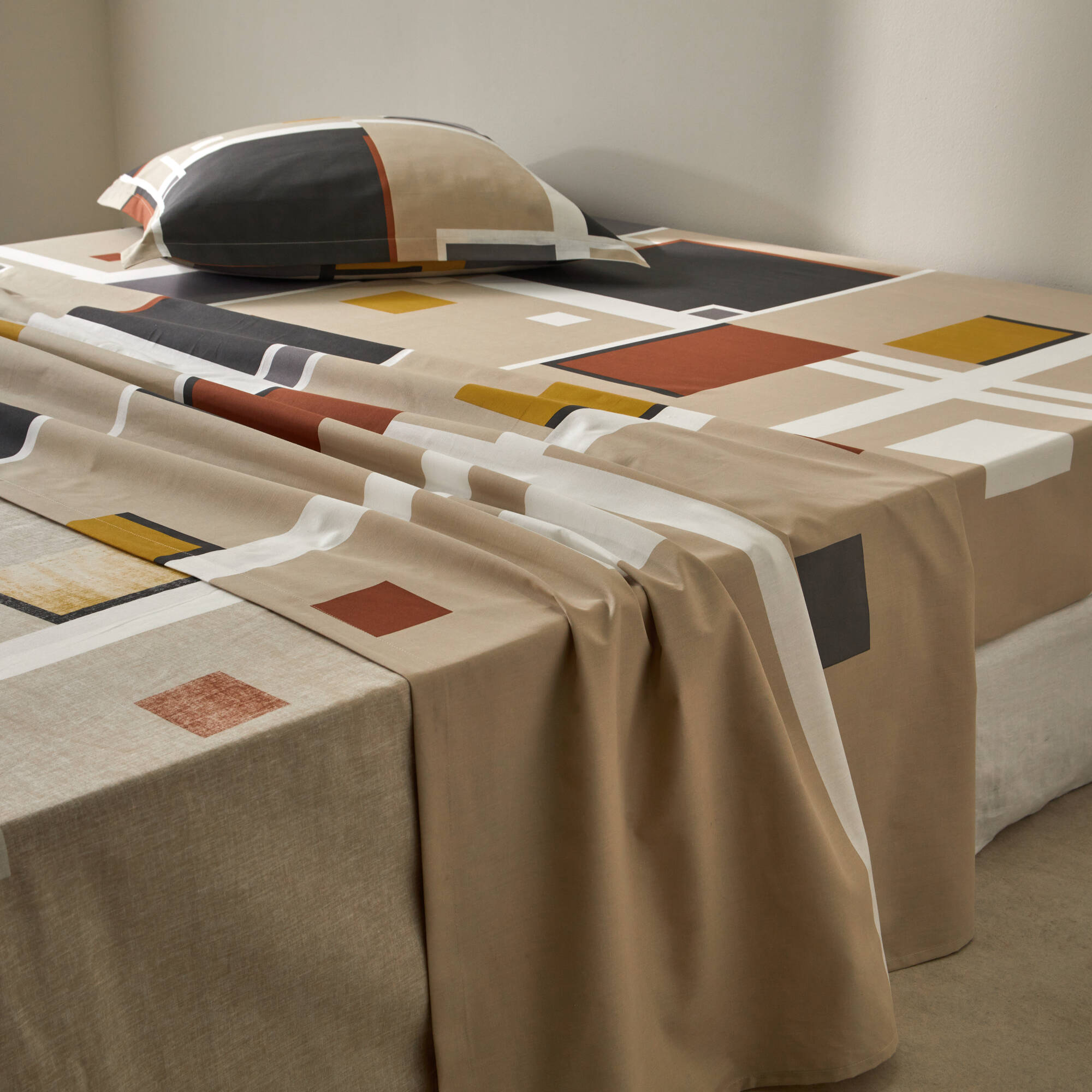 Bedlinnen Chromie in bedrukt katoen (grijsbeige)