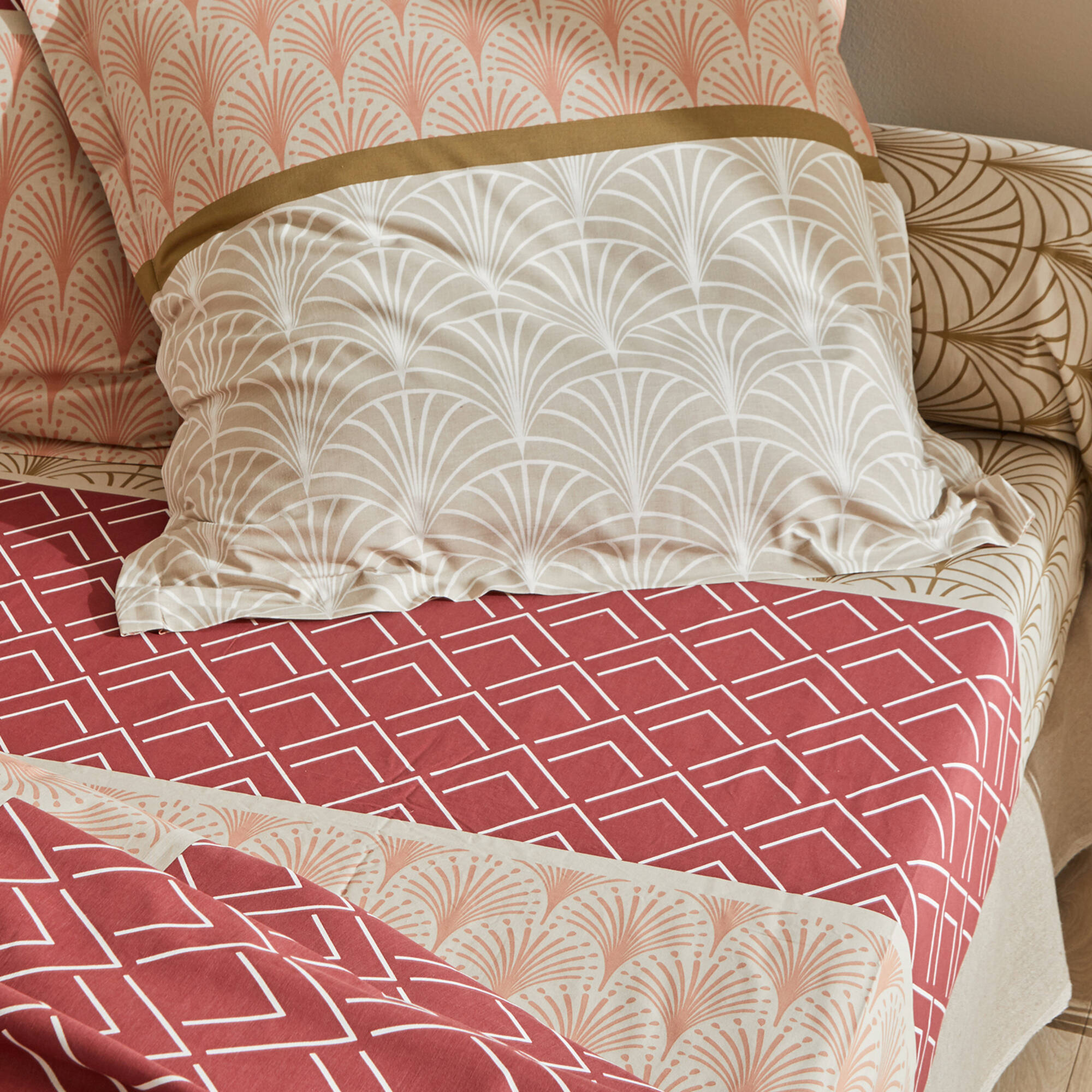 Bedlinnen Eddy in katoen met grafische motieven (zandkleur)