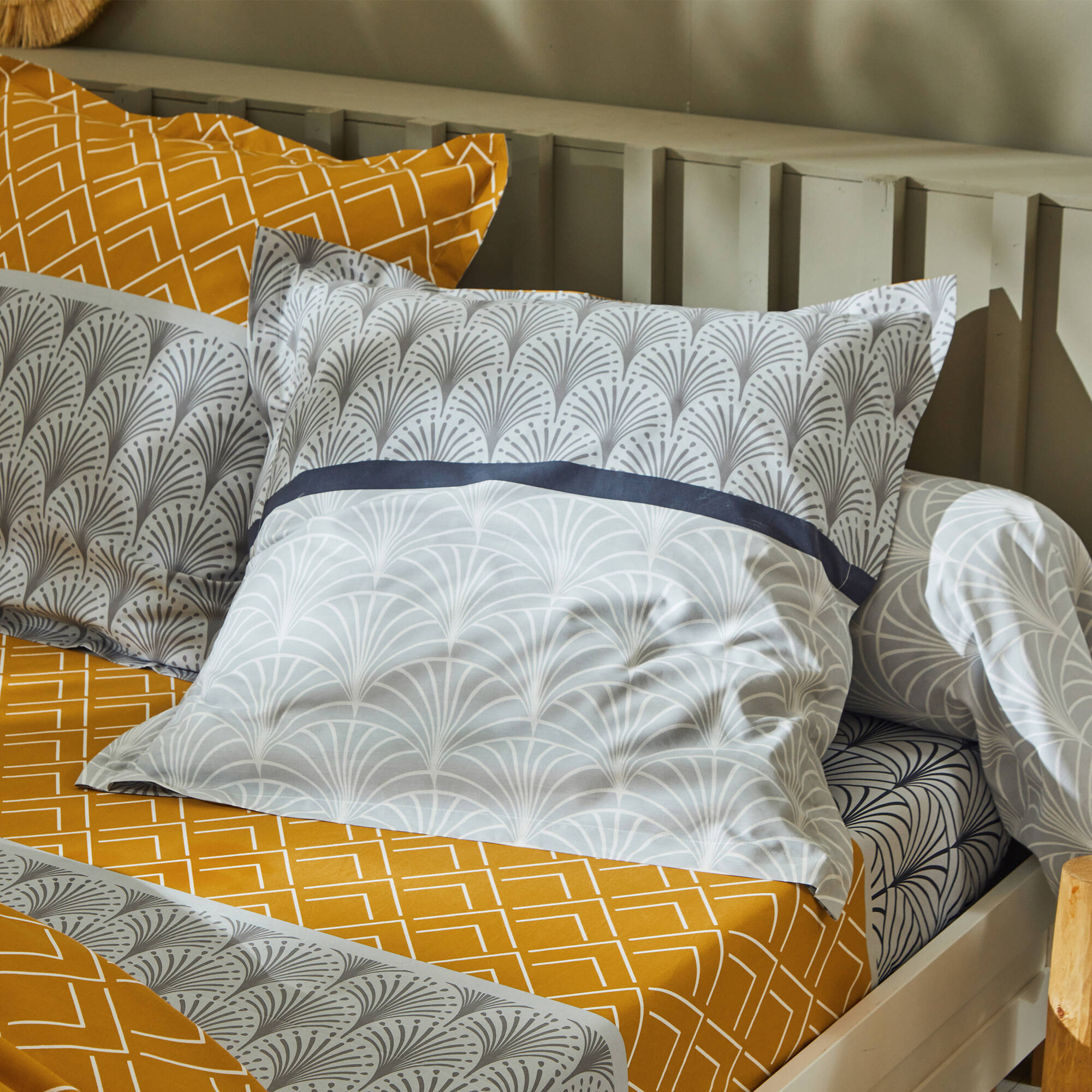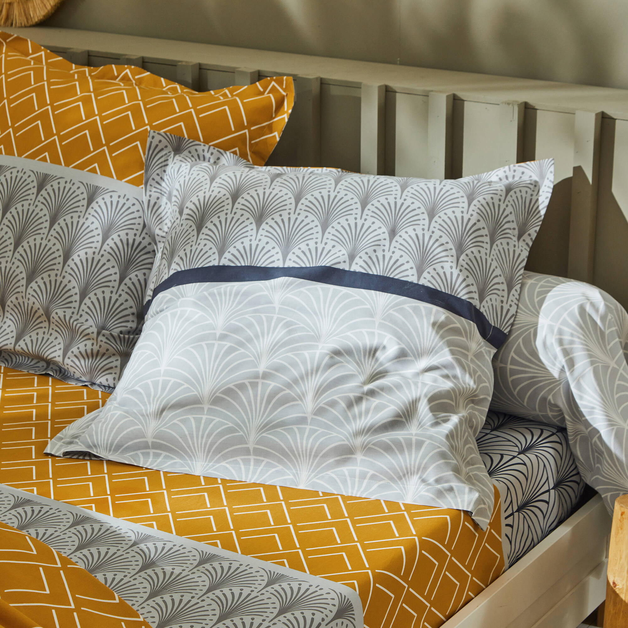 Bedlinnen Eddy in katoen met grafische motieven (karamel)