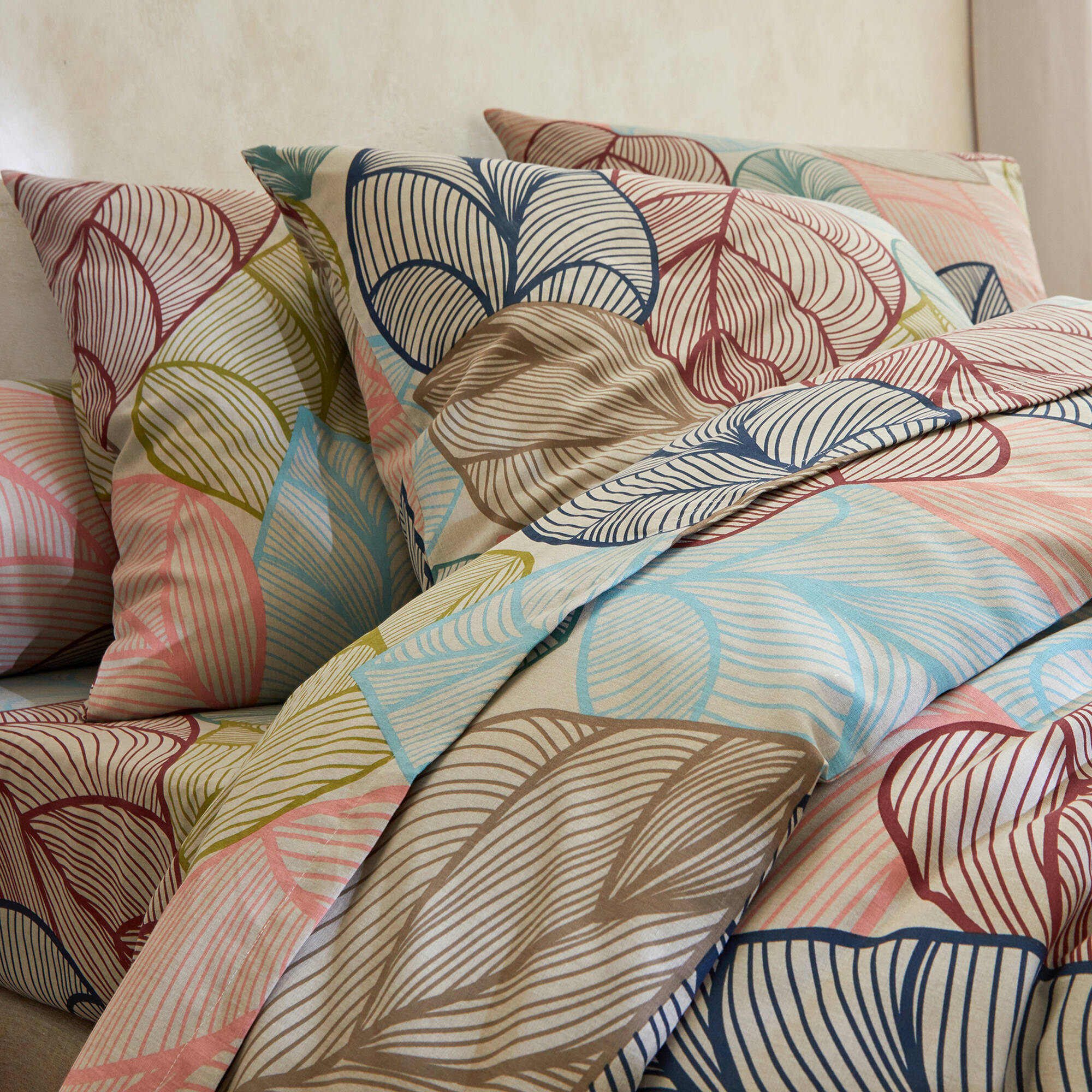 Bedlinnen Elsa in polykatoen met bladerenmotief (beige)