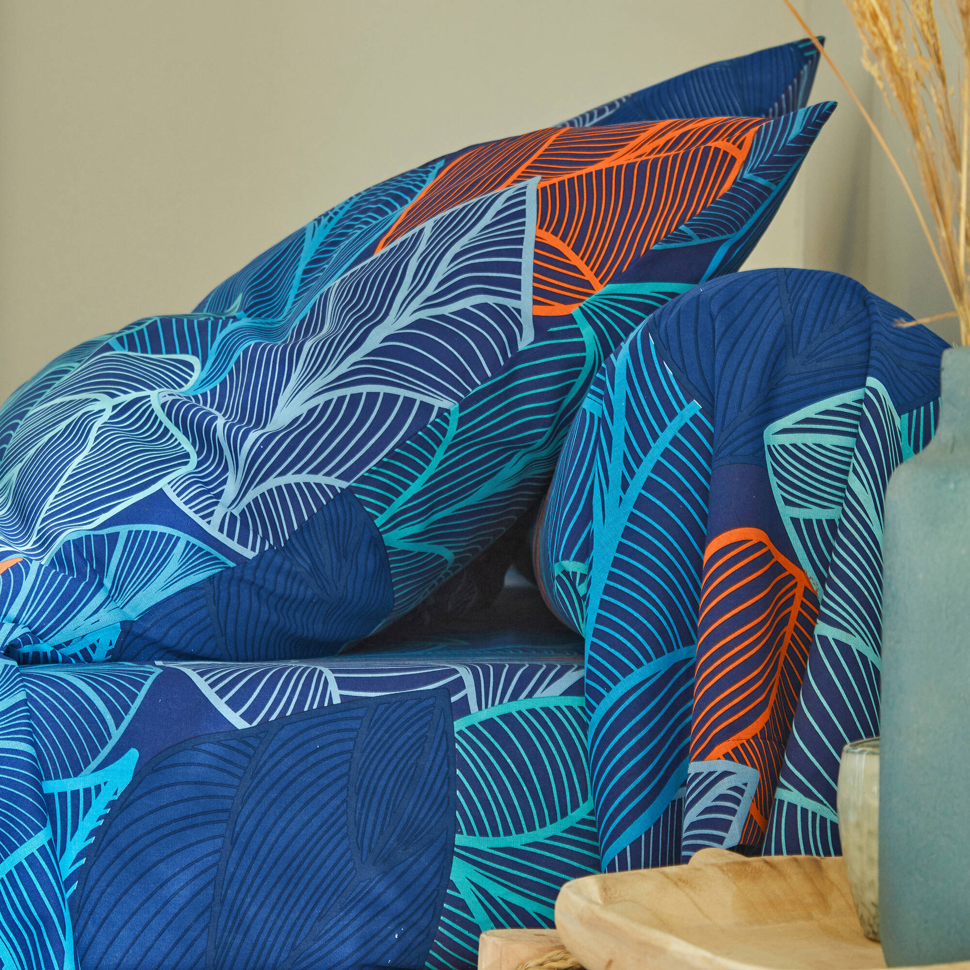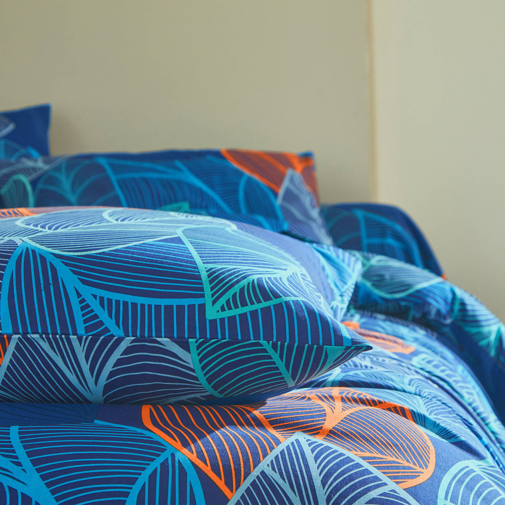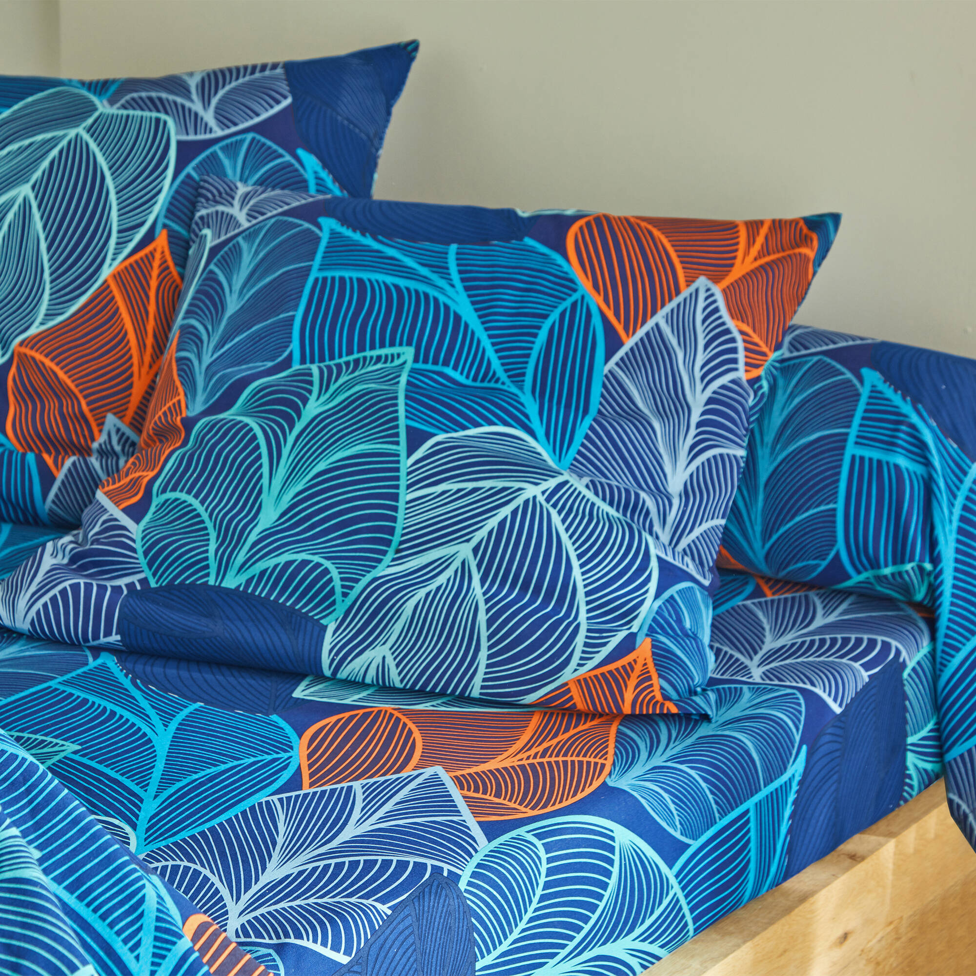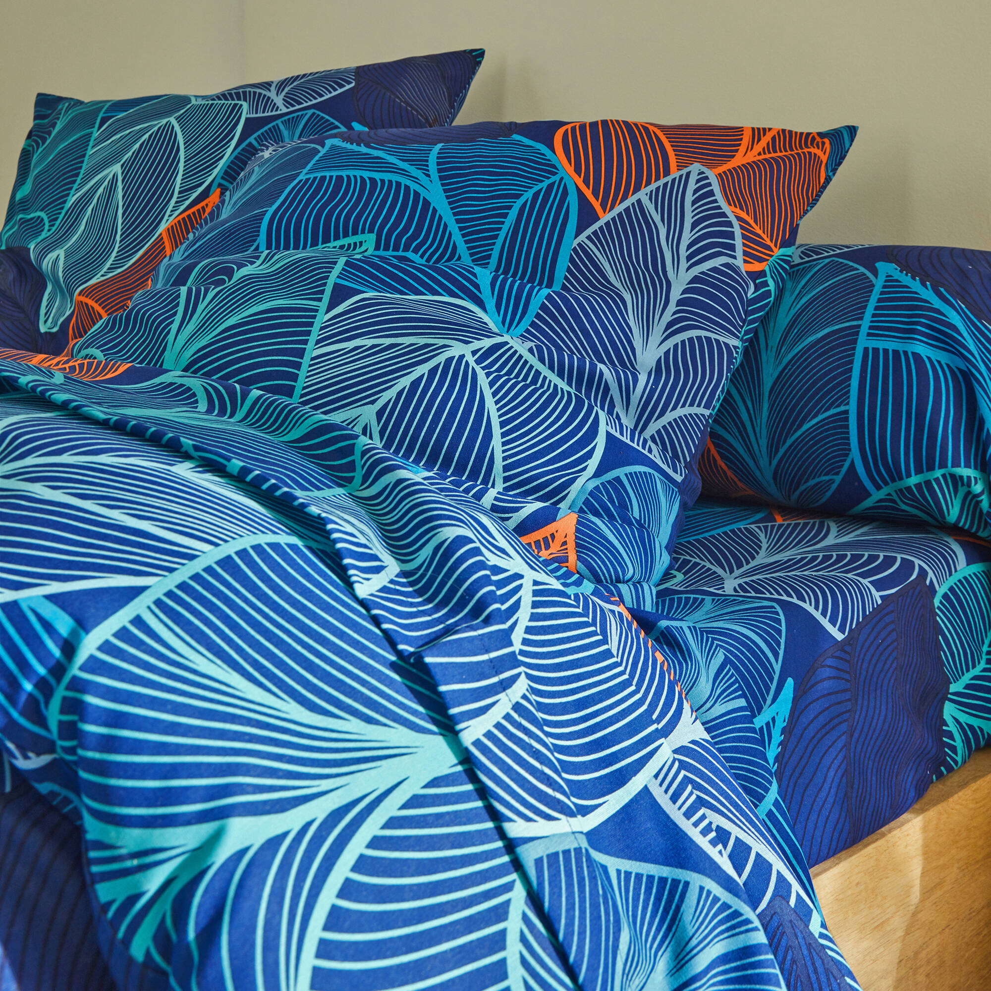 Bedlinnen Elsa in polykatoen met bladerenmotief (blauw)