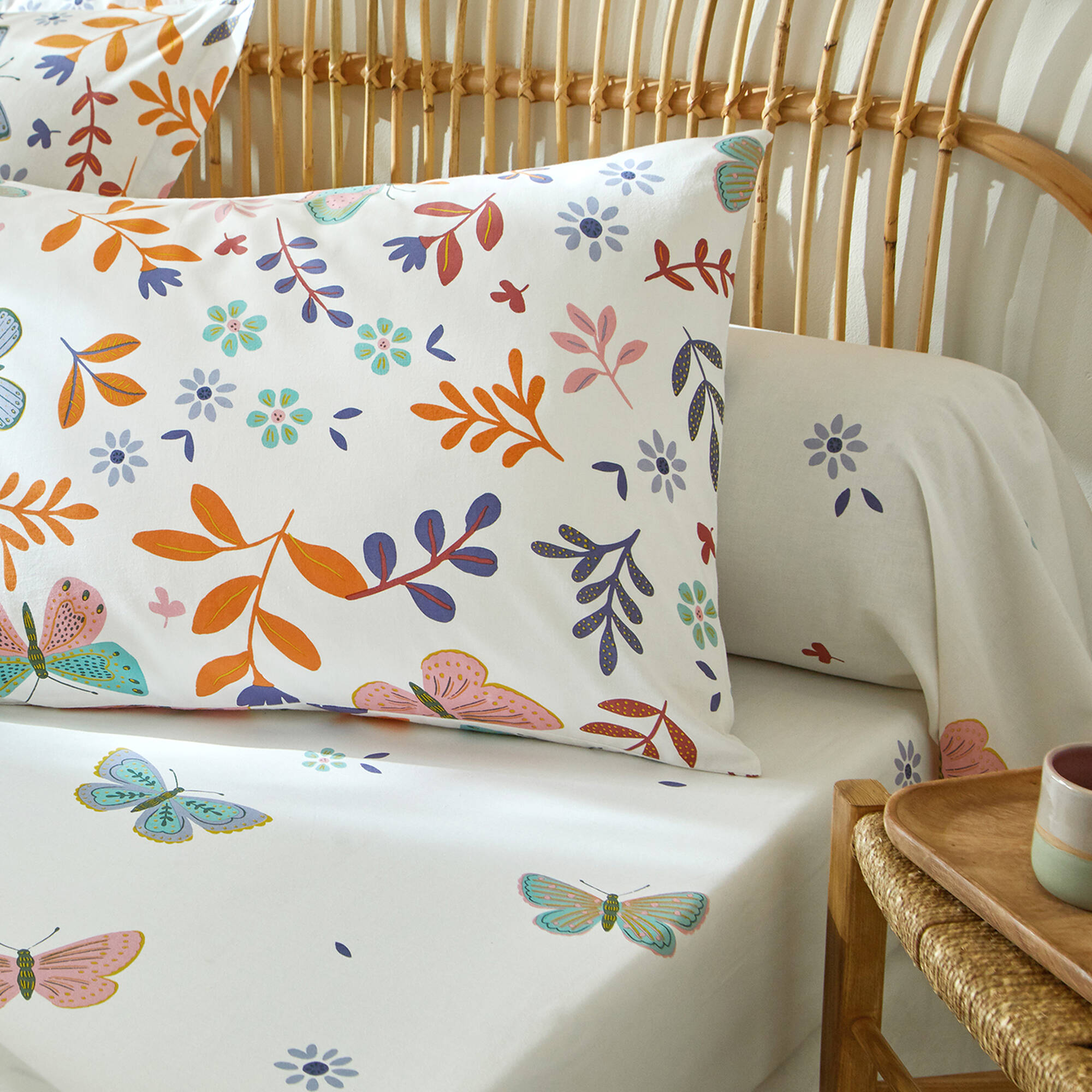 Bedlinnen Envolée in katoen met vlindermotieven (wit)