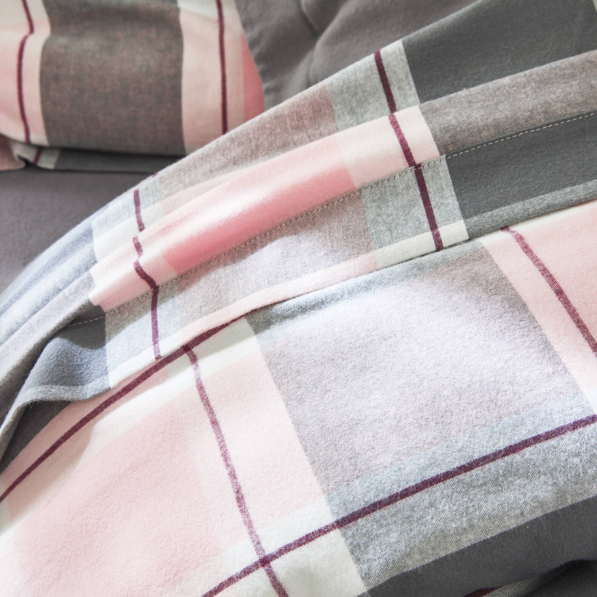 Bedlinnen in flanel Scott, ingeweven motieven (roze)