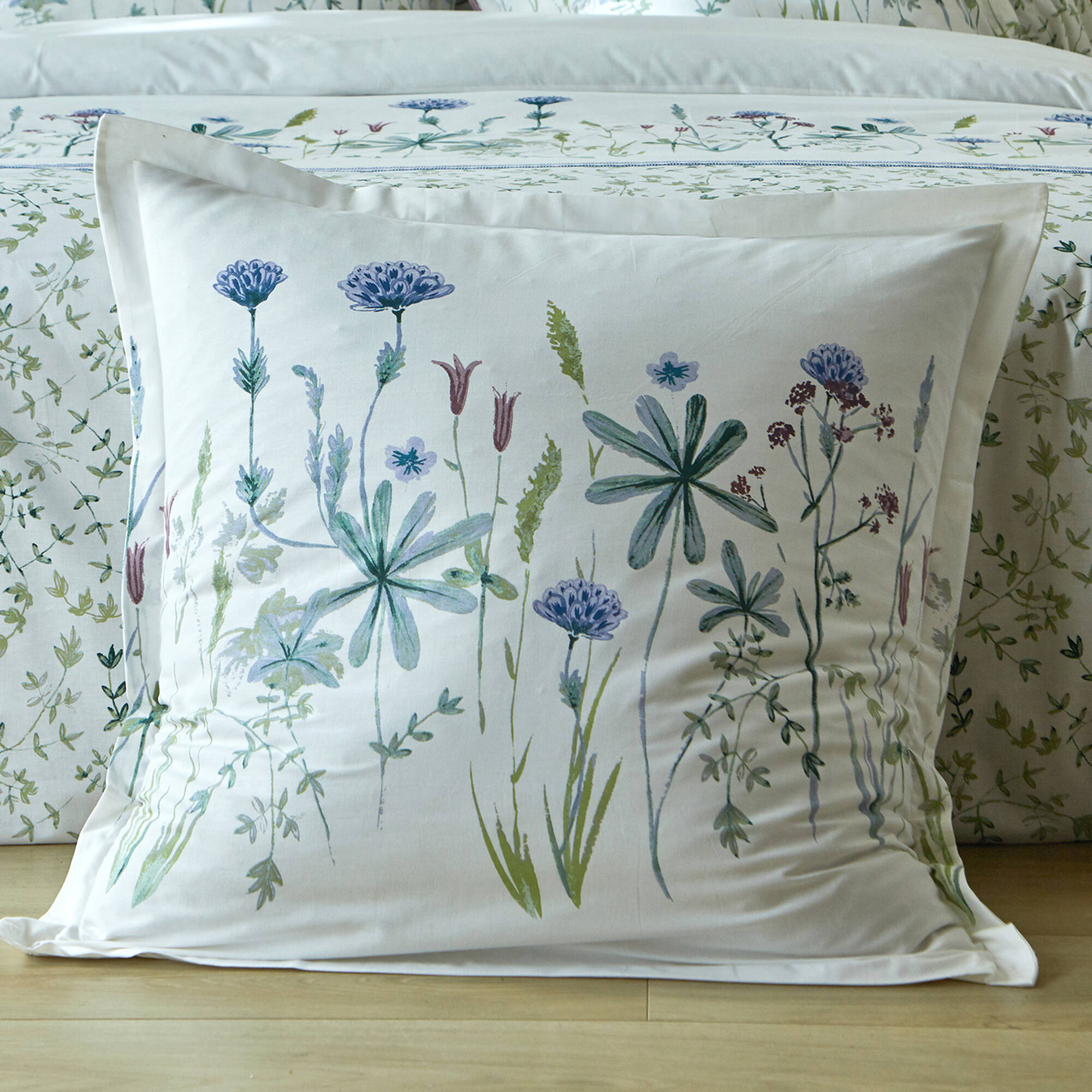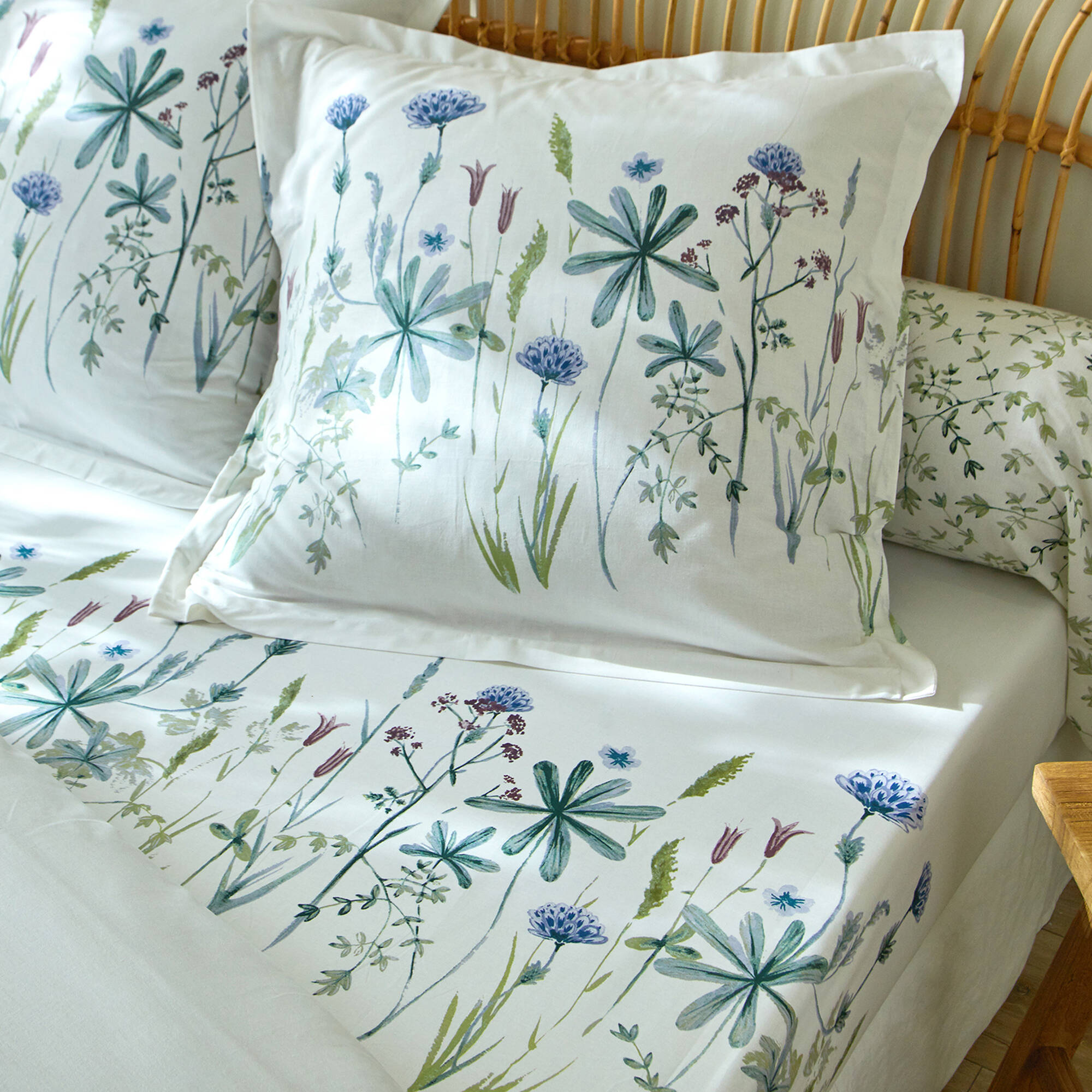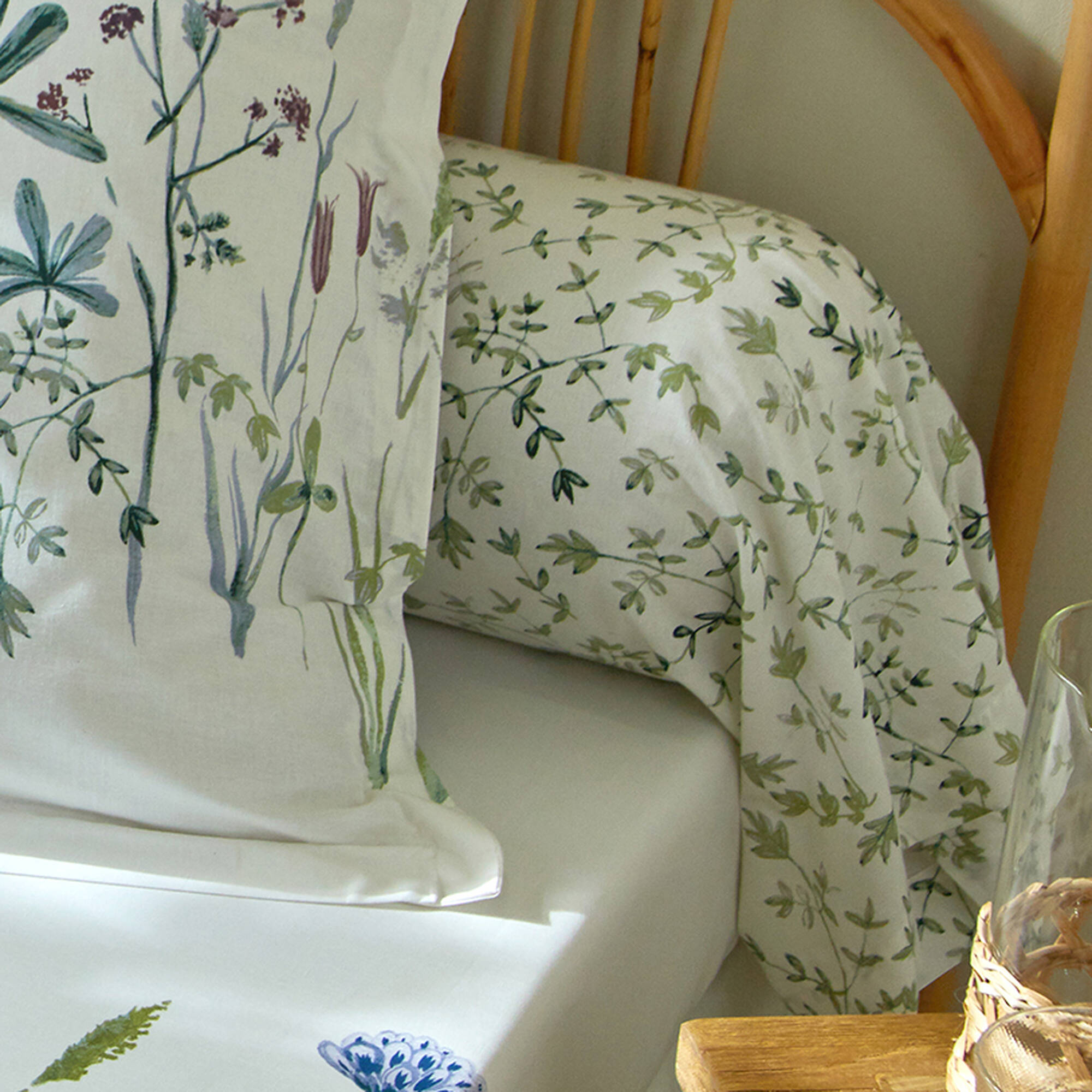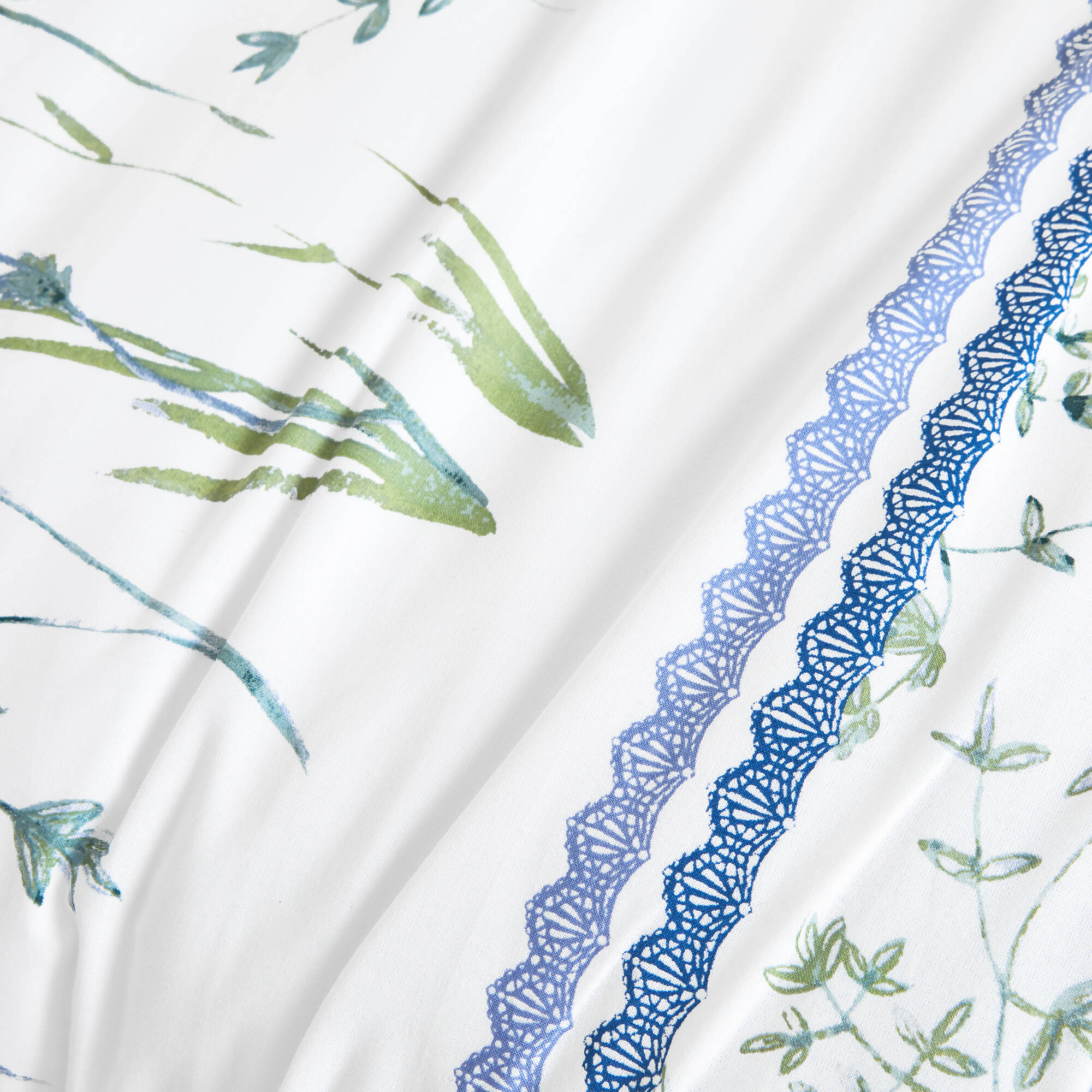 Bedlinnen Julie in katoen met plantenprint (wit / blauw)
